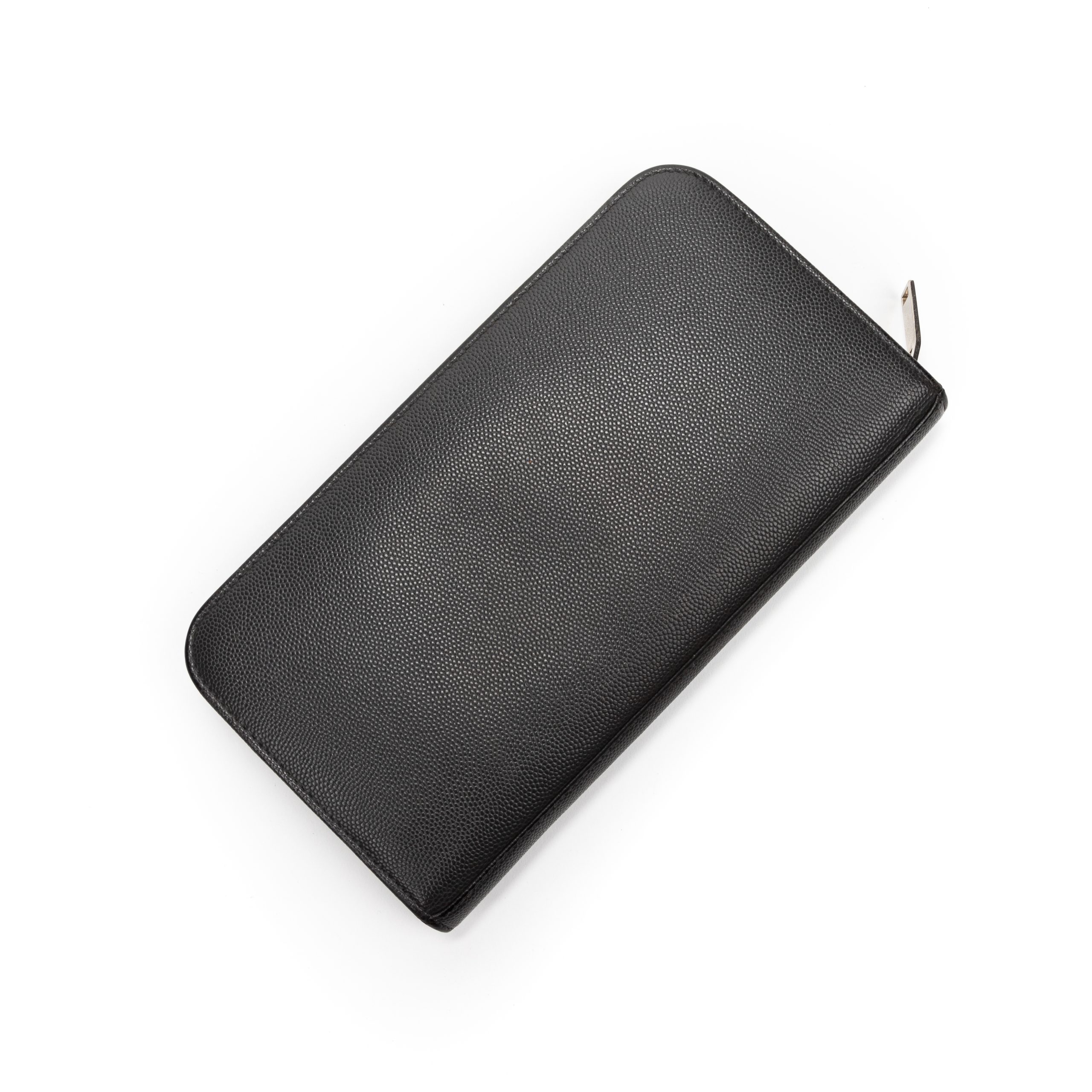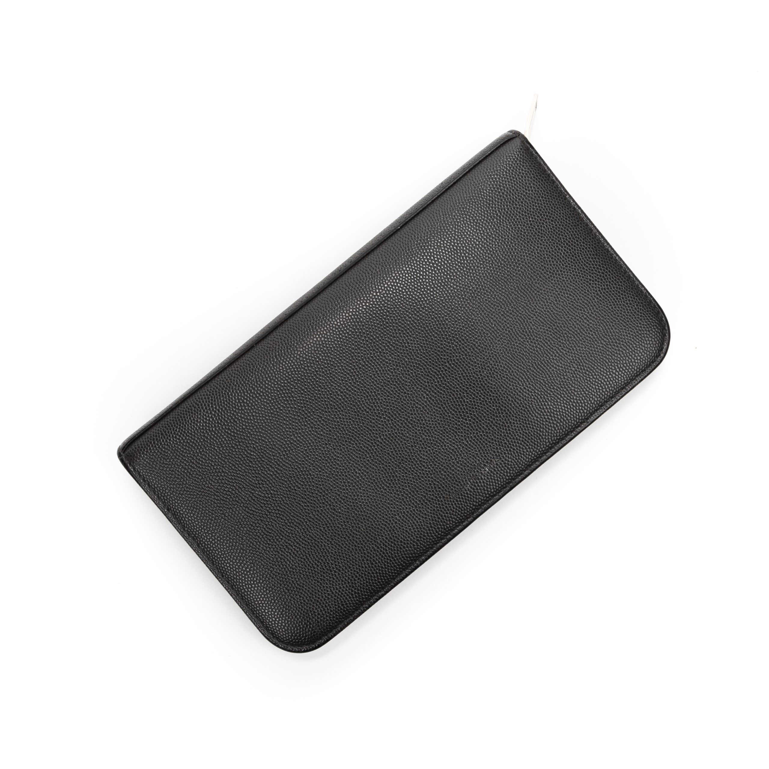 Yves Saint Laurent Portefeuille Zip Around Wallet en Gris foncé et Argent. Le produit est en Excellent état (A).