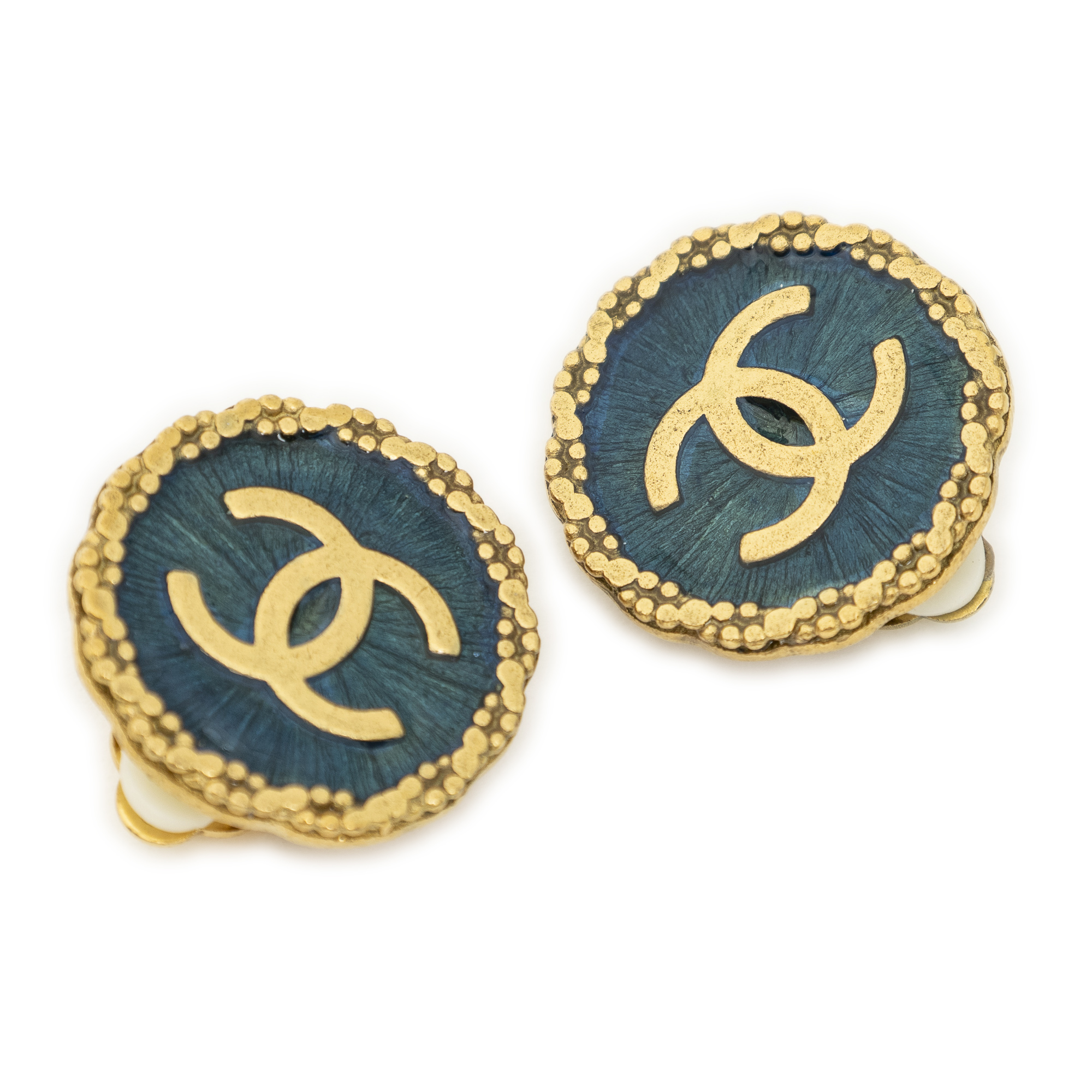 CC Medallion Clip On Earrings