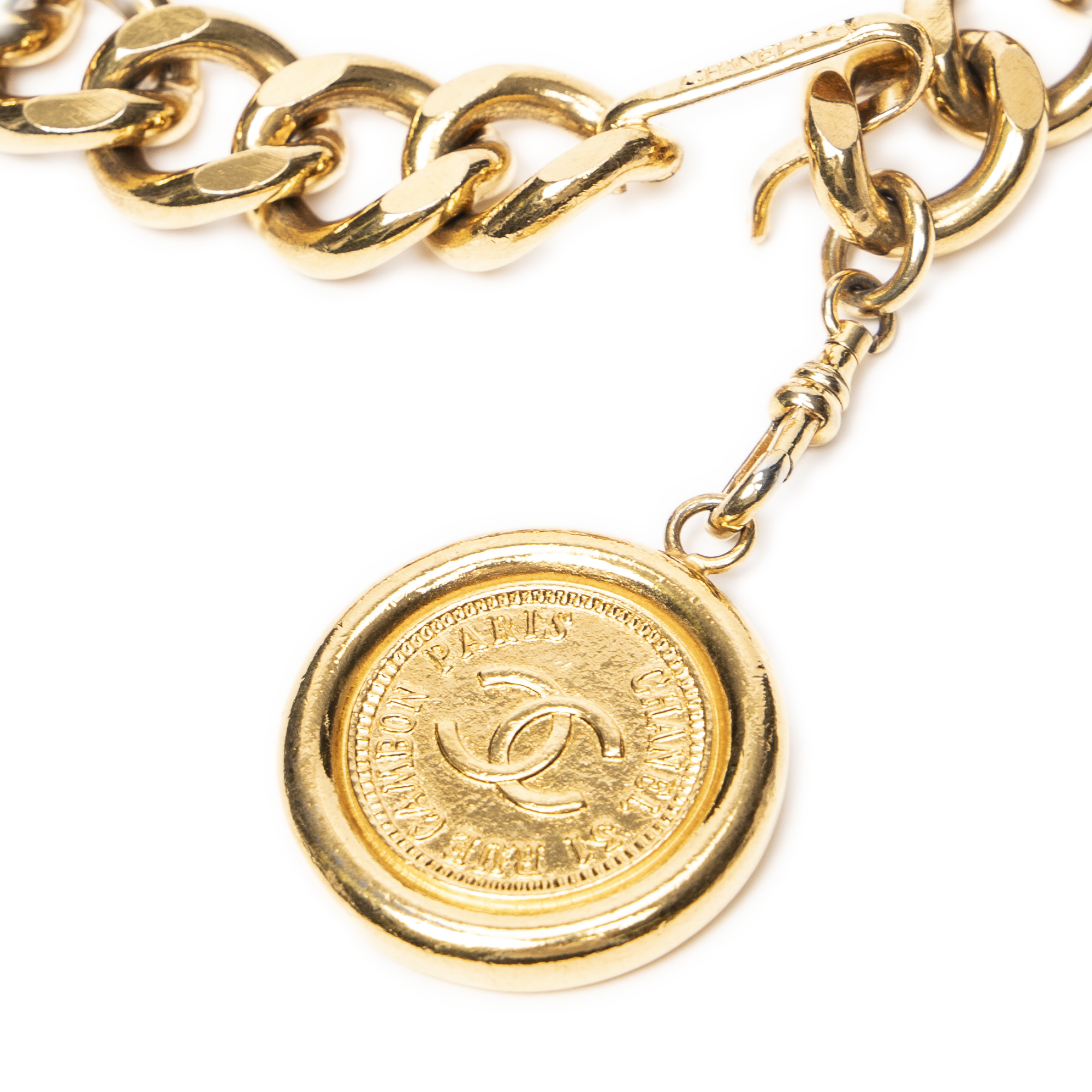 Chanel Belt CC Medallion Chain Belt in Gold Gold Plated and Gold Plated hardware. The product is in Excellent Condition (A).
