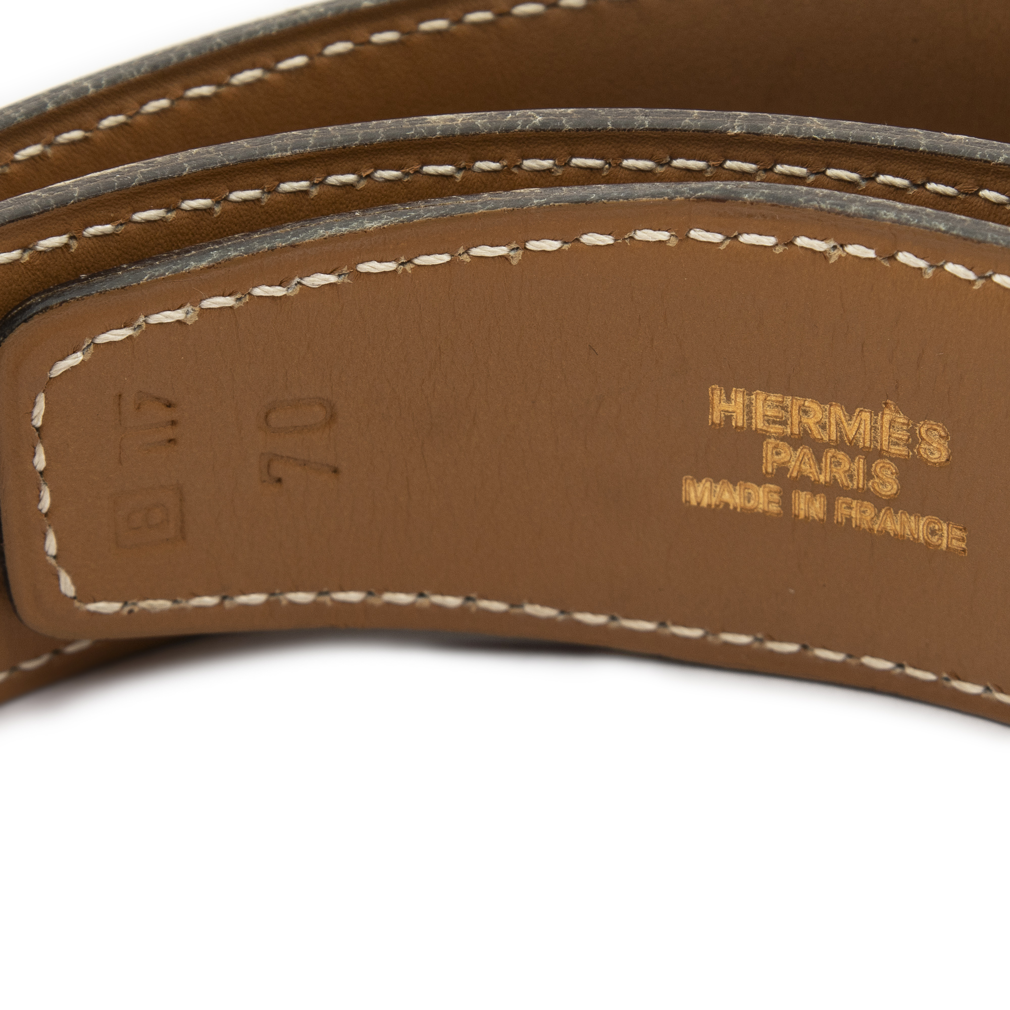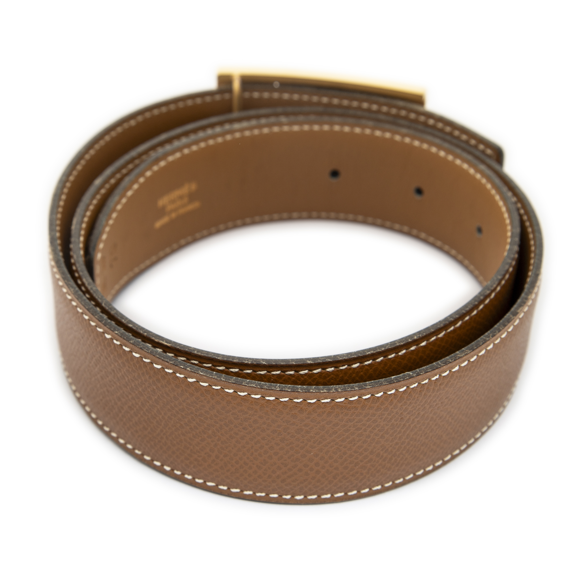 Hermès Belt Vintage Horse Buckle Belt 70 in Brown Courchevel Leather and Gold hardware. The product is in Excellent Condition (A).