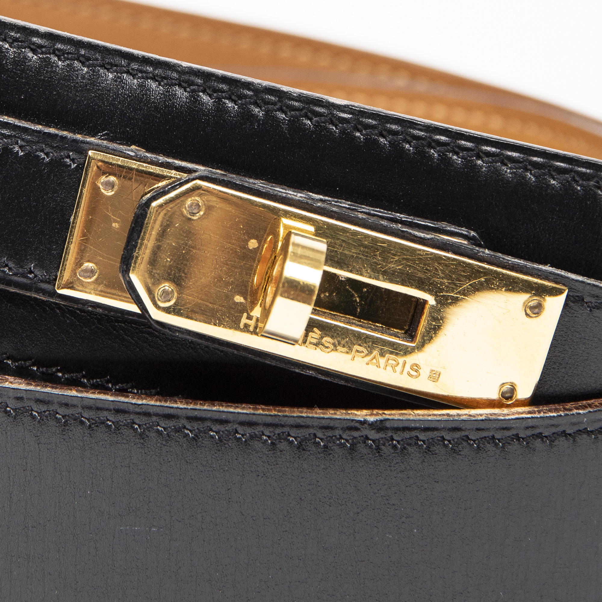 Hermès Belt Vintage Kelly Waist Belt 80 in Black Box Leather and Gold Plated hardware. The product is in Excellent Condition (A).