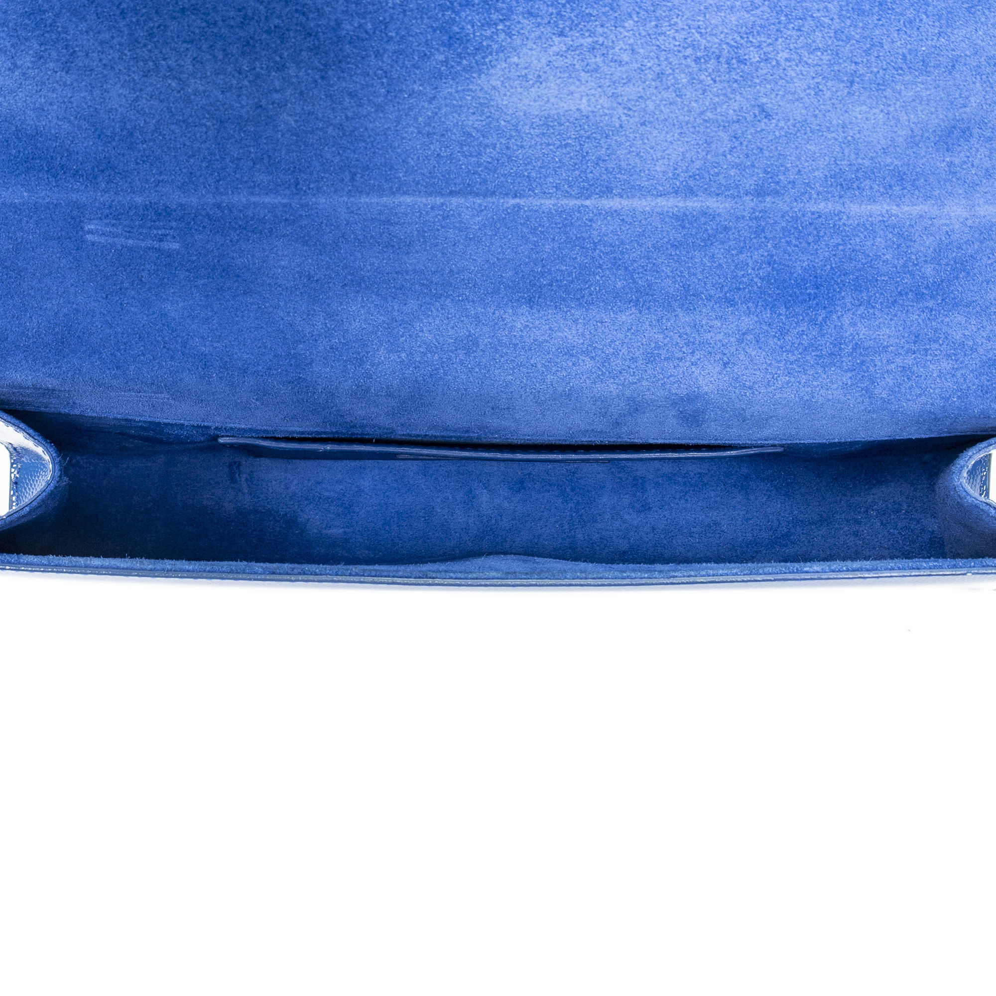 Yves Saint Laurent Clutch Cassandre Clutch in Royal Blue Grain de Poudre Patent Leather and Gold hardware. The product is in Excellent Condition (A).