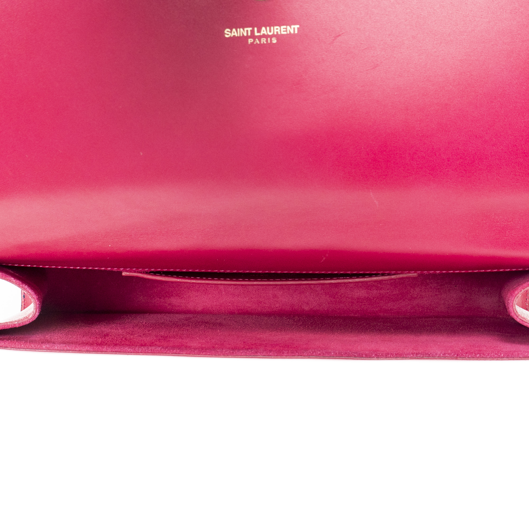 Yves Saint Laurent Clutch Cassandre Clutch in Fuchsia Pink Smooth Calfskin Leather and Gold hardware. The product is in Very Good Condition (AB).
