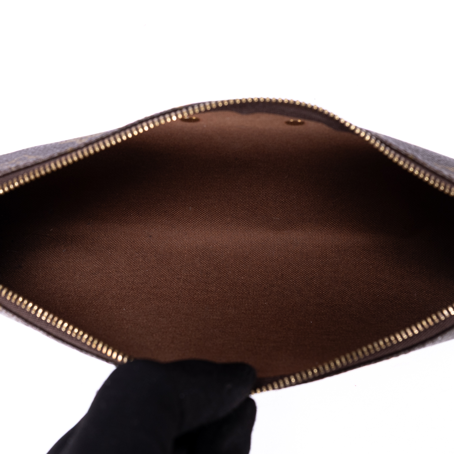 Louis Vuitton Clutch Eva Clutch in Brown Monogram Canvas and Golden Brass hardware. The product is in Very Good Condition (AB).