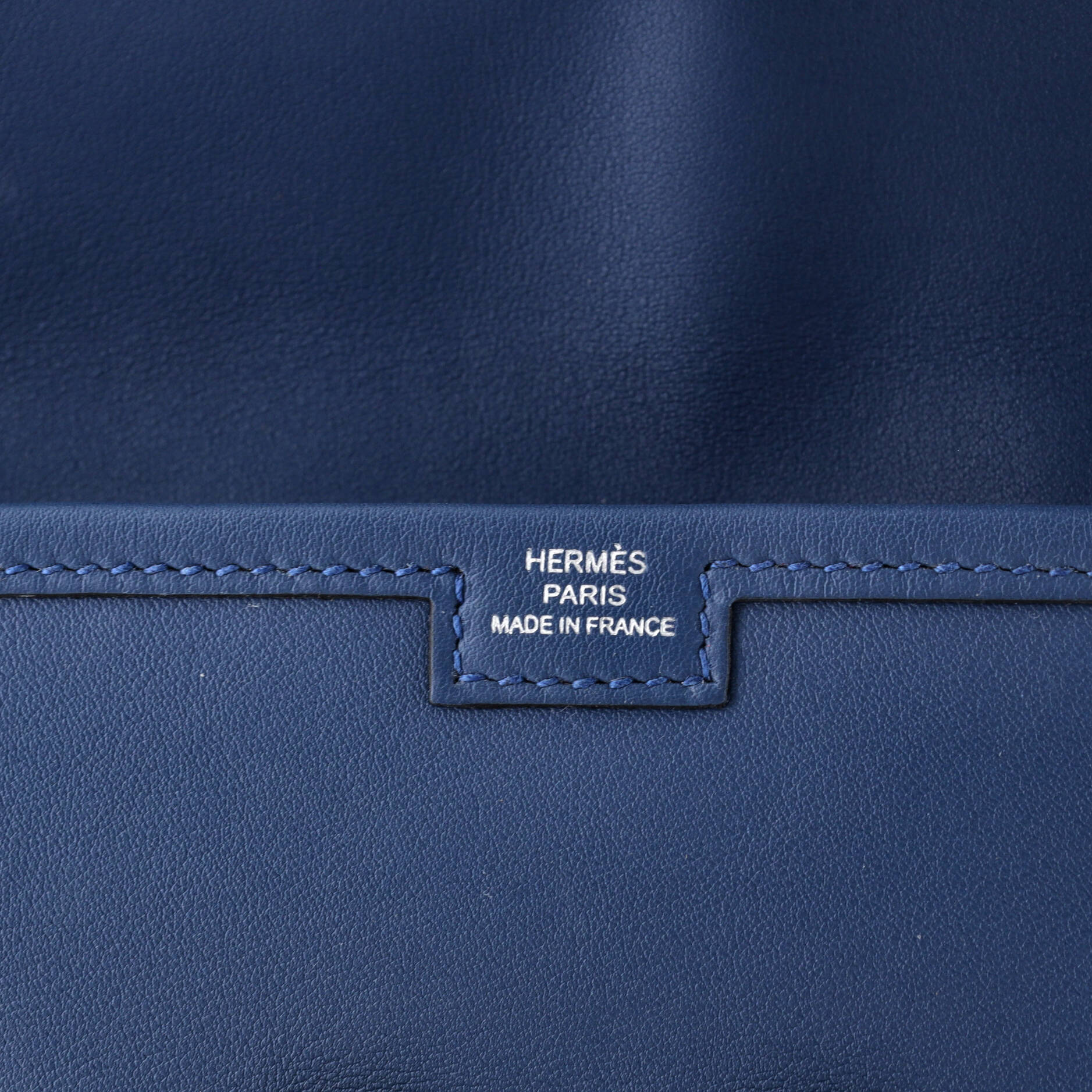 Hermès Clutch Jige Elan Clutch 29 in Blue Jean Swift Leather and None hardware. The product is in Perfect Condition (AA).