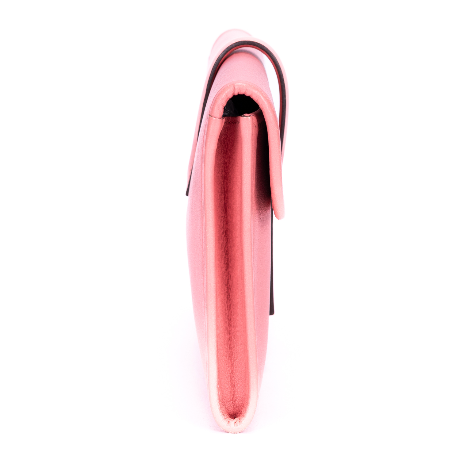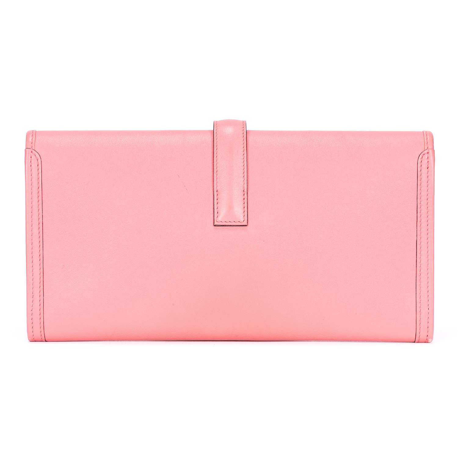 Hermes Clutch Jige Elan in Rose Azaléé Swift Leather and None hardware. The product is in Perfect Condition (AA).