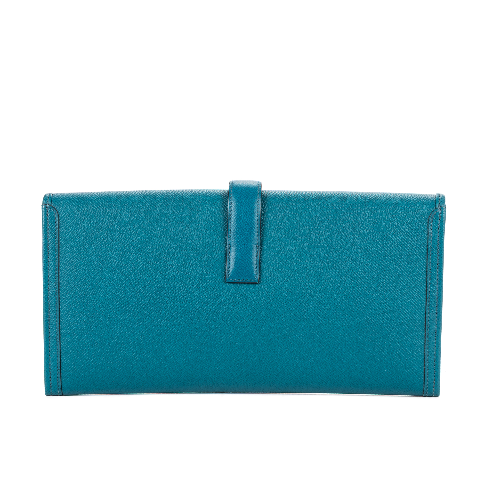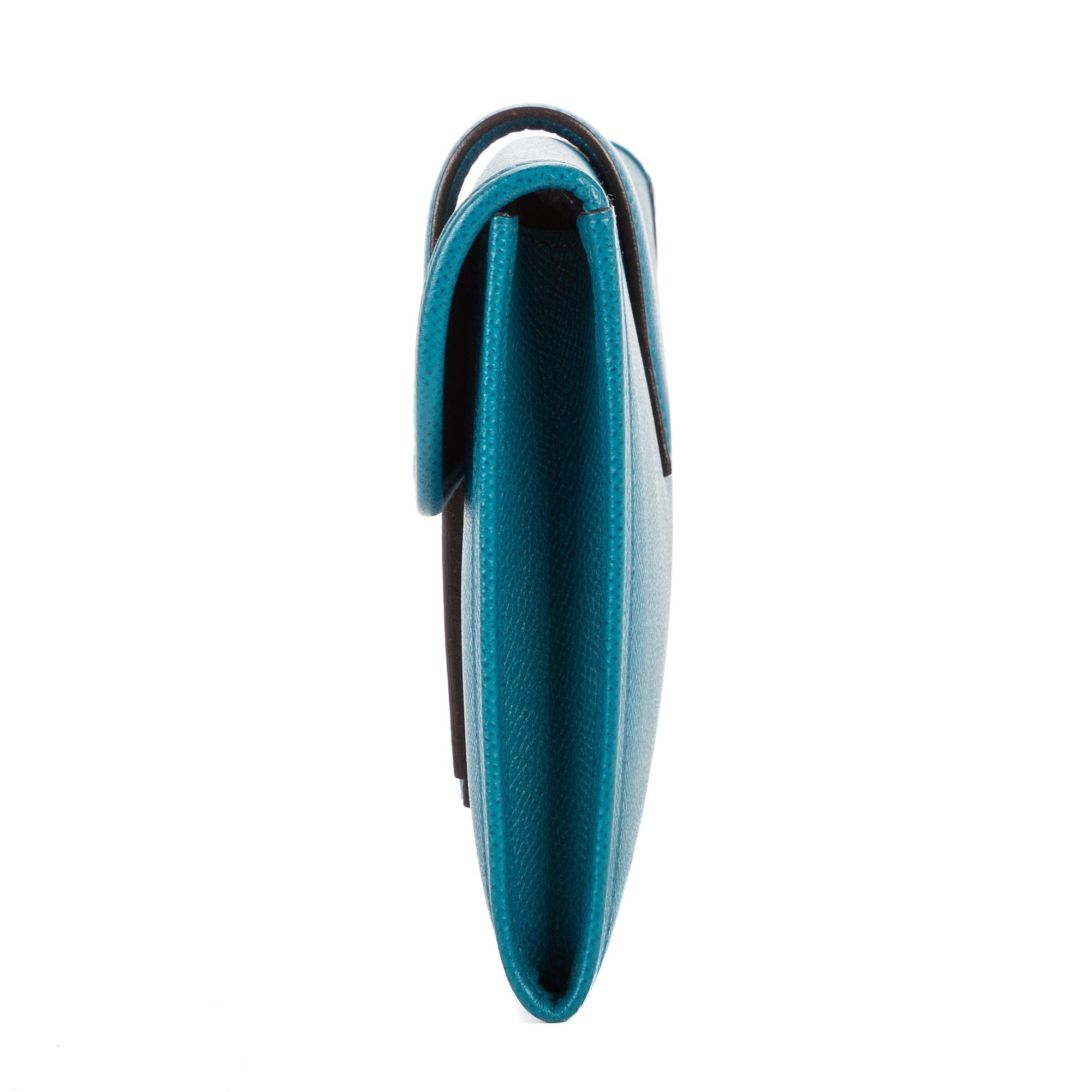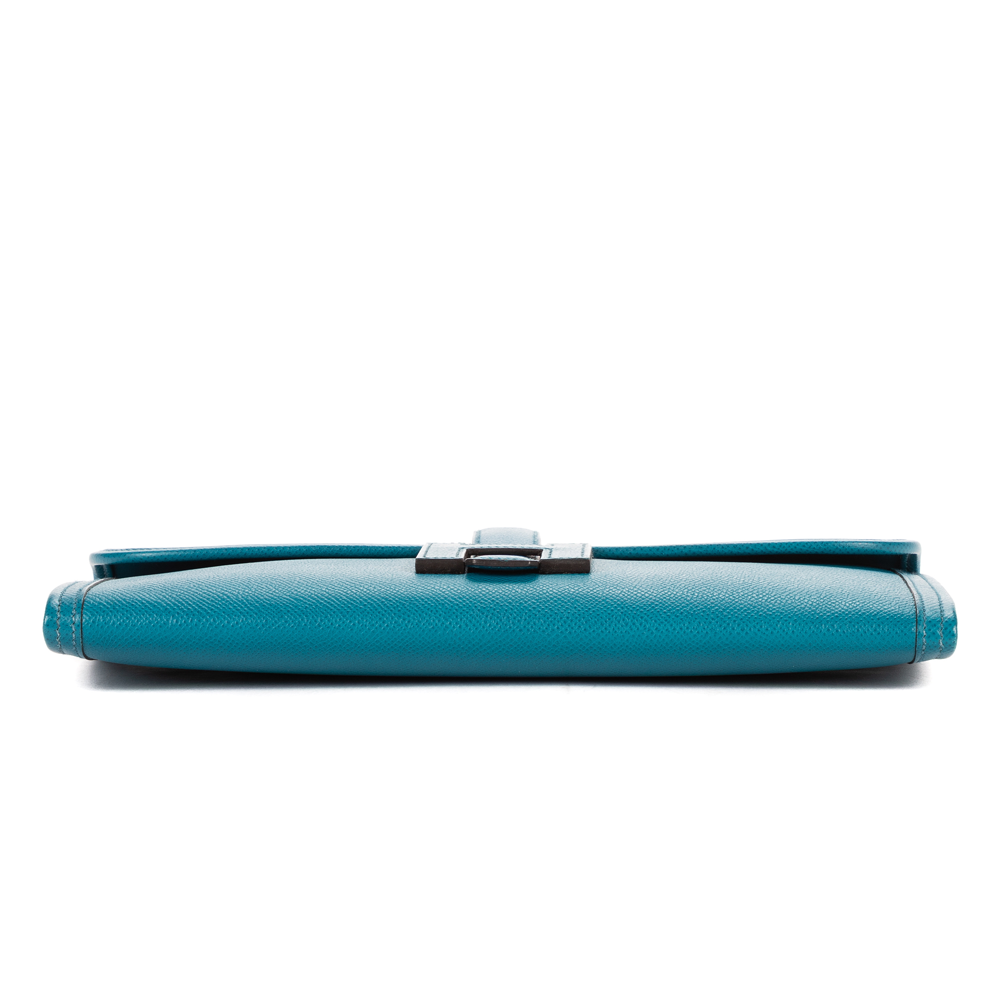Hermès Clutch Jige Pouch in Blue Izmir Epsom Leather and None hardware. The product is in Perfect Condition (AA).