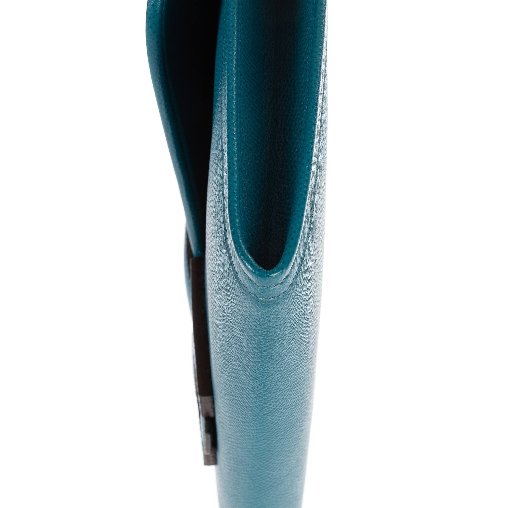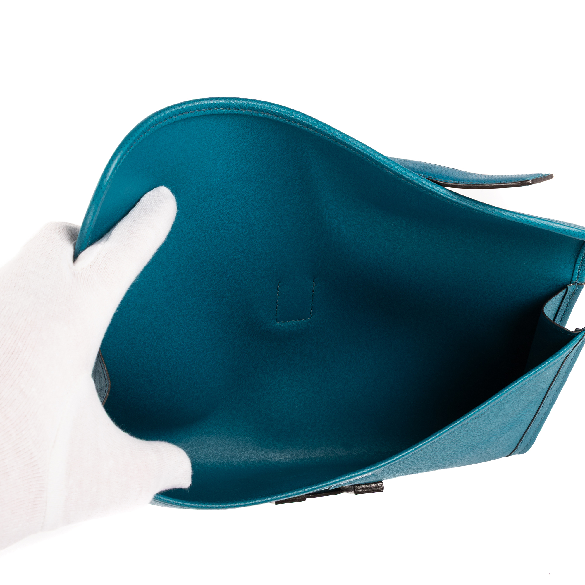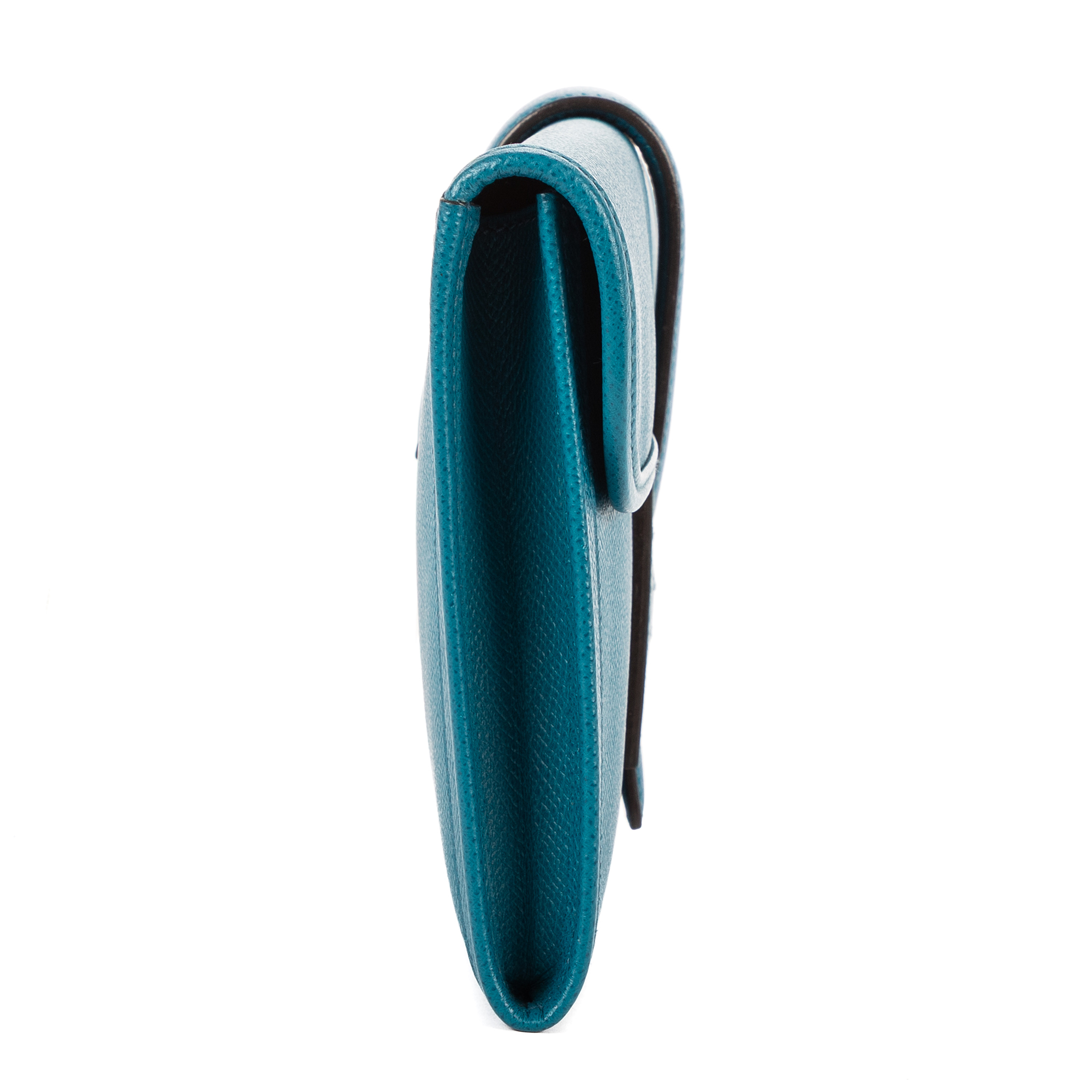Hermès Clutch Jige Pouch in Blue Izmir Epsom Leather and None hardware. The product is in Perfect Condition (AA).