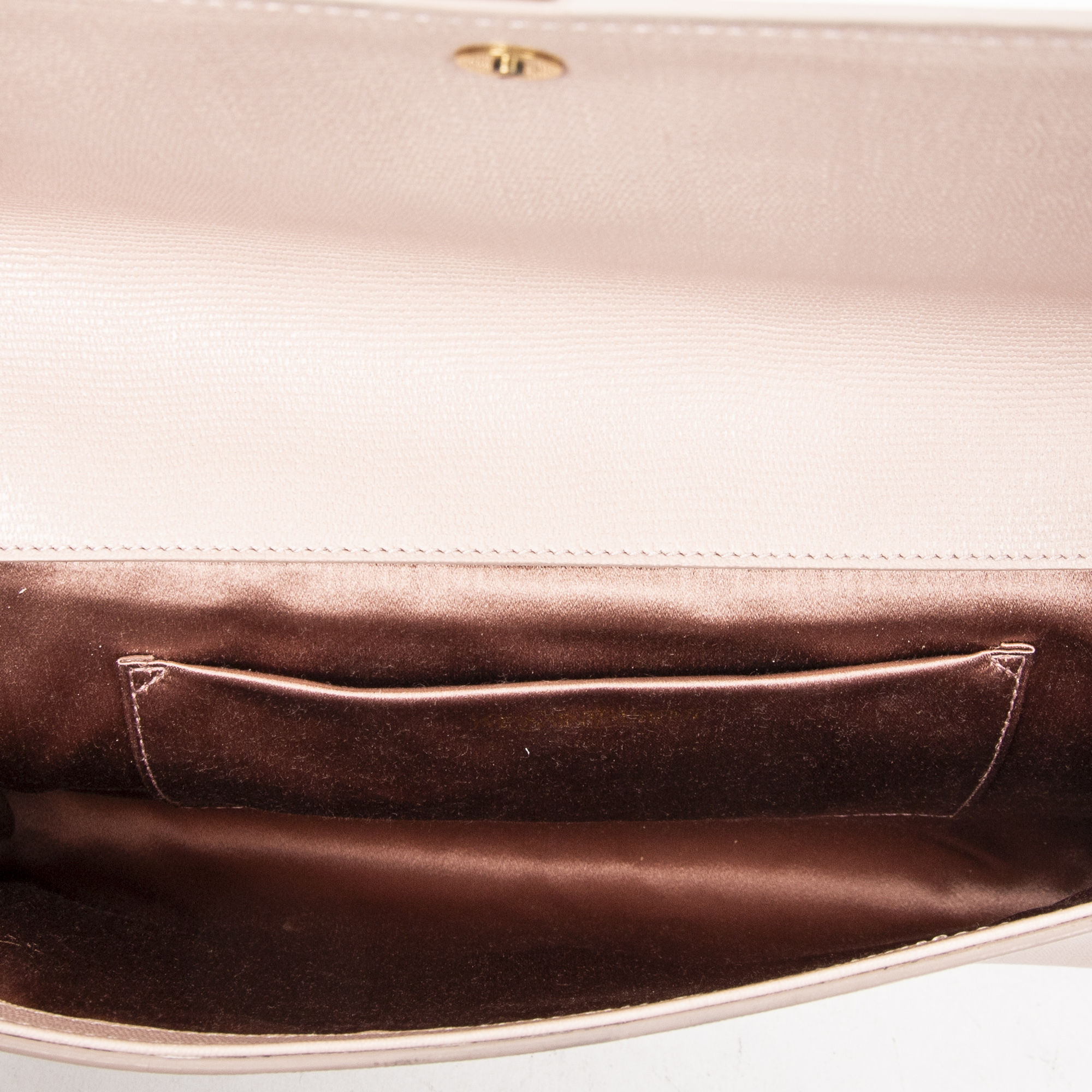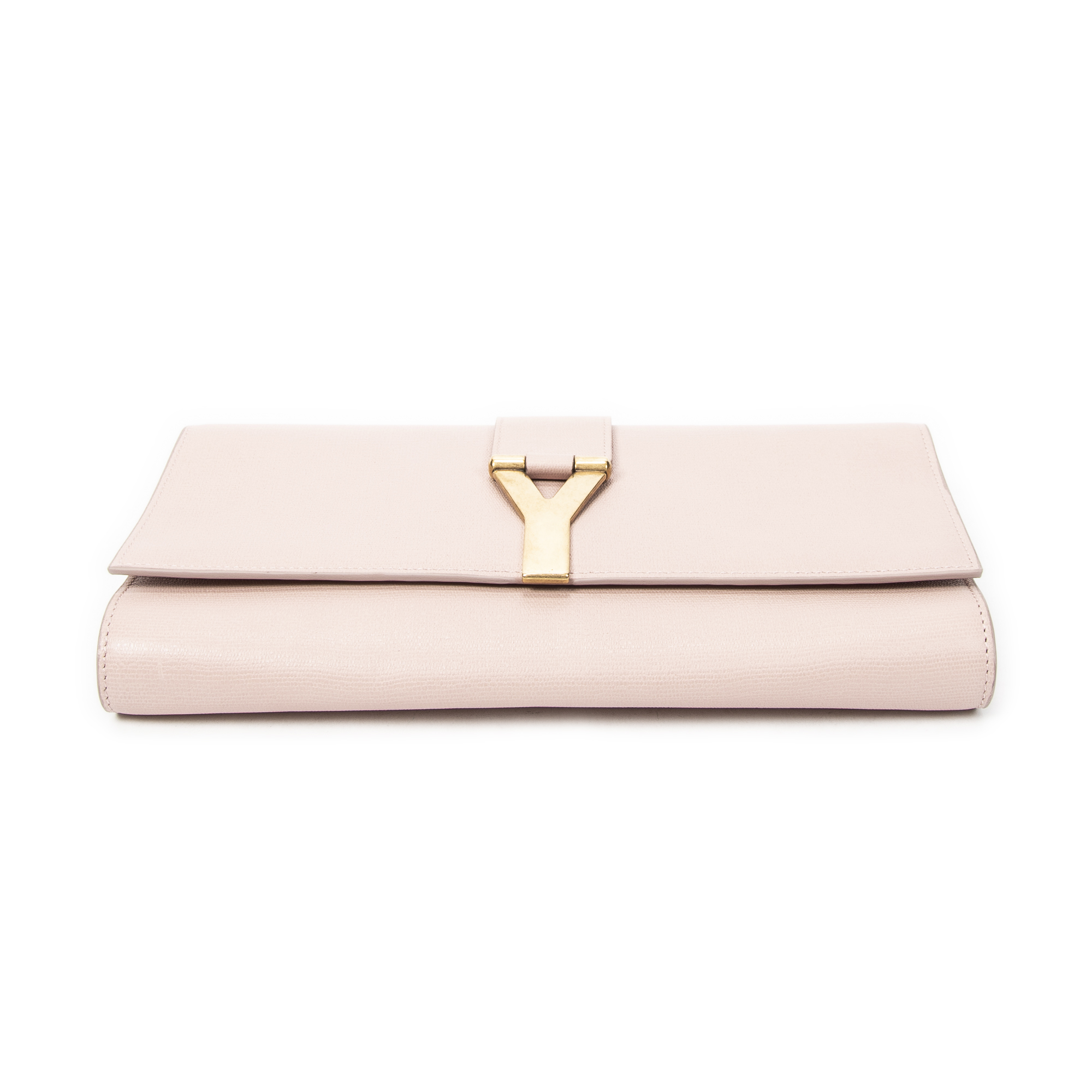 Yves Saint Laurent Clutch Ligne Y Clutch in Pink Textured Leather and Gold hardware. The product is in Excellent Condition (A).