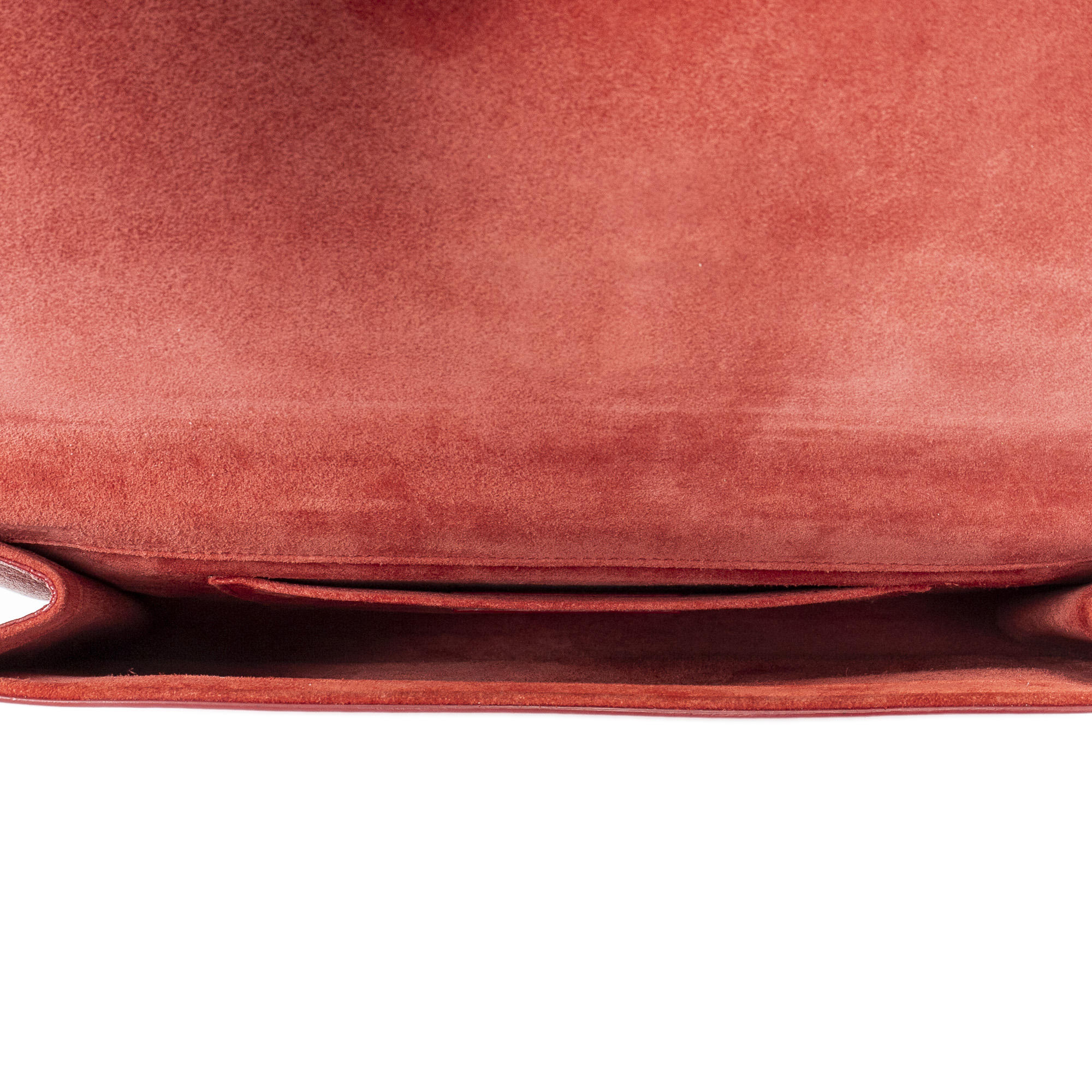Yves Saint Laurent Clutch Ligne Y Clutch in Red Calfskin Leather and Gold hardware. The product is in Very Good Condition (AB).