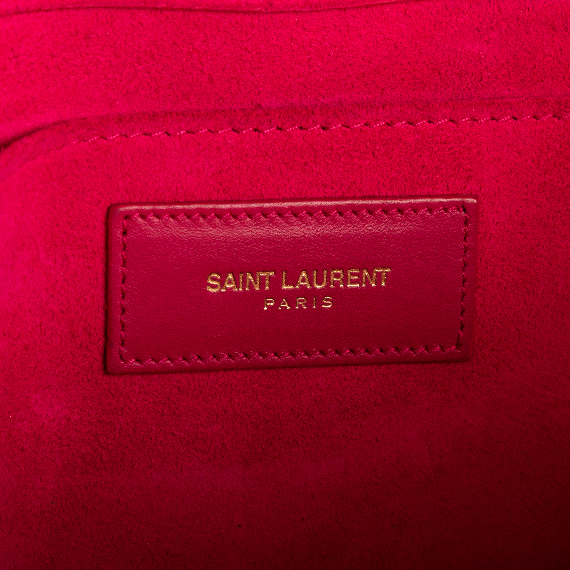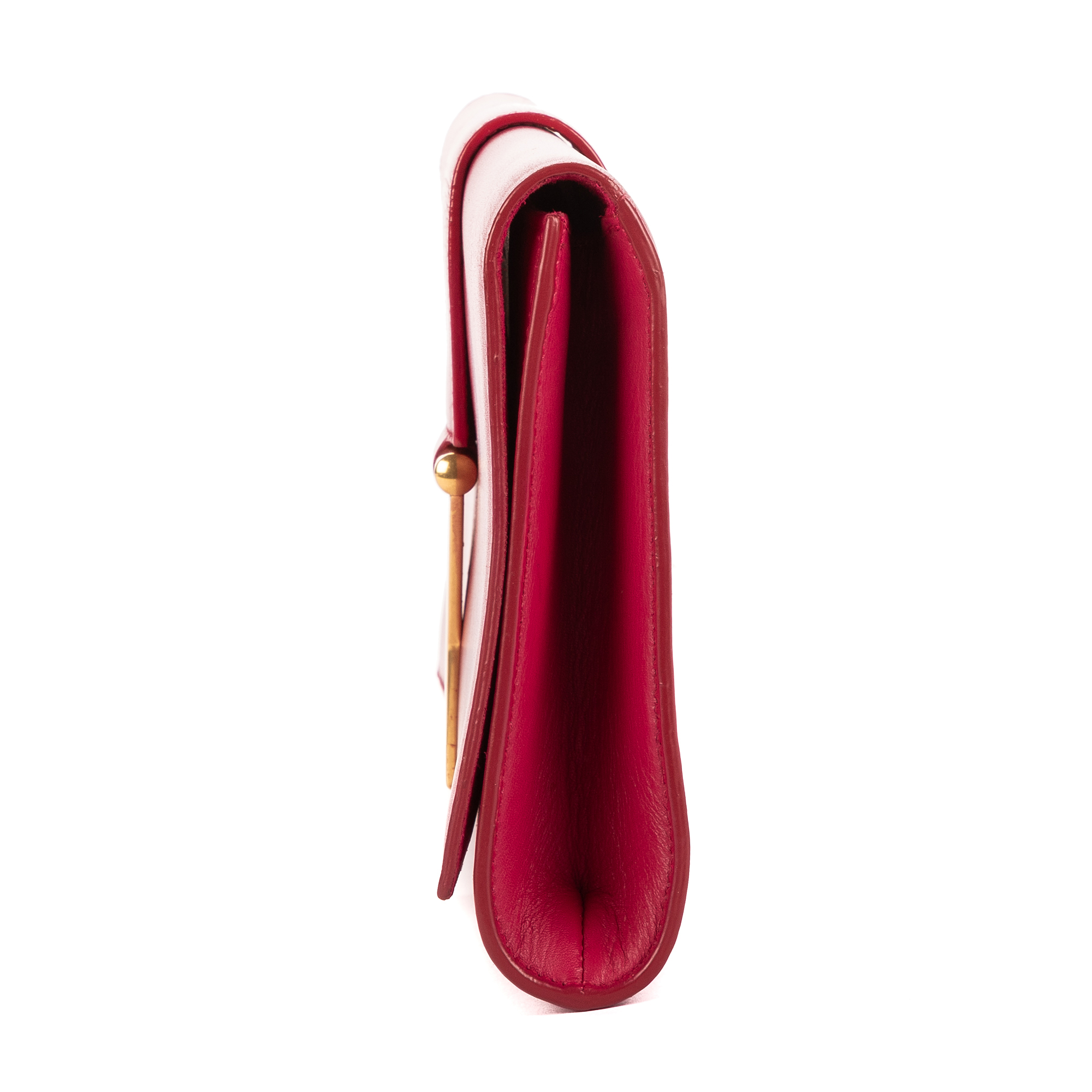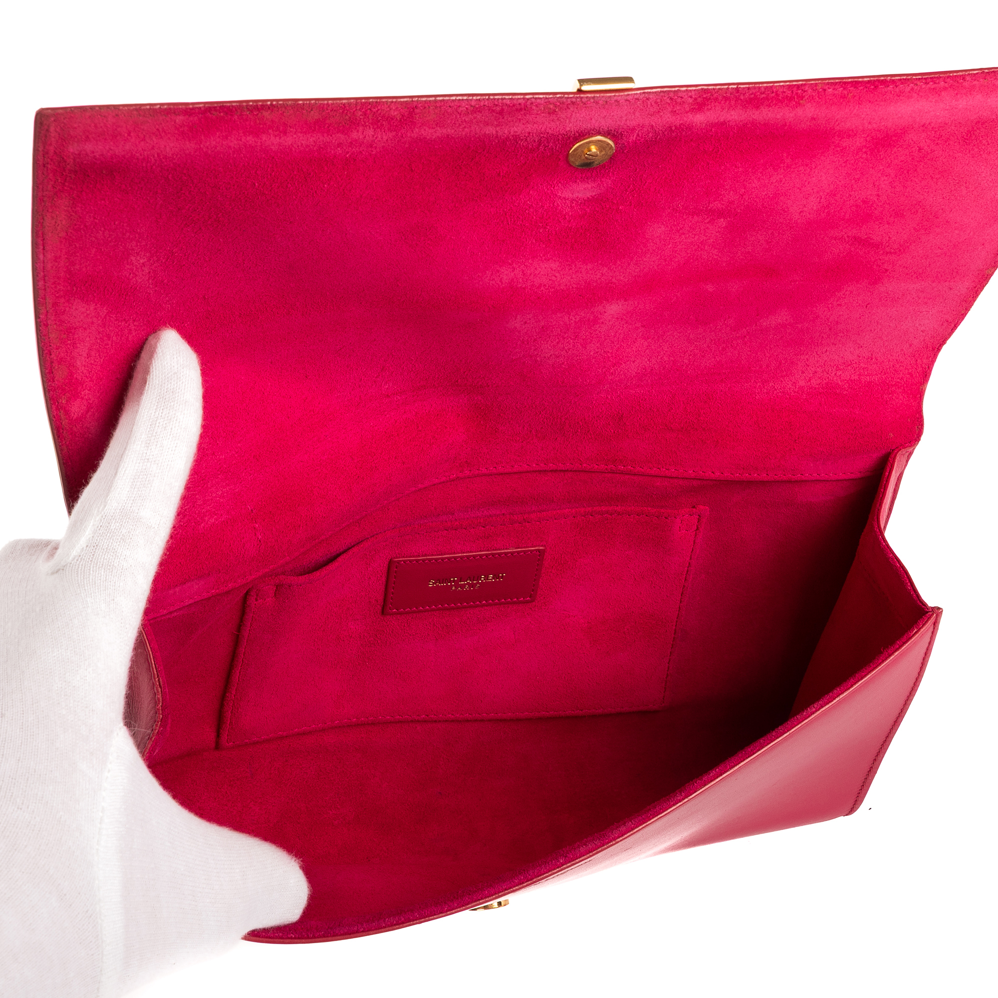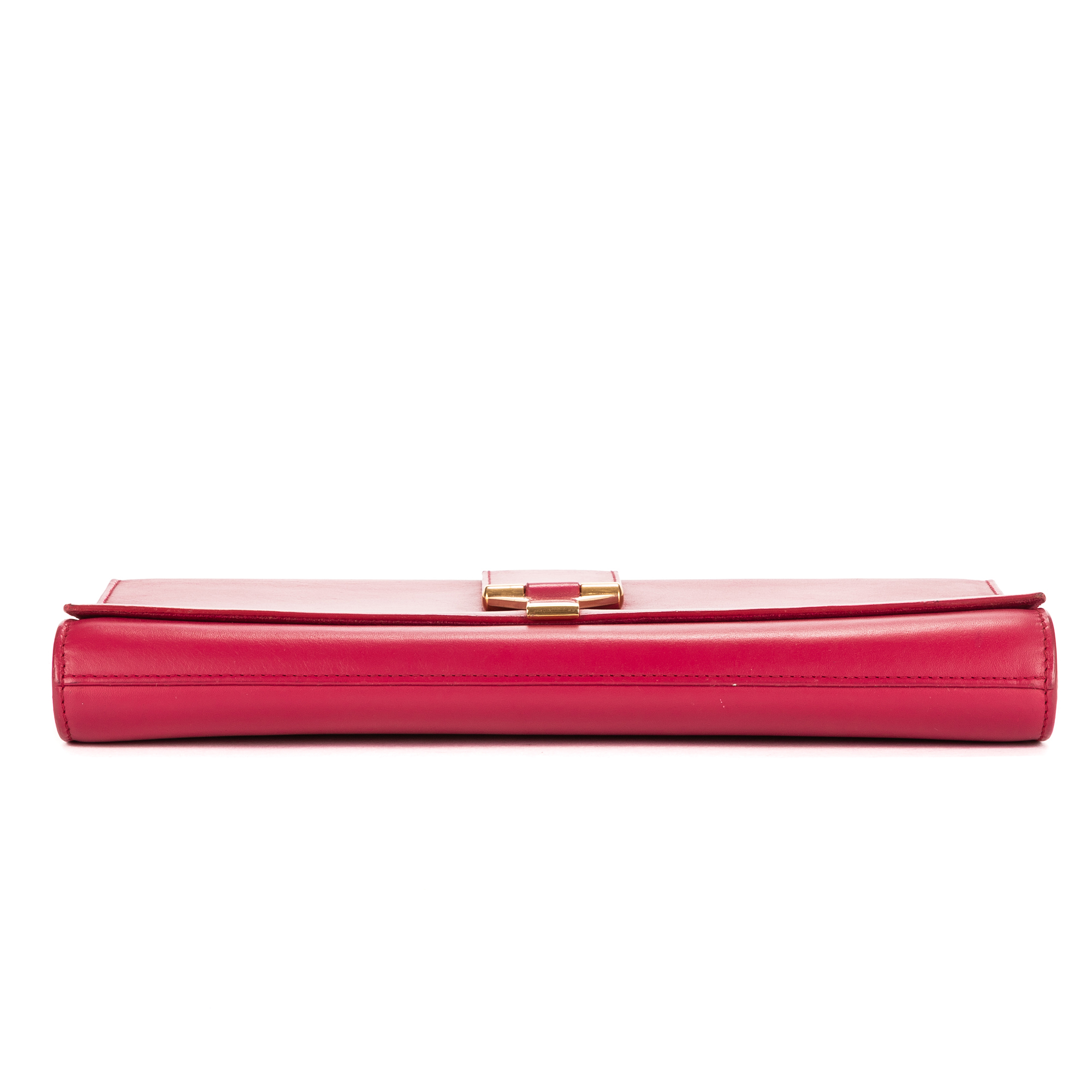 Yves Saint Laurent Clutch Ligne-Y Pochette Small in Pink Smooth Leather and Gold hardware. The product is in Perfect Condition (AA).