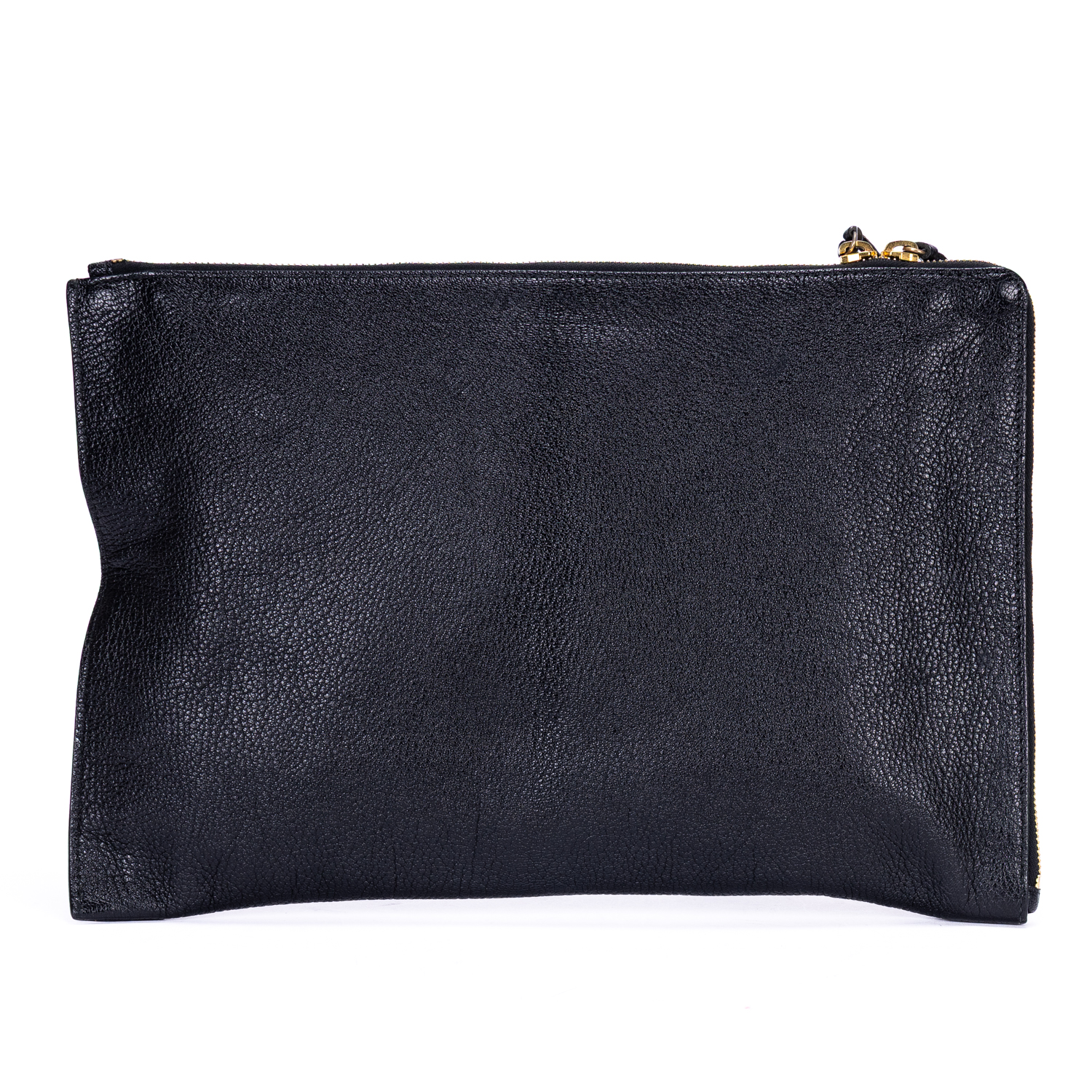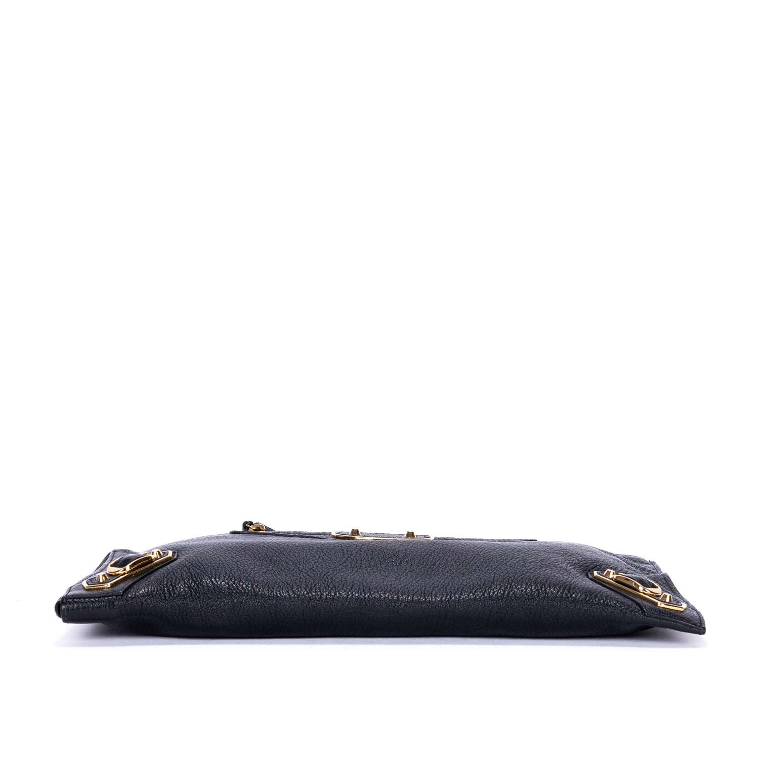 Balenciaga Clutch Metallic Edge Flat Clutch in Black Calfskin Grained Leather and Gold hardware. The product is in Excellent Condition (A).