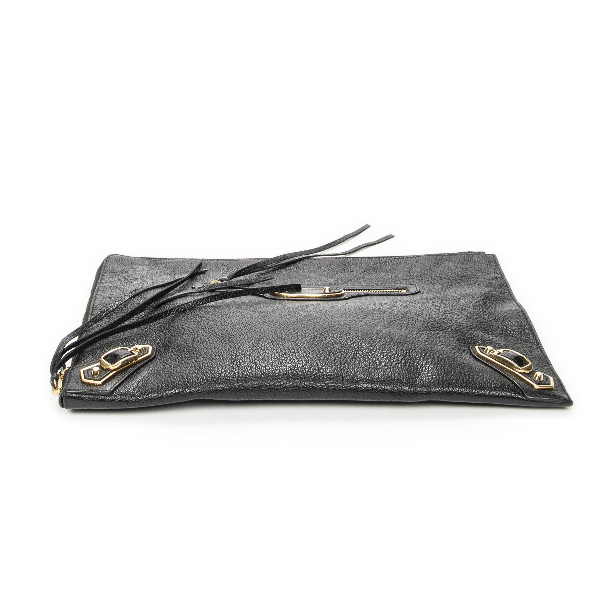 Balenciaga Clutch Metallic Edge Flat Clutch in Black Grained Calfskin Leather and Gold hardware. The product is in Excellent Condition (A).