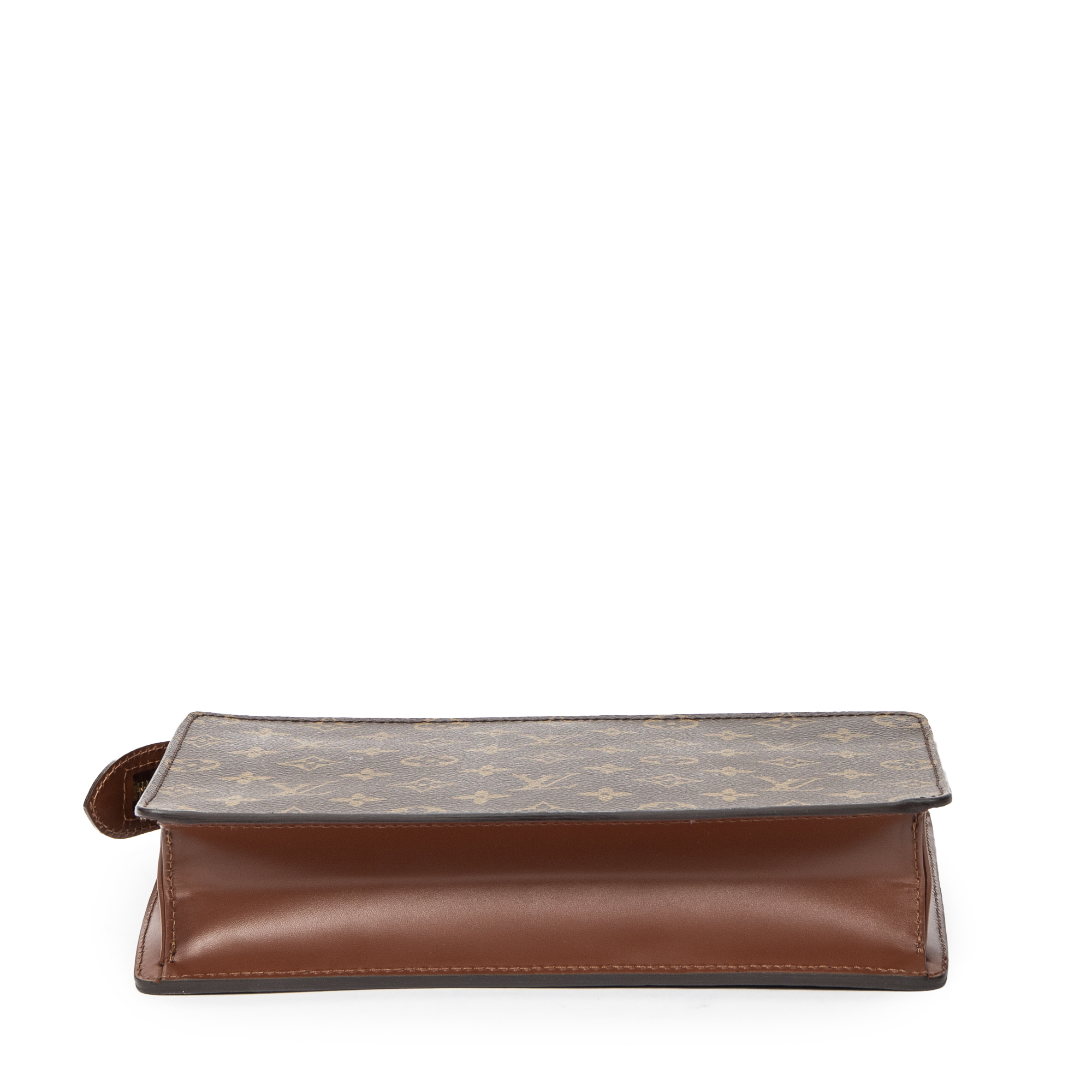 Louis Vuitton Clutch Pochette Homme in Brown Monogram Canvas and Golden Brass hardware. The product is in Excellent Condition (A).