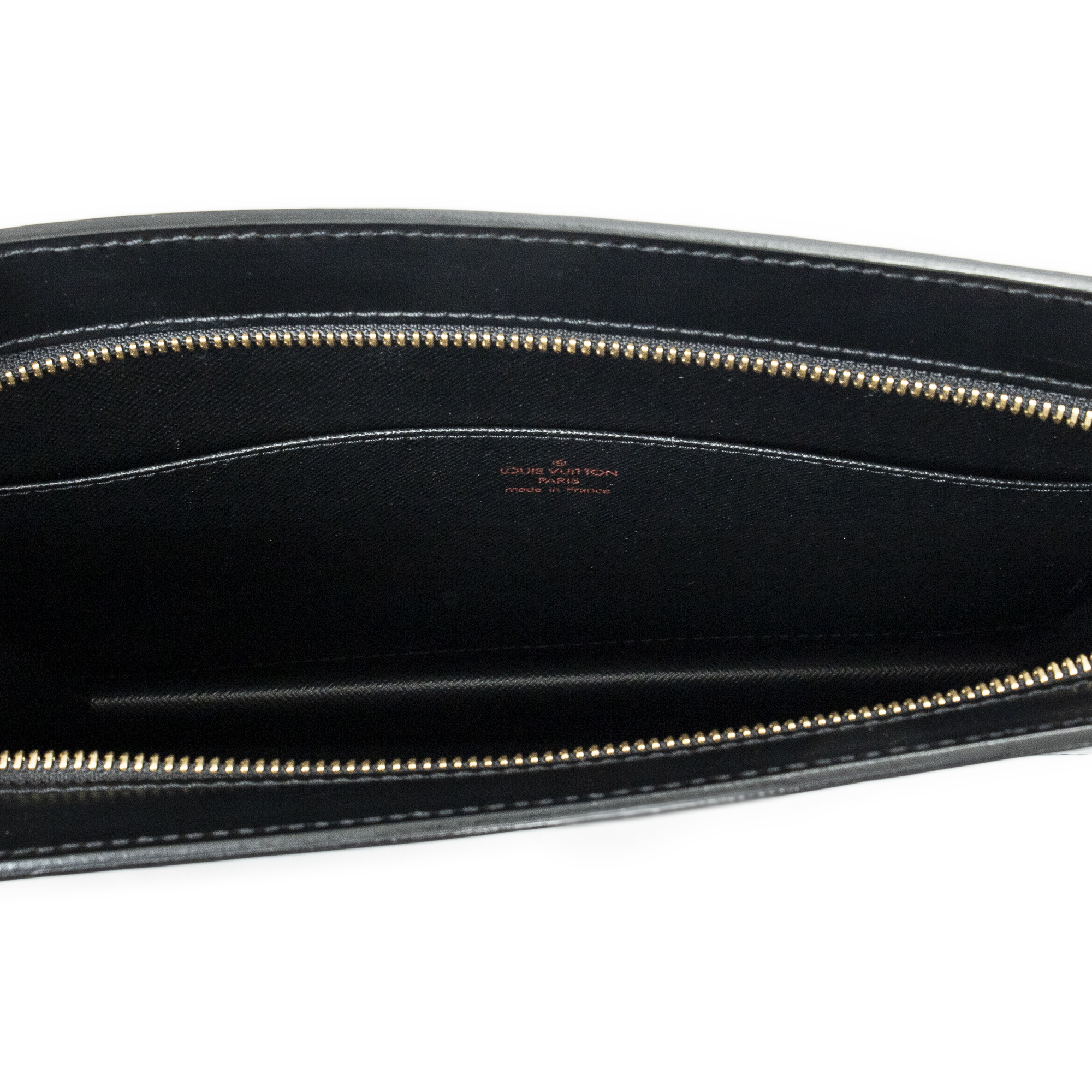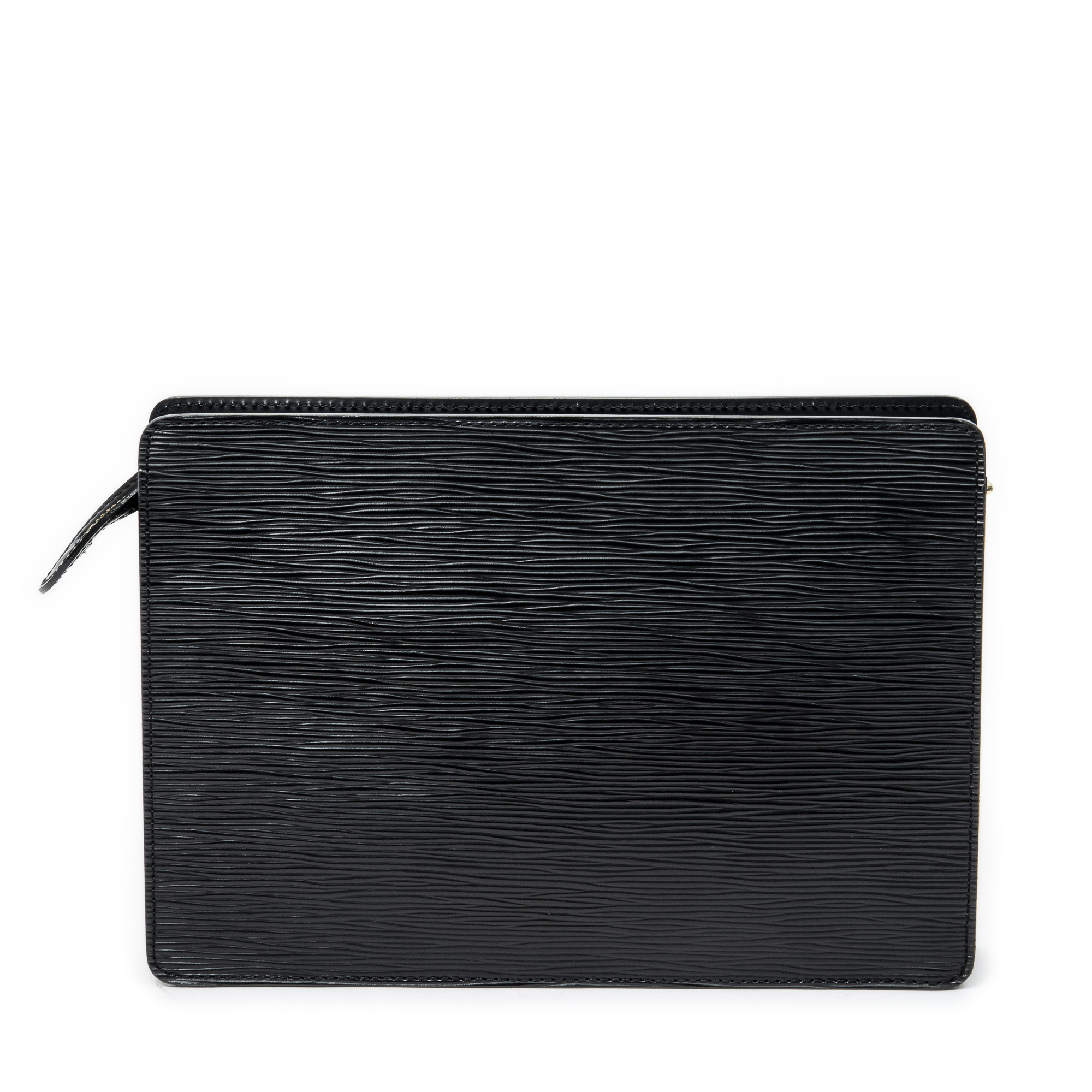 Louis Vuitton Clutch Pochette Homme in Black Epi and Golden Brass hardware. The product is in Excellent Condition (A).