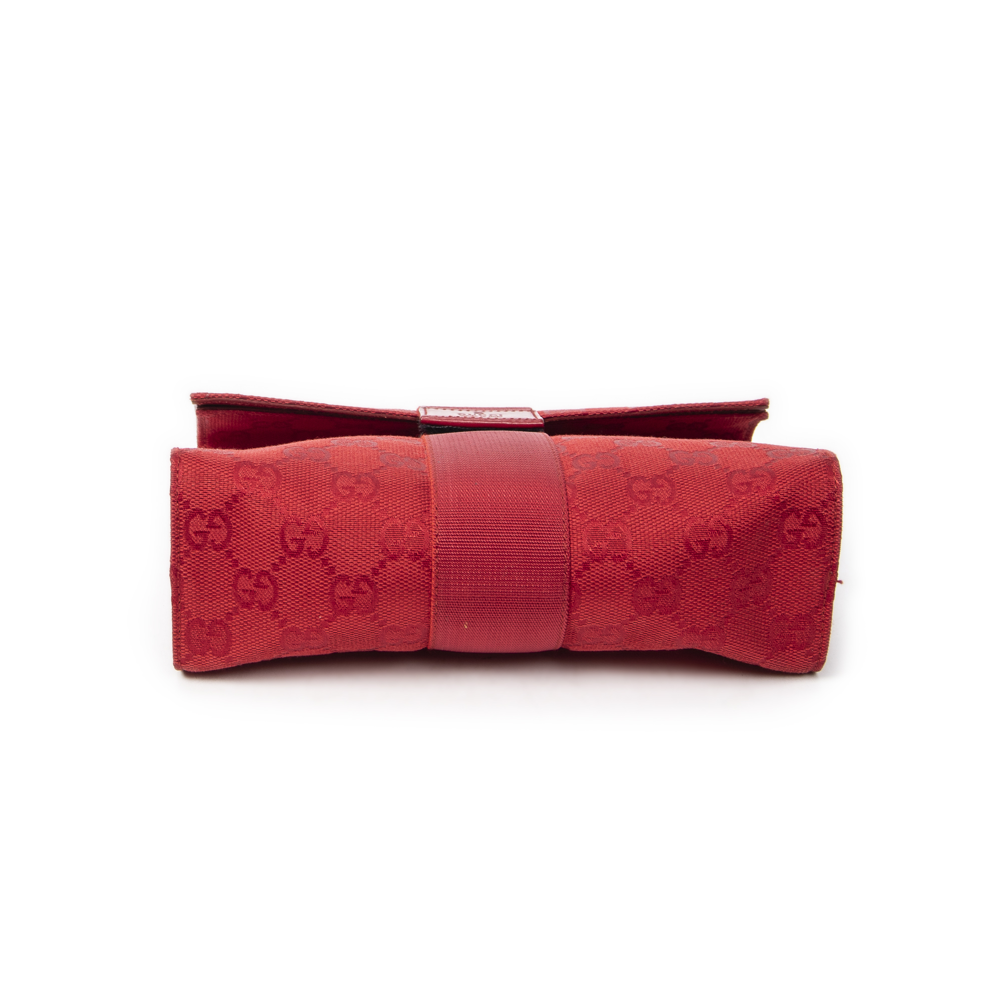 Gucci Pouch Foldable Pouch in Red Monogrammed Canvas and None hardware. The product is in Excellent Condition (A).