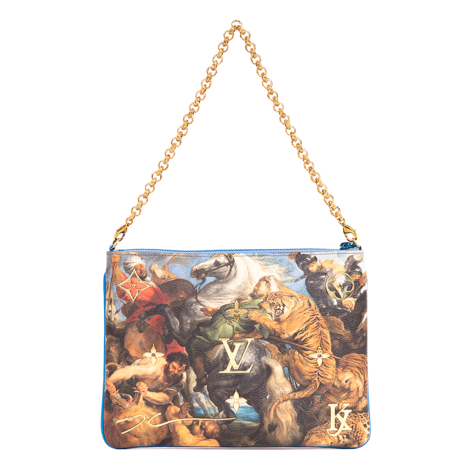 Louis Vuitton Pouch Ltd. Ed. Jeff Koons Masters Collection Rubens Pochette in Blue Rubens Printed Coated Canvas and Golden Brass hardware. The product is in Excellent Condition (A).