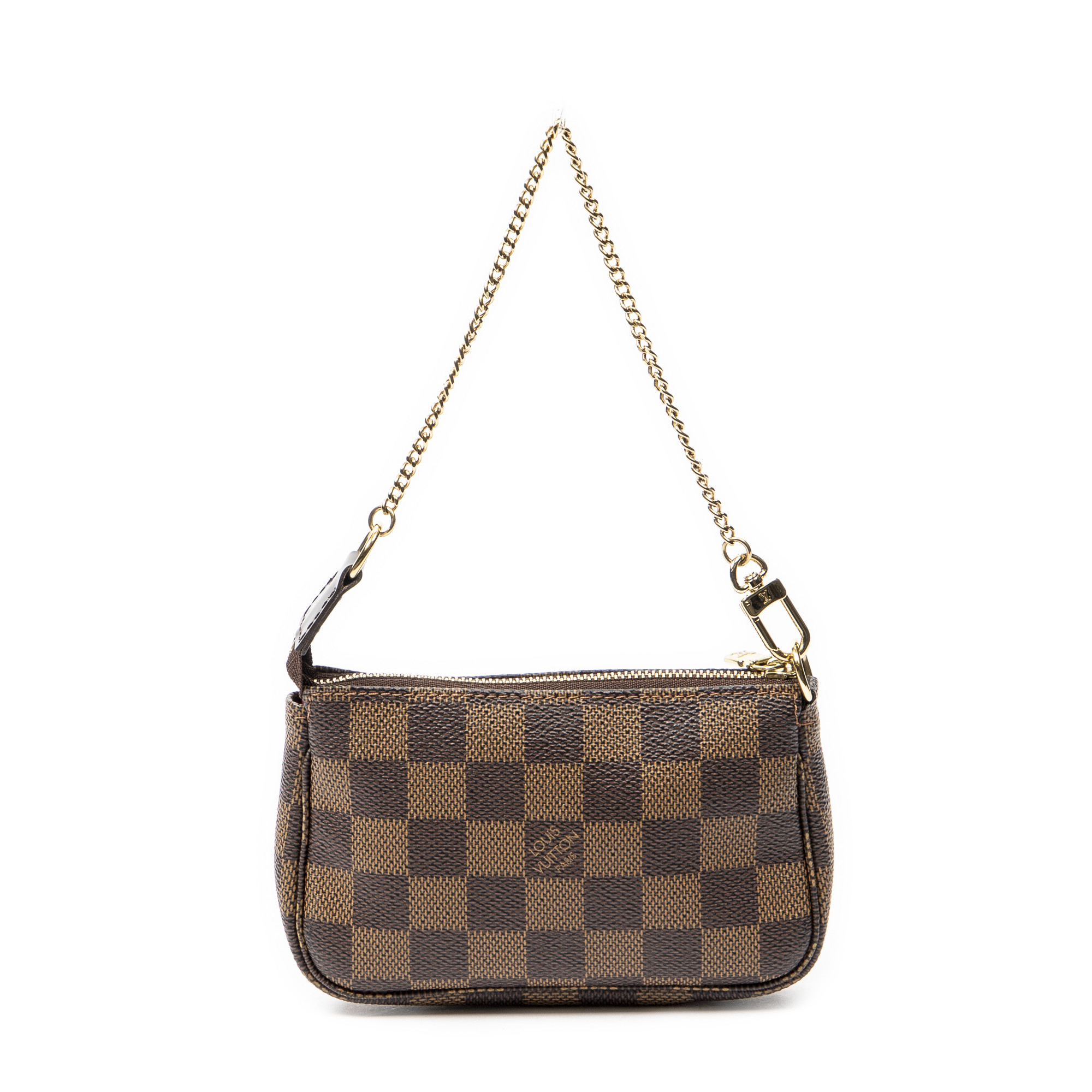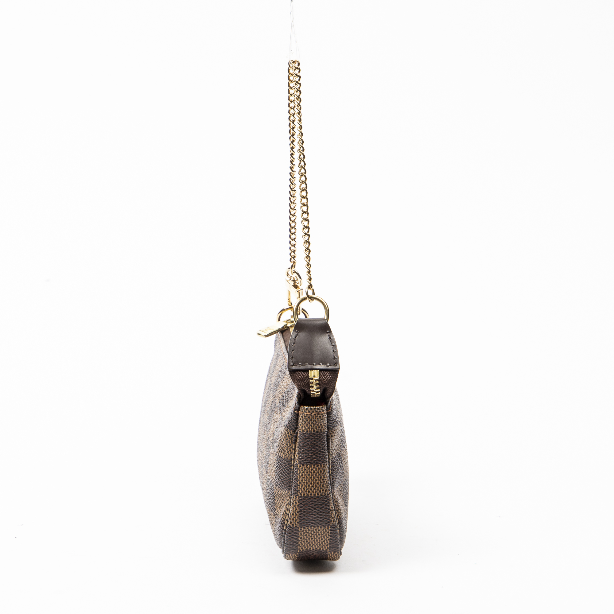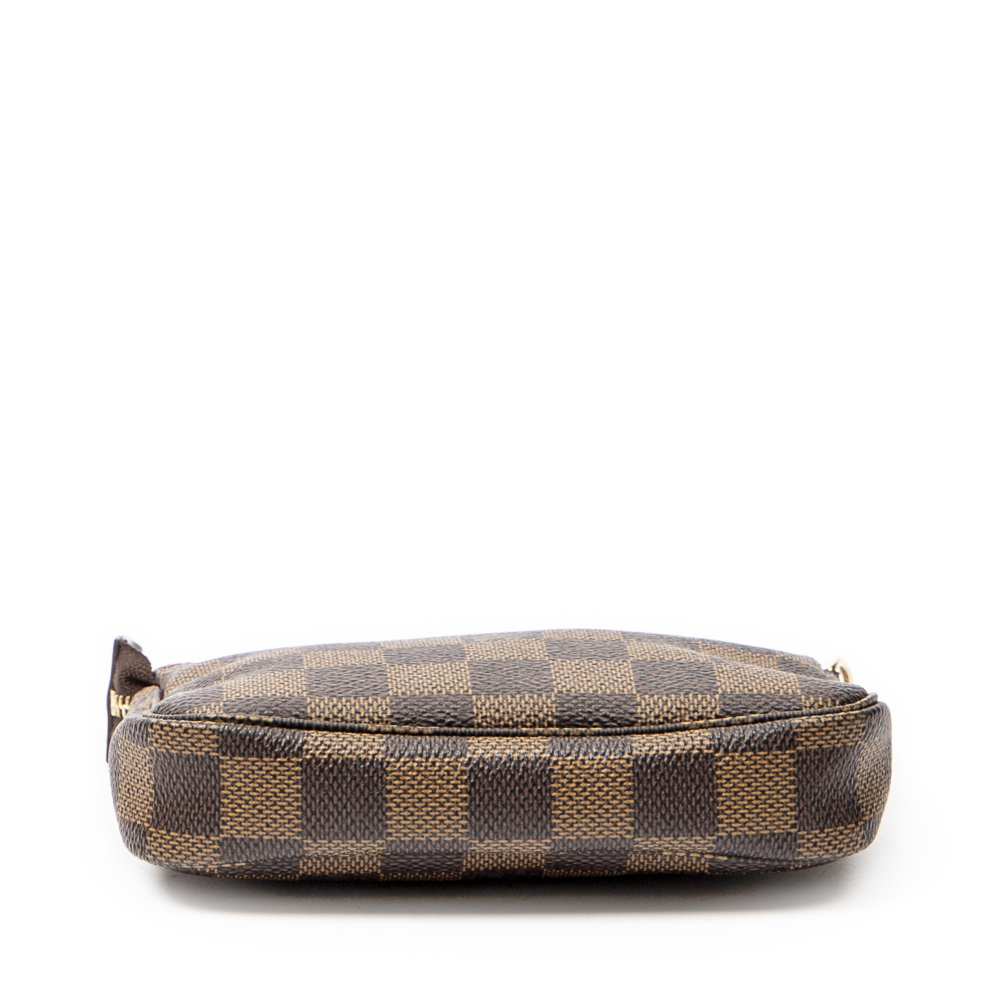 Louis Vuitton Pouch Mini Pochette Accessoires in Brown Damier Ebene and Golden Brass hardware. The product is in Perfect Condition (AA).