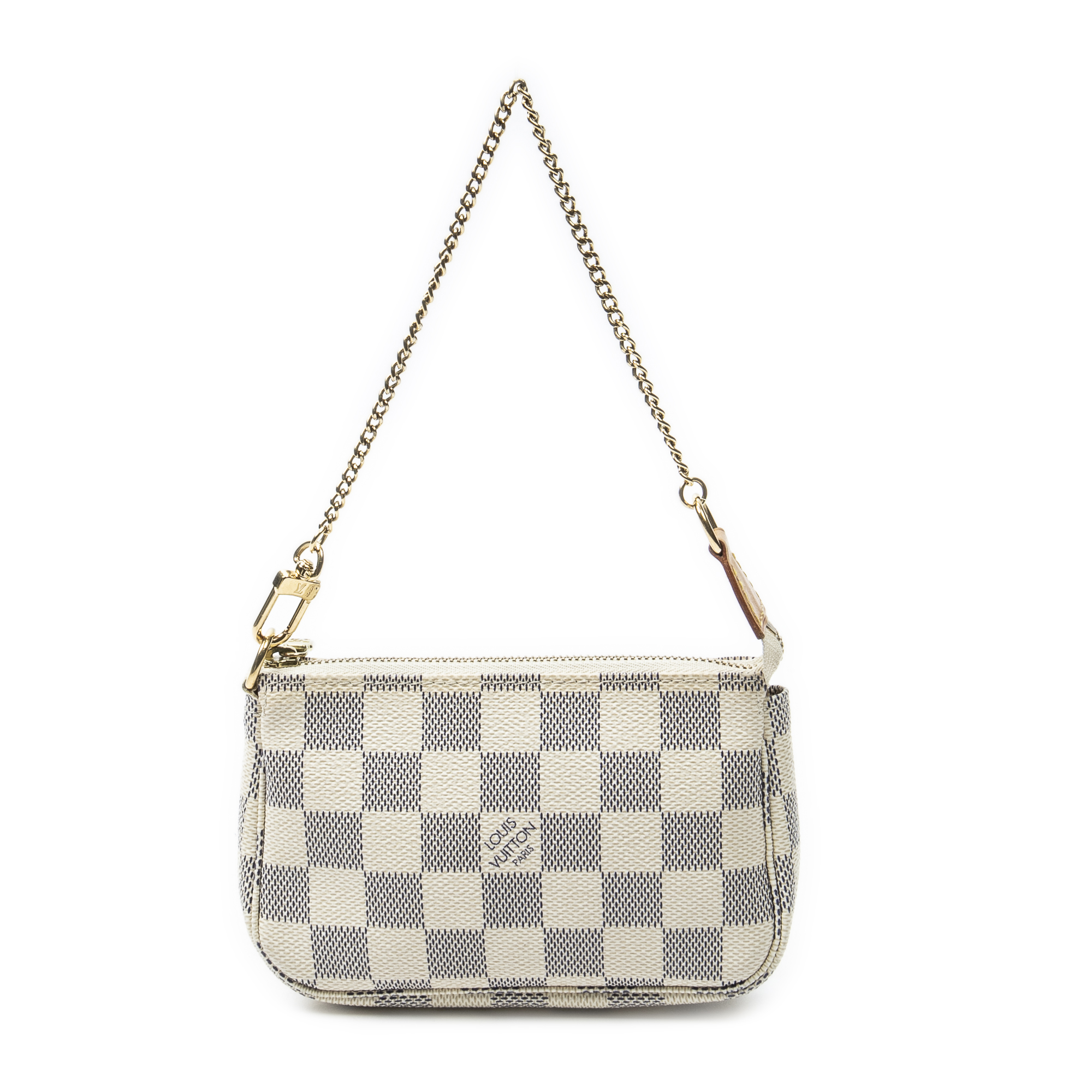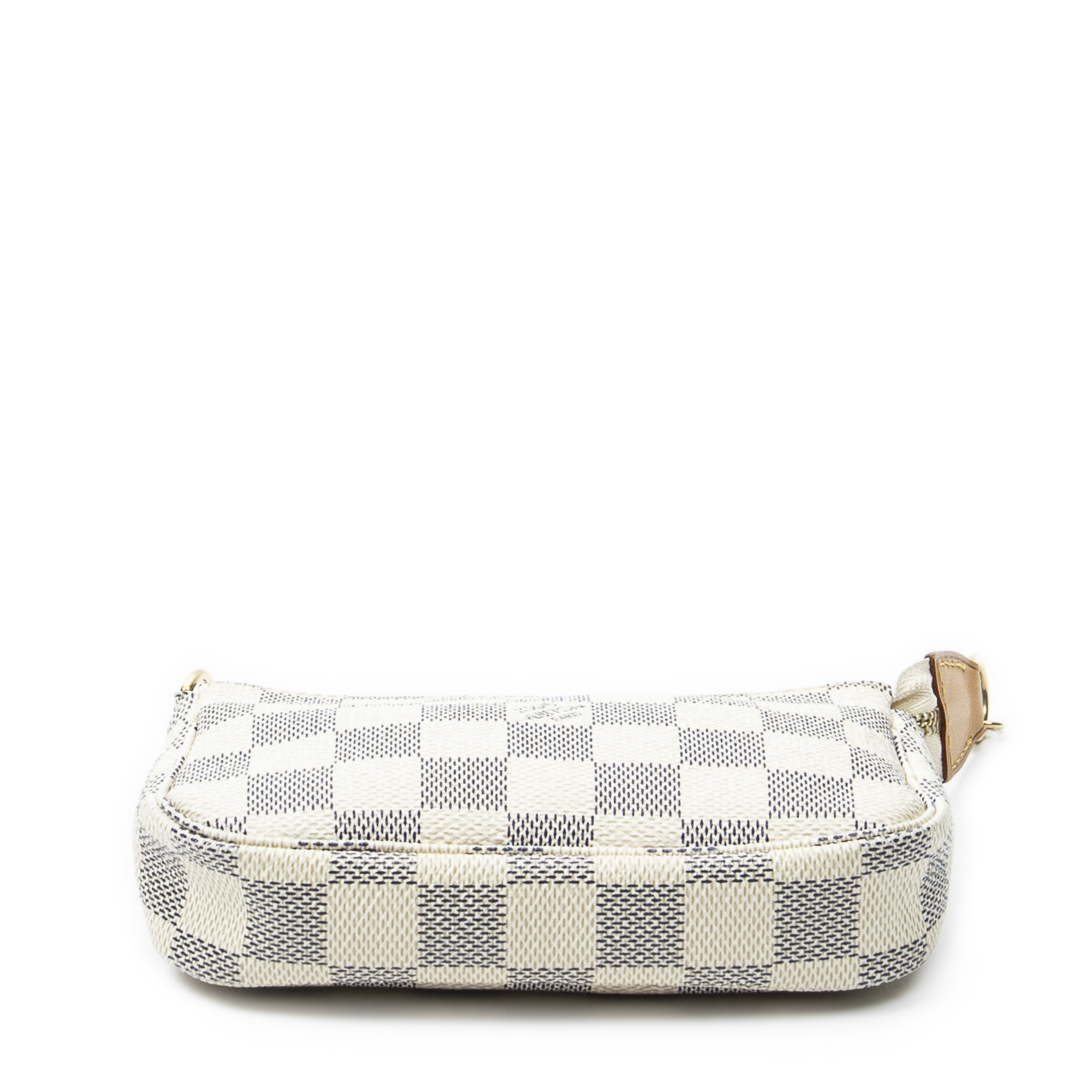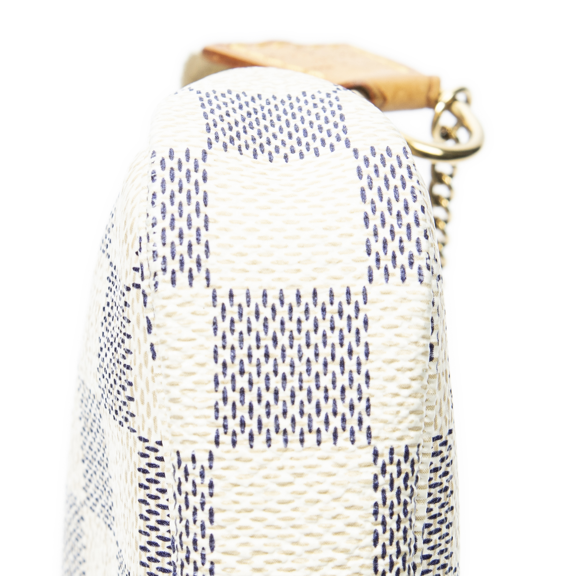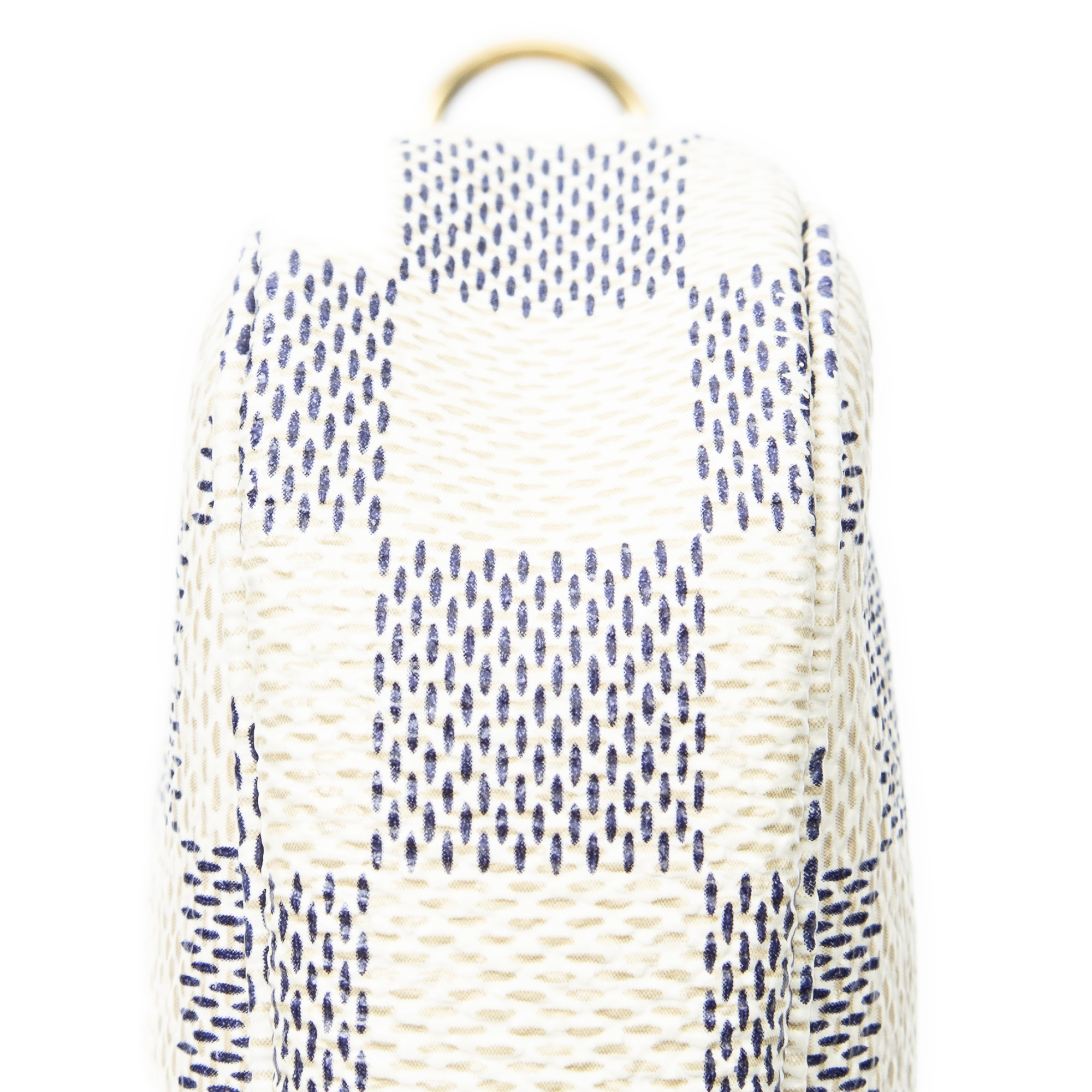 Louis Vuitton Pouch Mini Pochette Accessoires in Ivory Damier Azur and Golden Brass hardware. The product is in Excellent Condition (A).