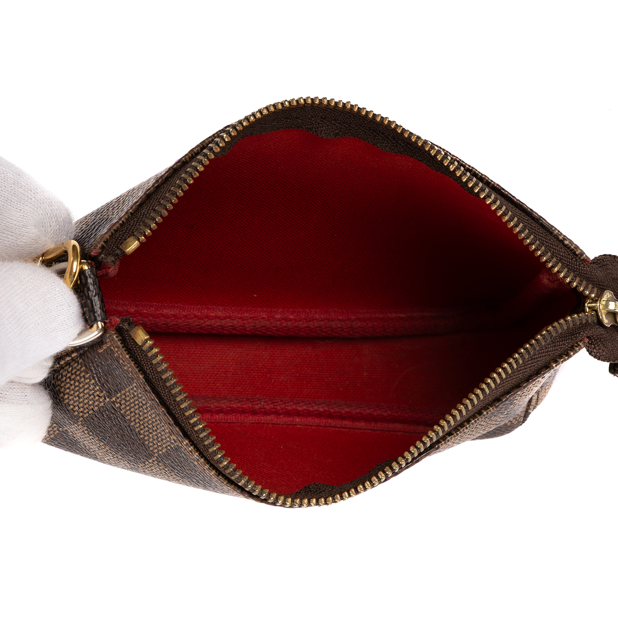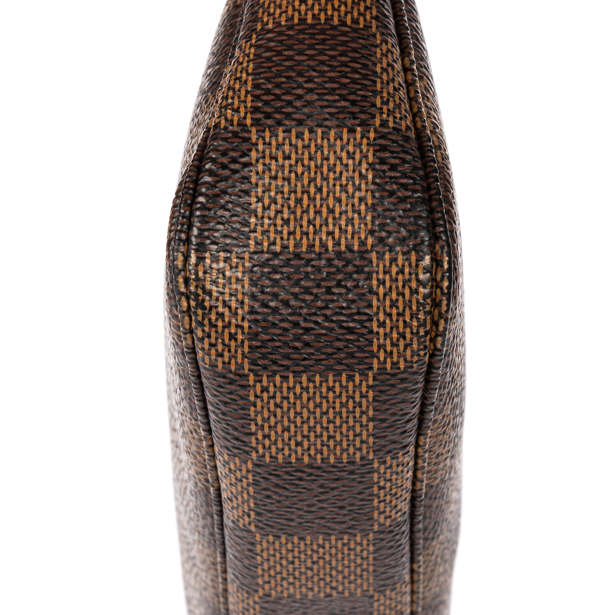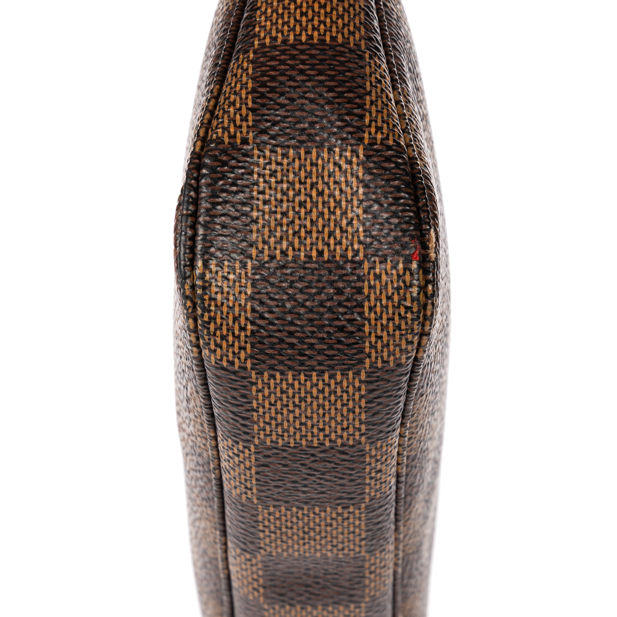 Louis Vuitton Pouch Mini Pochette Mini in Dark Brown Damier Ebene and Golden Brass hardware. The product is in Very Good Condition (AB).