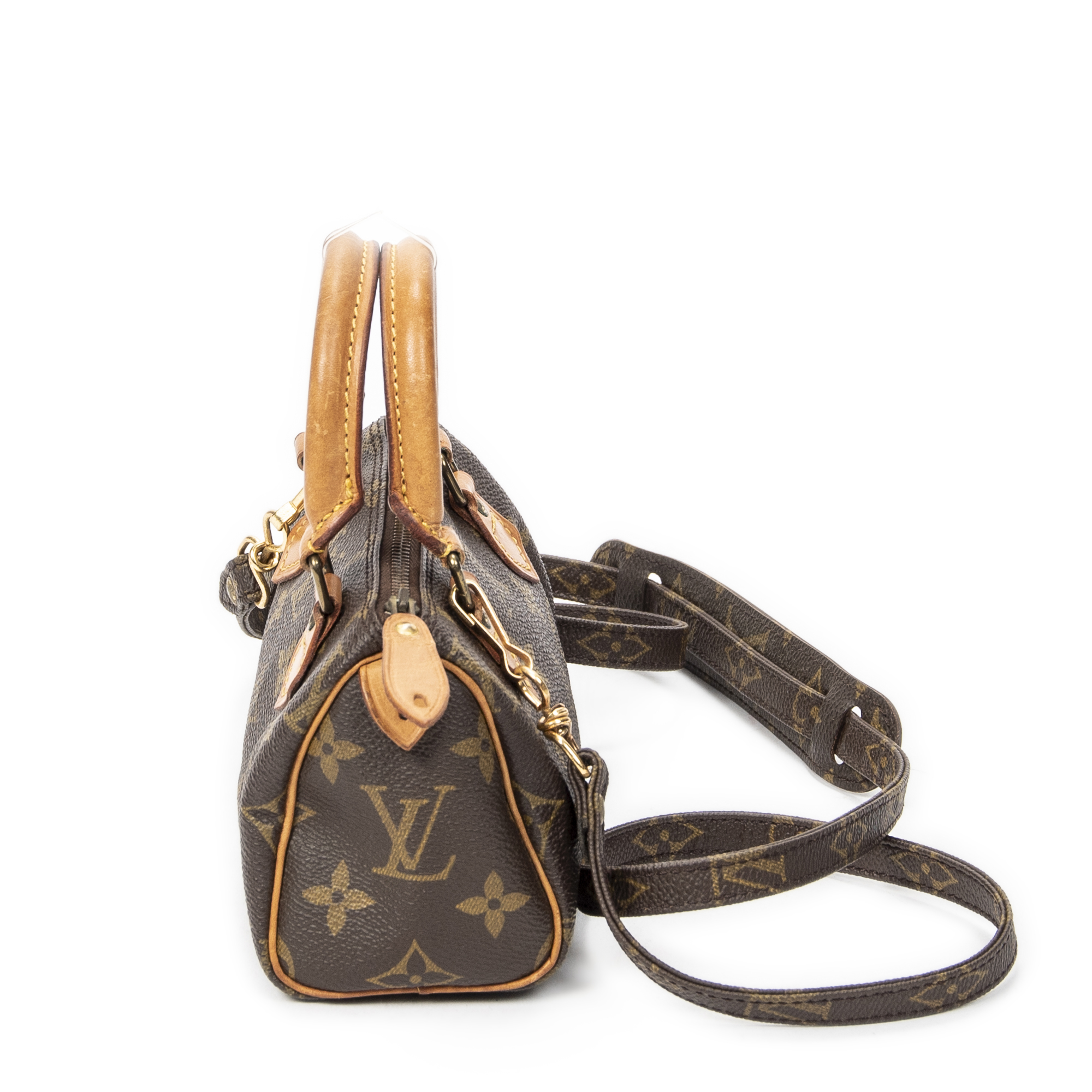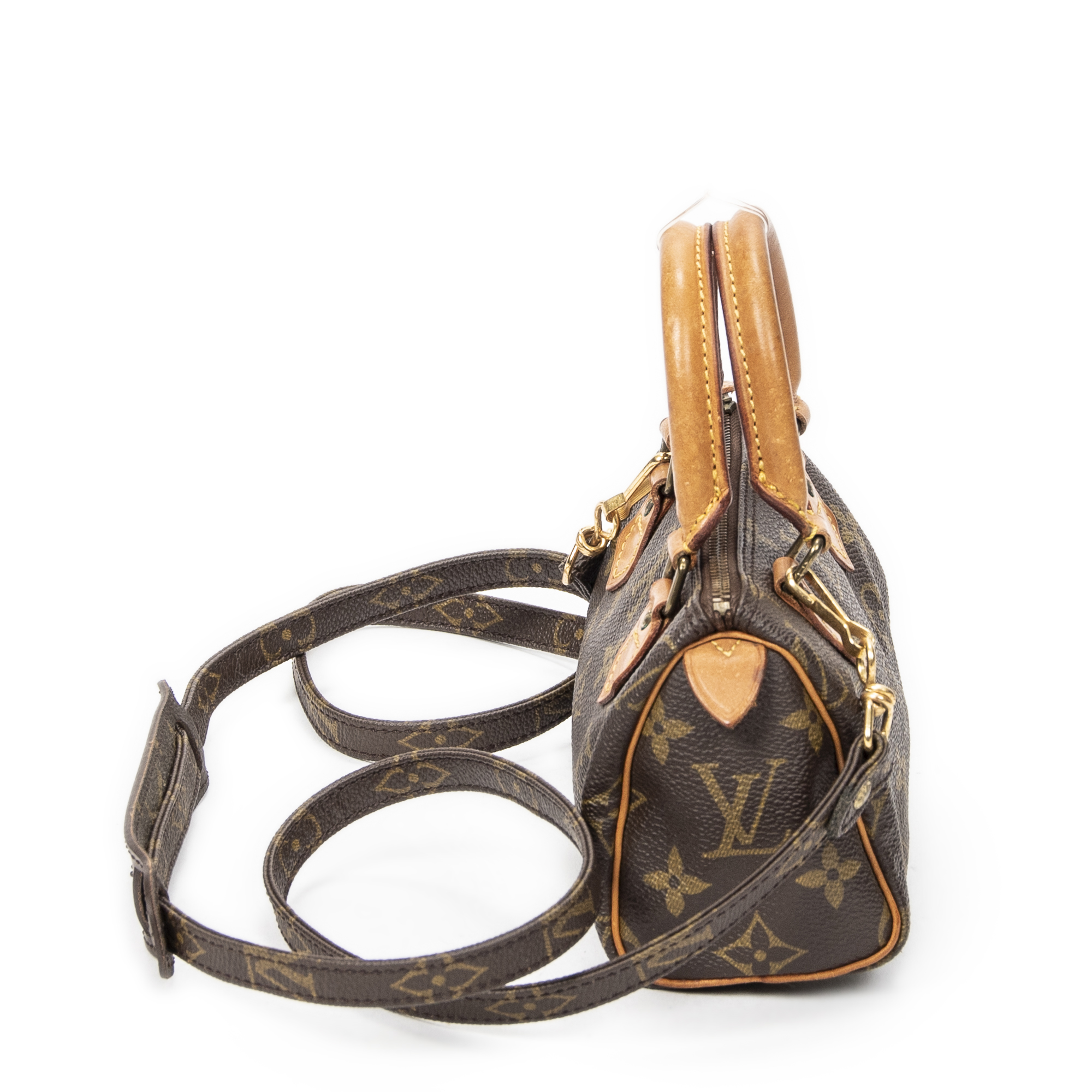 Louis Vuitton Pouch Mini Speedy in Brown Monogram Canvas and Golden Brass hardware. The product is in Very Good Condition (AB).