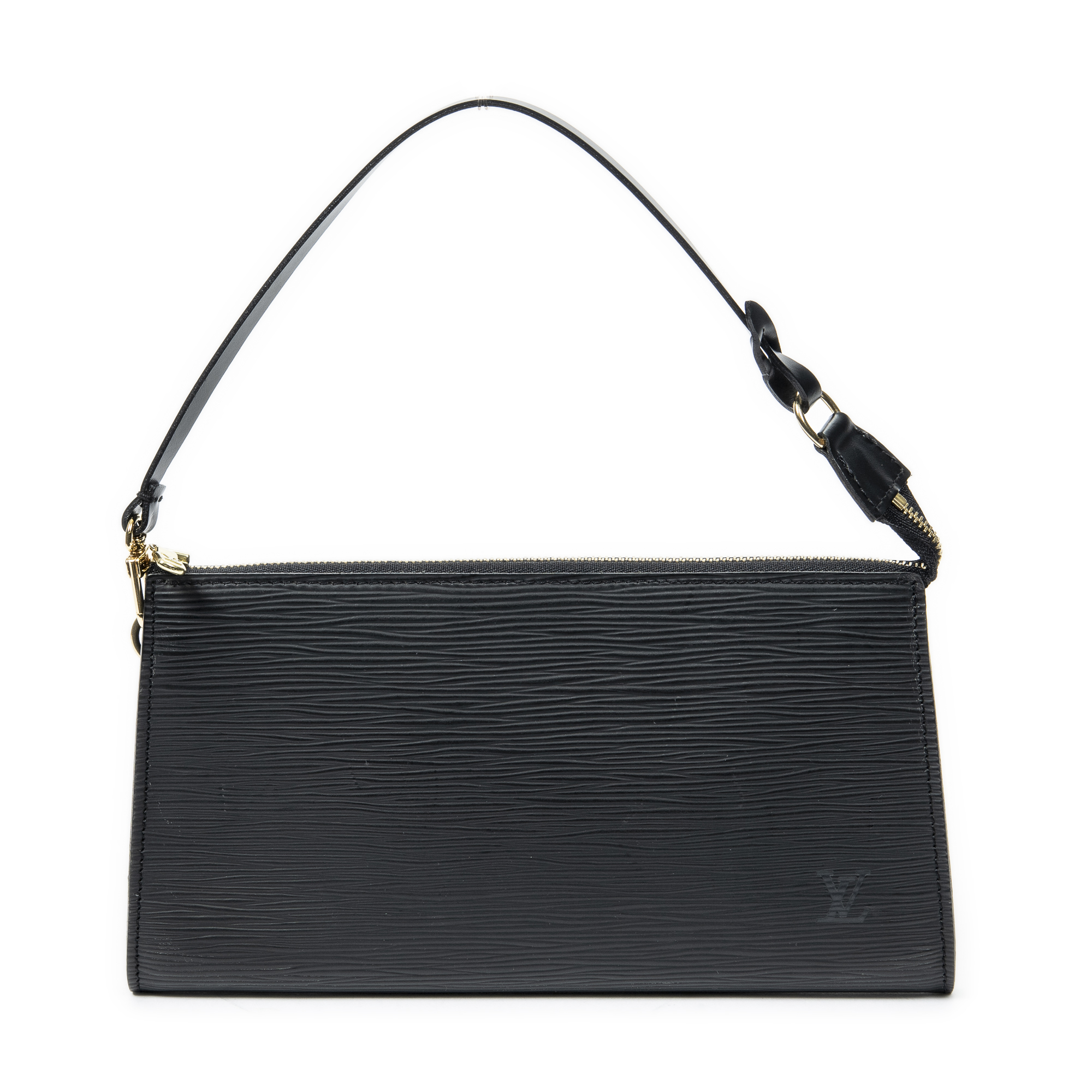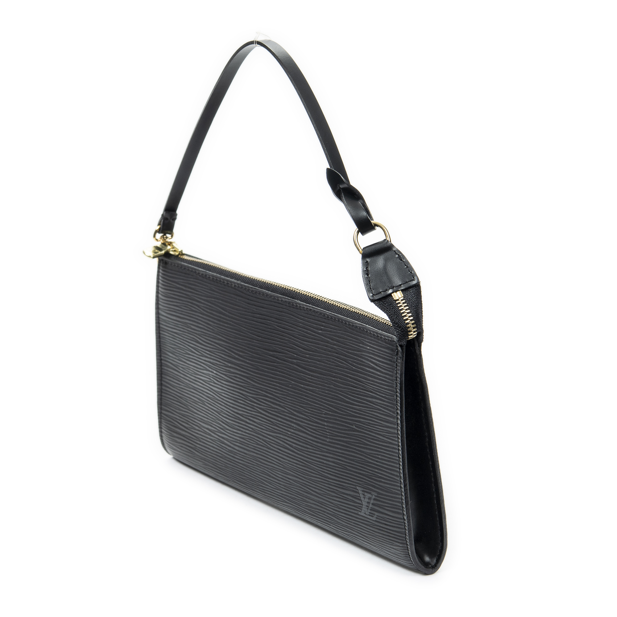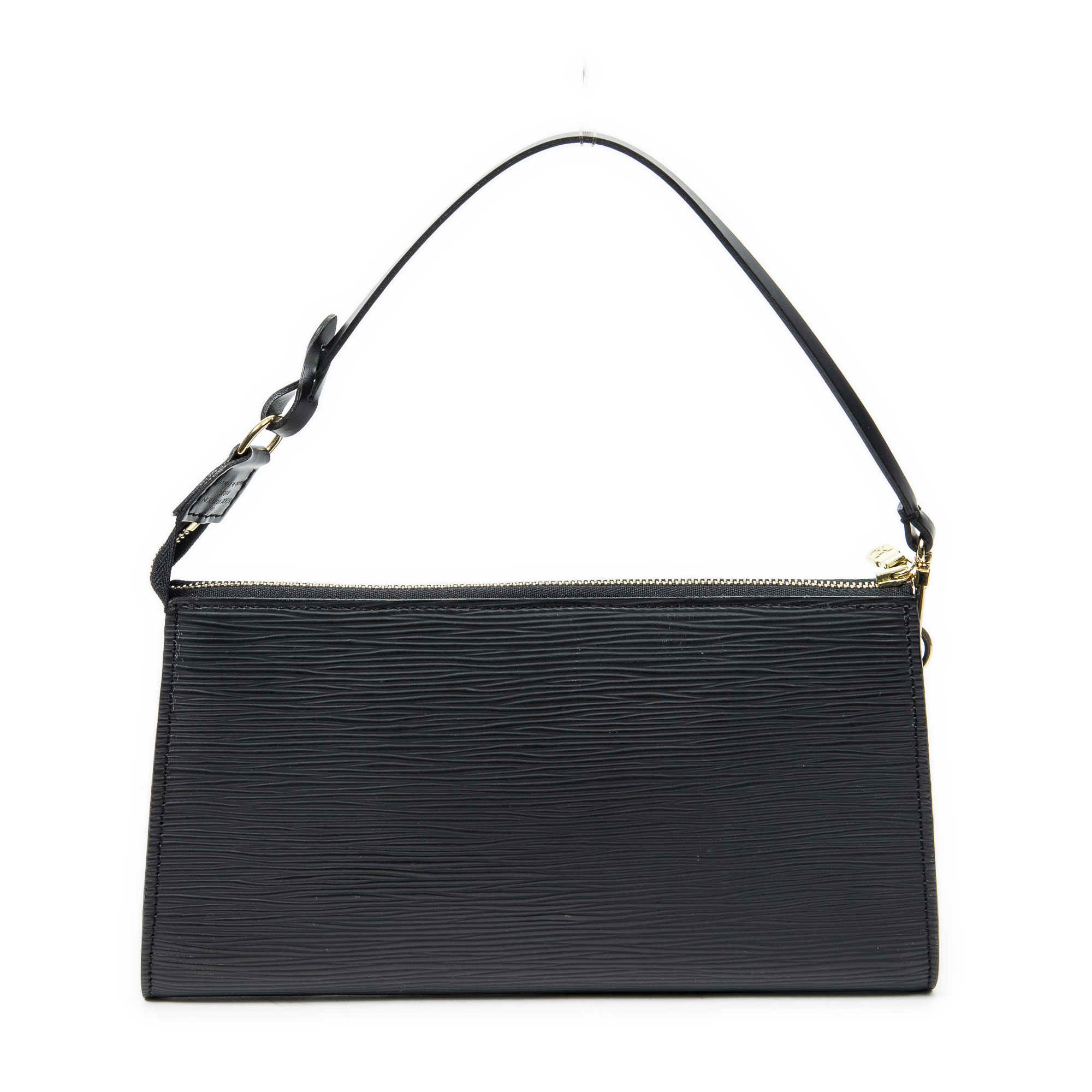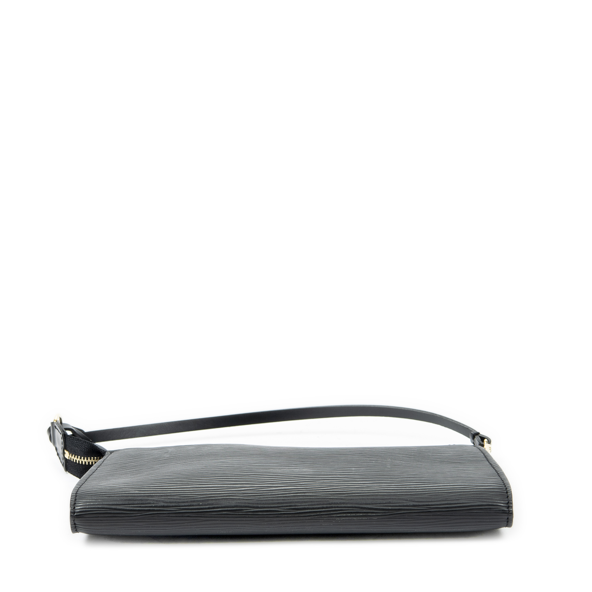 Louis Vuitton Pouch Pochette Accessoires 24 in Black Epi and Golden Brass hardware. The product is in Excellent Condition (A).