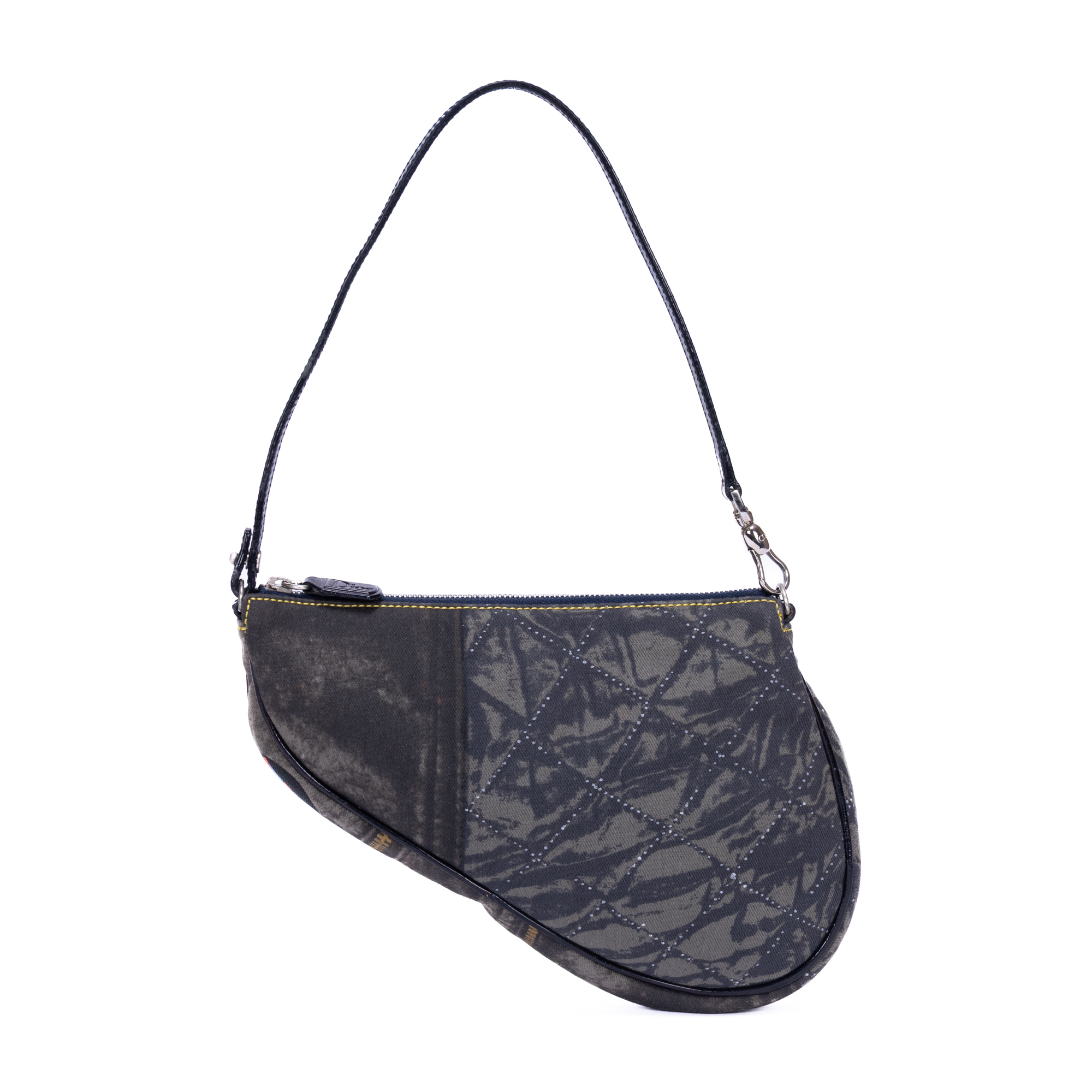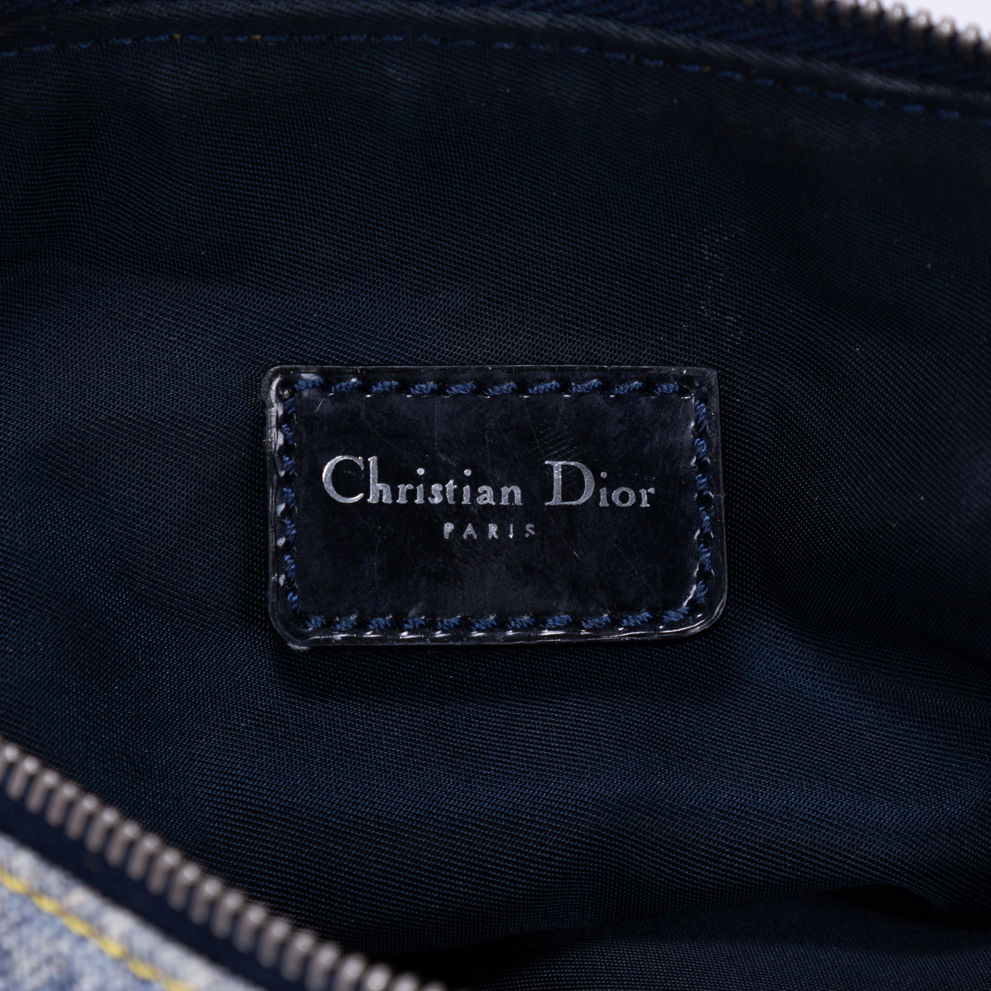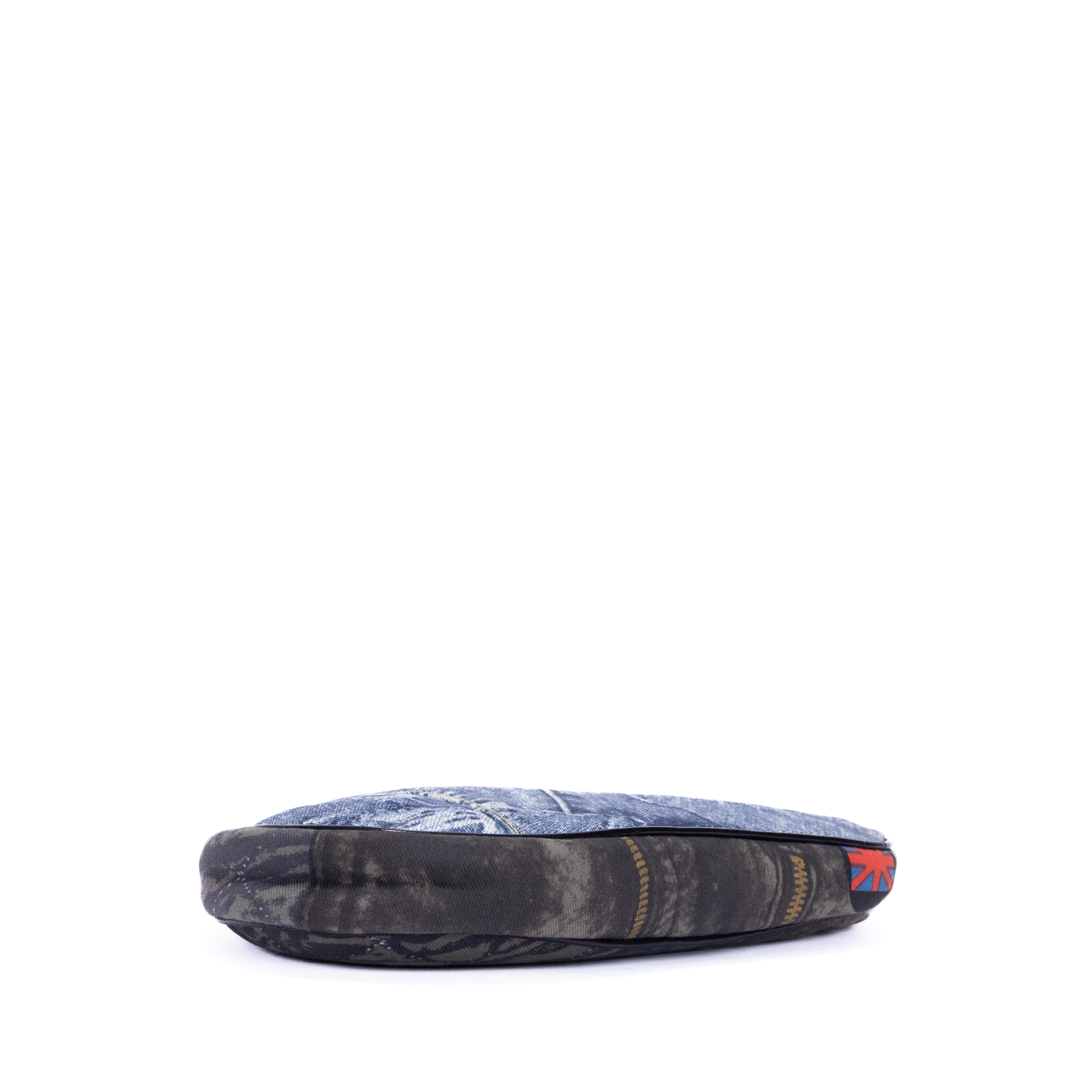 Dior Pouch Saddle Pochette Mini in Blue Denim and Silver hardware. The product is in Excellent Condition (A).