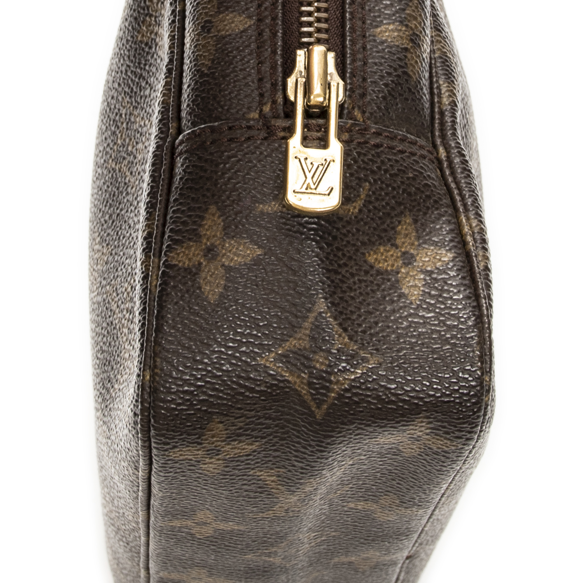 Louis Vuitton Pouch Toiletry Pouch PM in Brown Monogram Canvas and Golden Brass hardware. The product is in Excellent Condition (A).