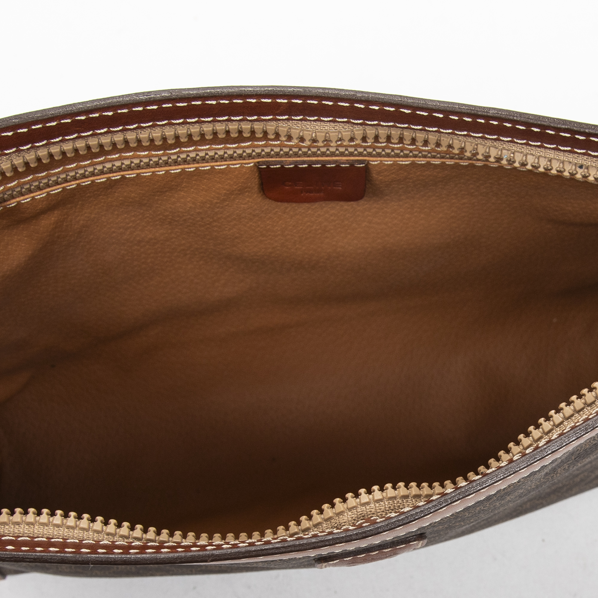 Celine Pouch Toiletry Pouch in Brown Macadam Coated Canvas and Gold hardware. The product is in Very Good Condition (AB).