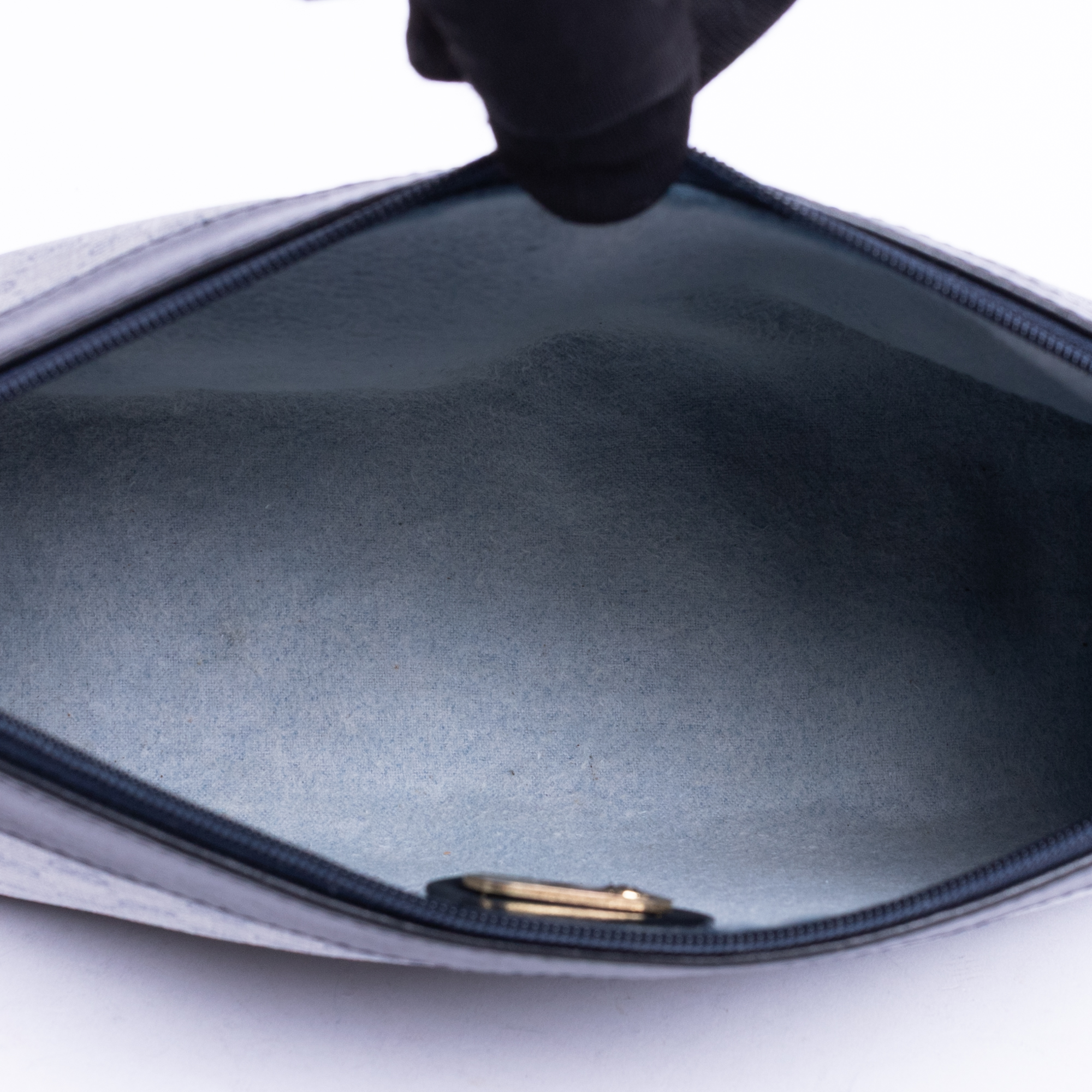 Gucci Pouch Vintage Accessory Pochette Small in Blue Microguccissima Leather and Silver hardware. The product is in Excellent Condition (A).