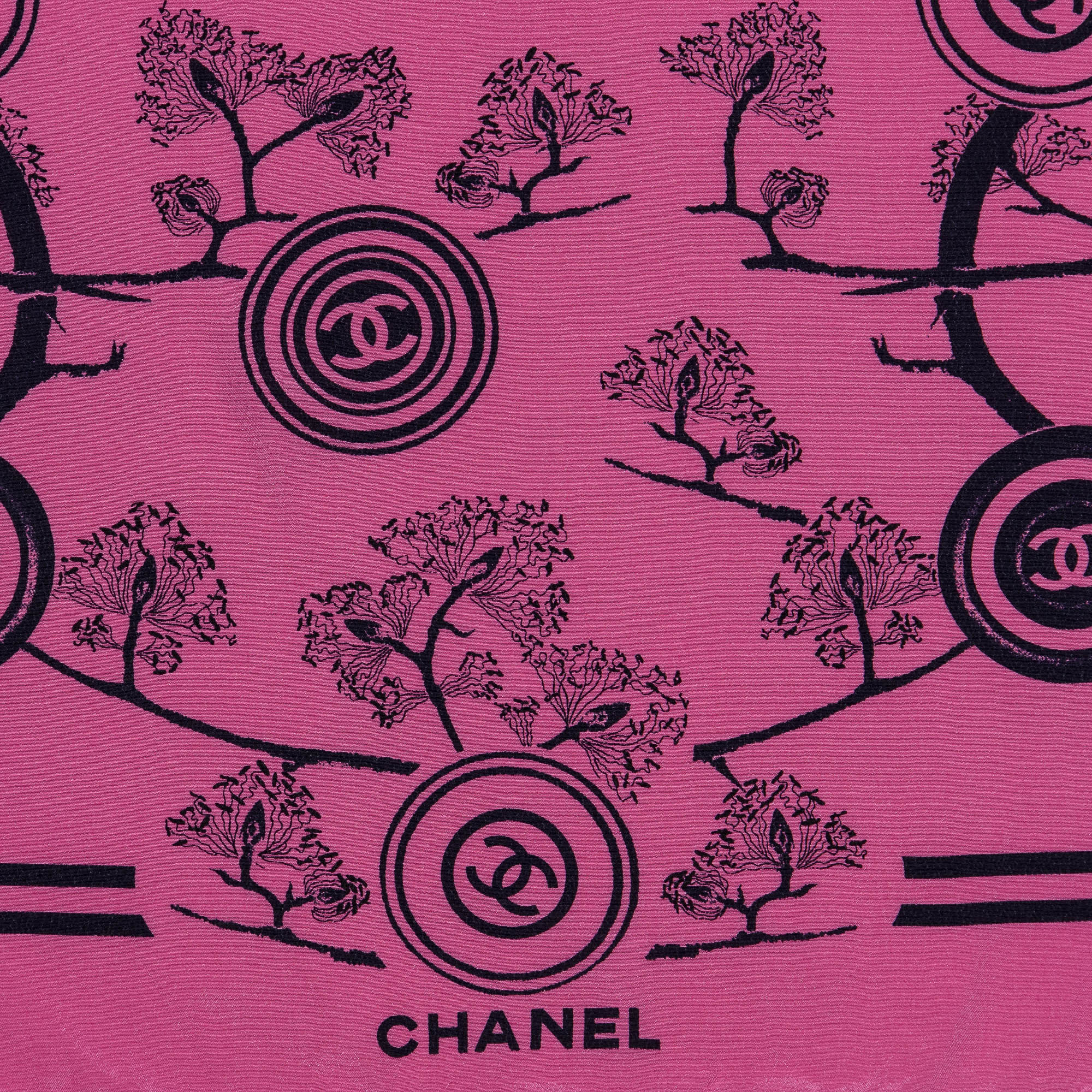 Chanel Scarf Long Scarf in Pink/Black 100% Silk and None hardware. The product is in Excellent Condition (A).