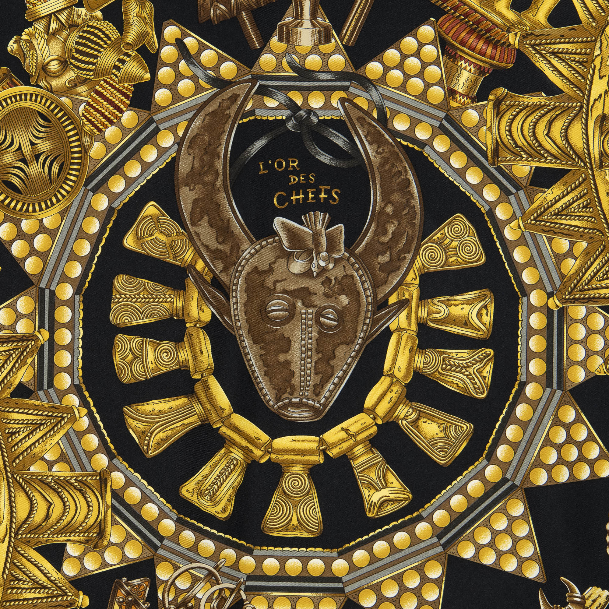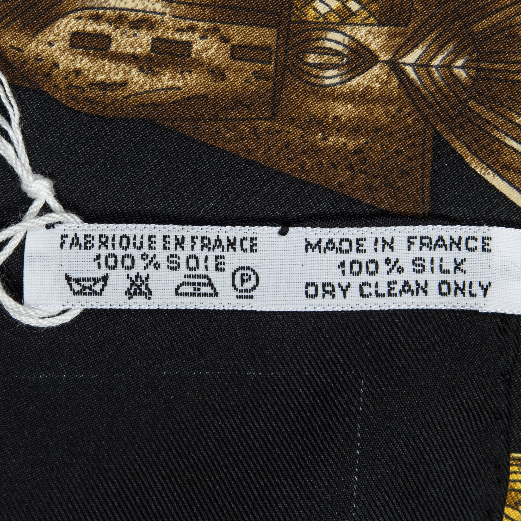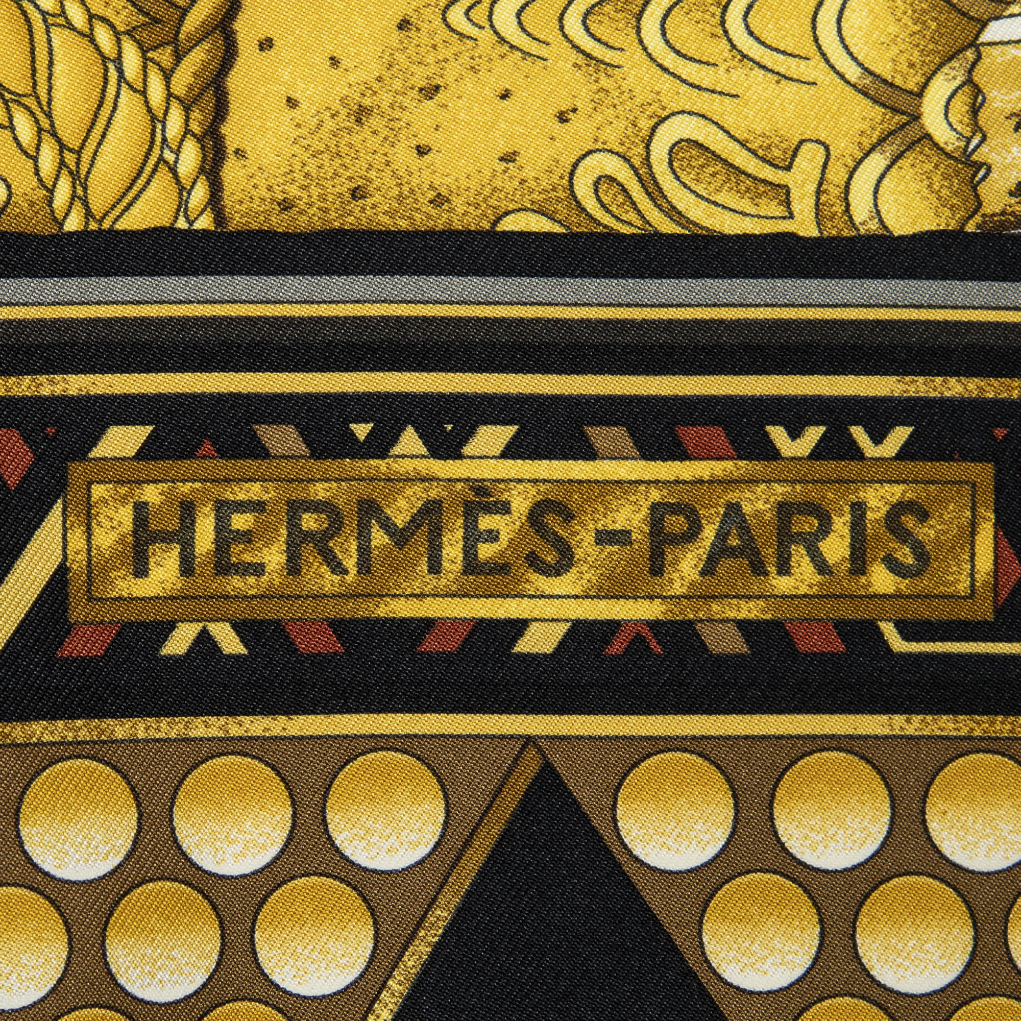 Hermès Scarf Scarf in Black/Gold/Brown 100% Twill Silk and None hardware. The product is in Excellent Condition (A).