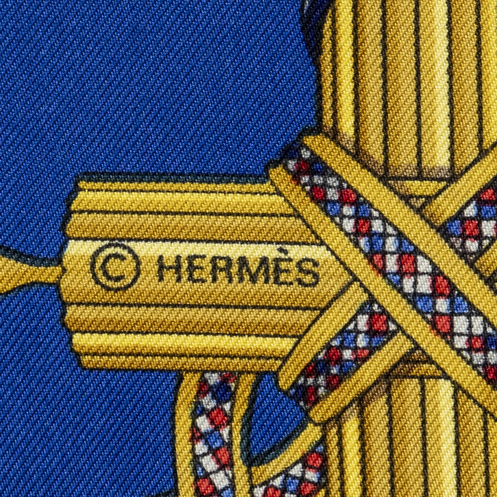Hermès Scarf Scarf in Blue/Red/Gold 100% Twill Silk and None hardware. The product is in Perfect Condition (AA).