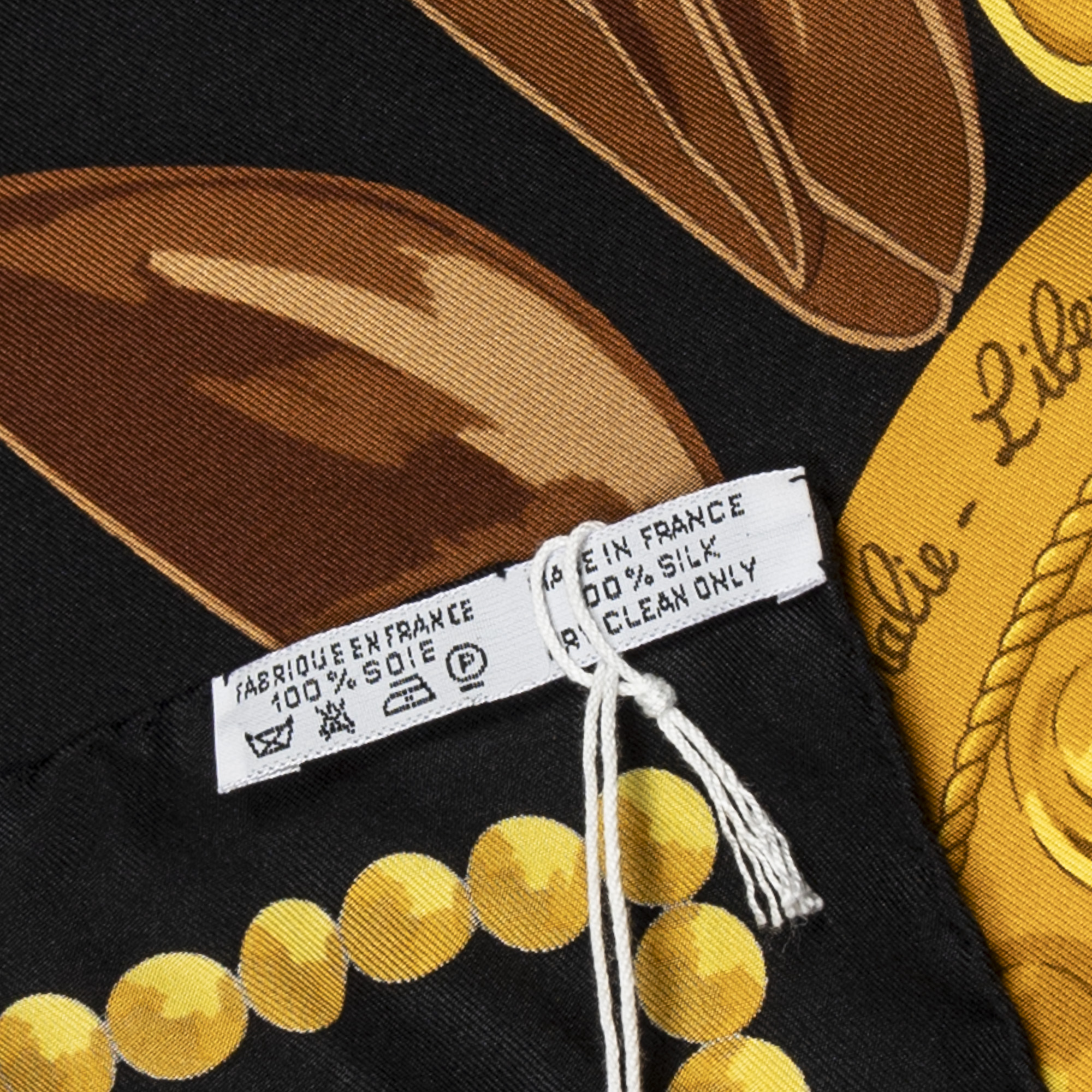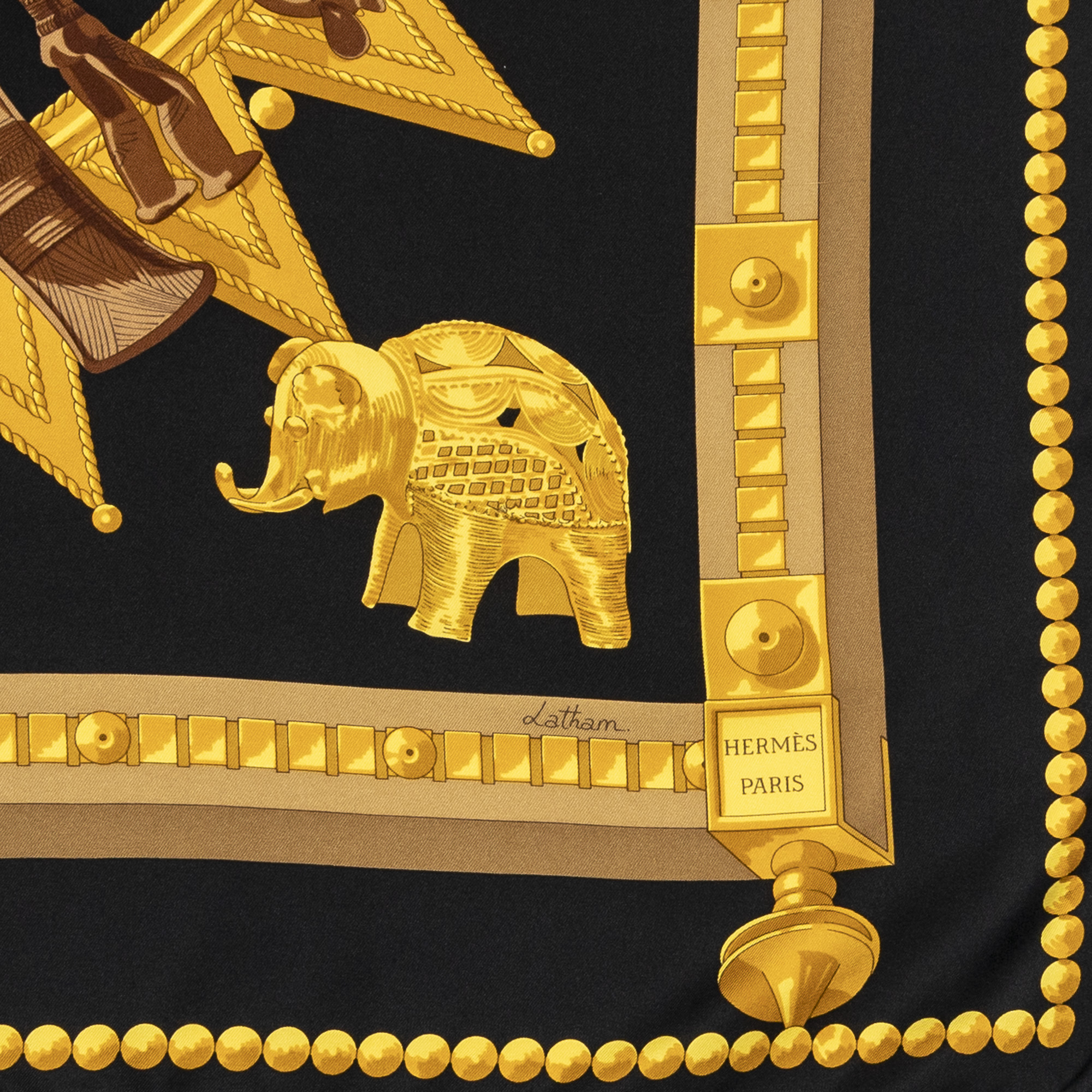 Hermès Scarf Scarf in Black/Gold/Brown 100% Twill Silk and None hardware. The product is in Excellent Condition (A).