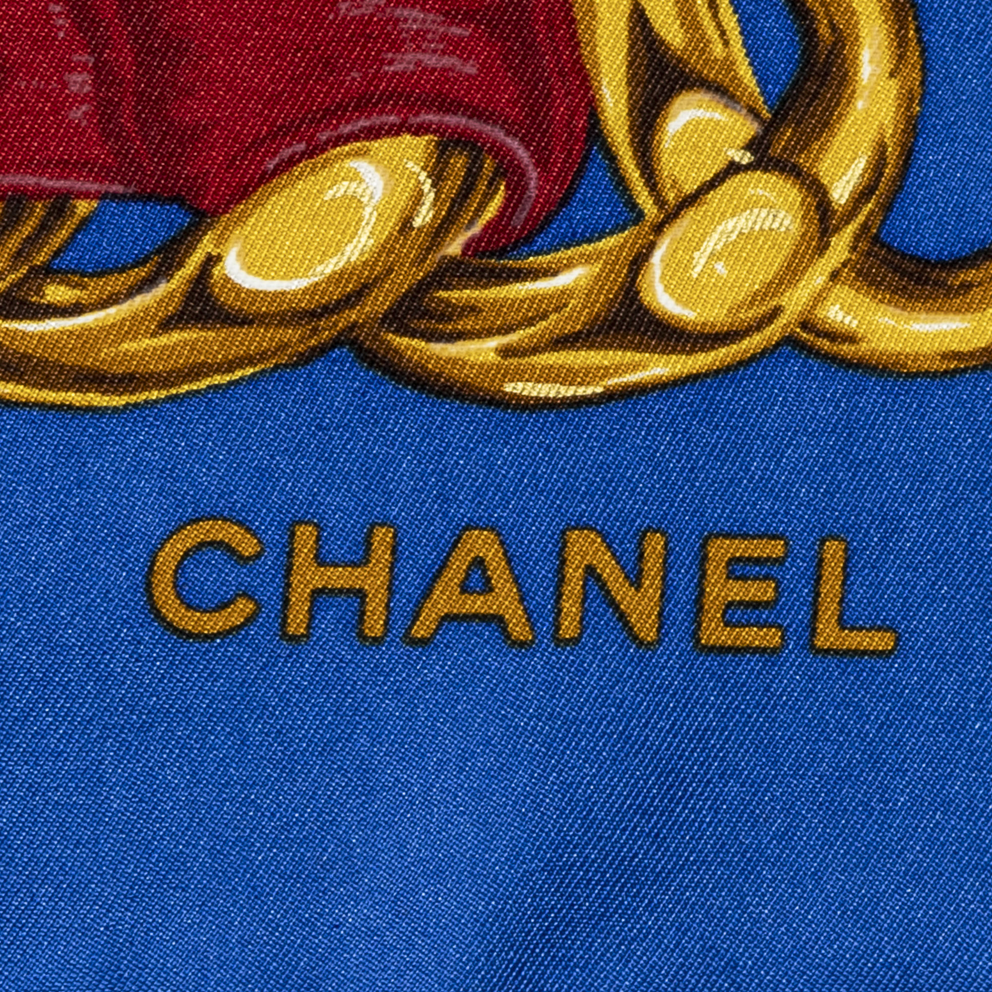 Chanel Scarf Scarf in Blue/Gold/Red 100% Twill Silk and None hardware. The product is in Perfect Condition (AA).