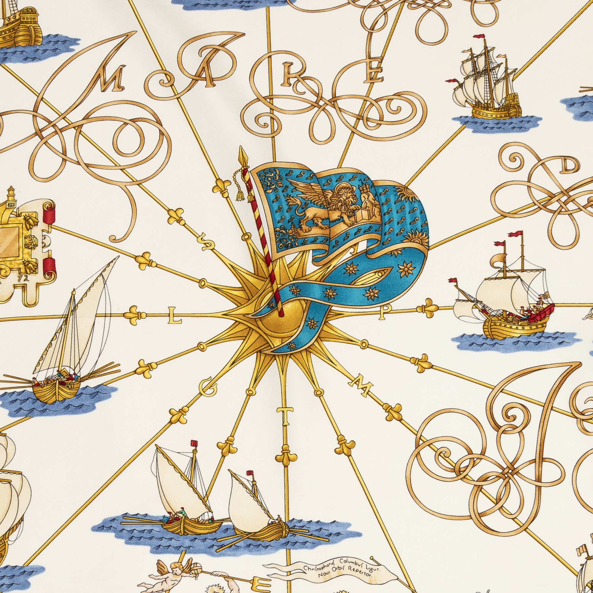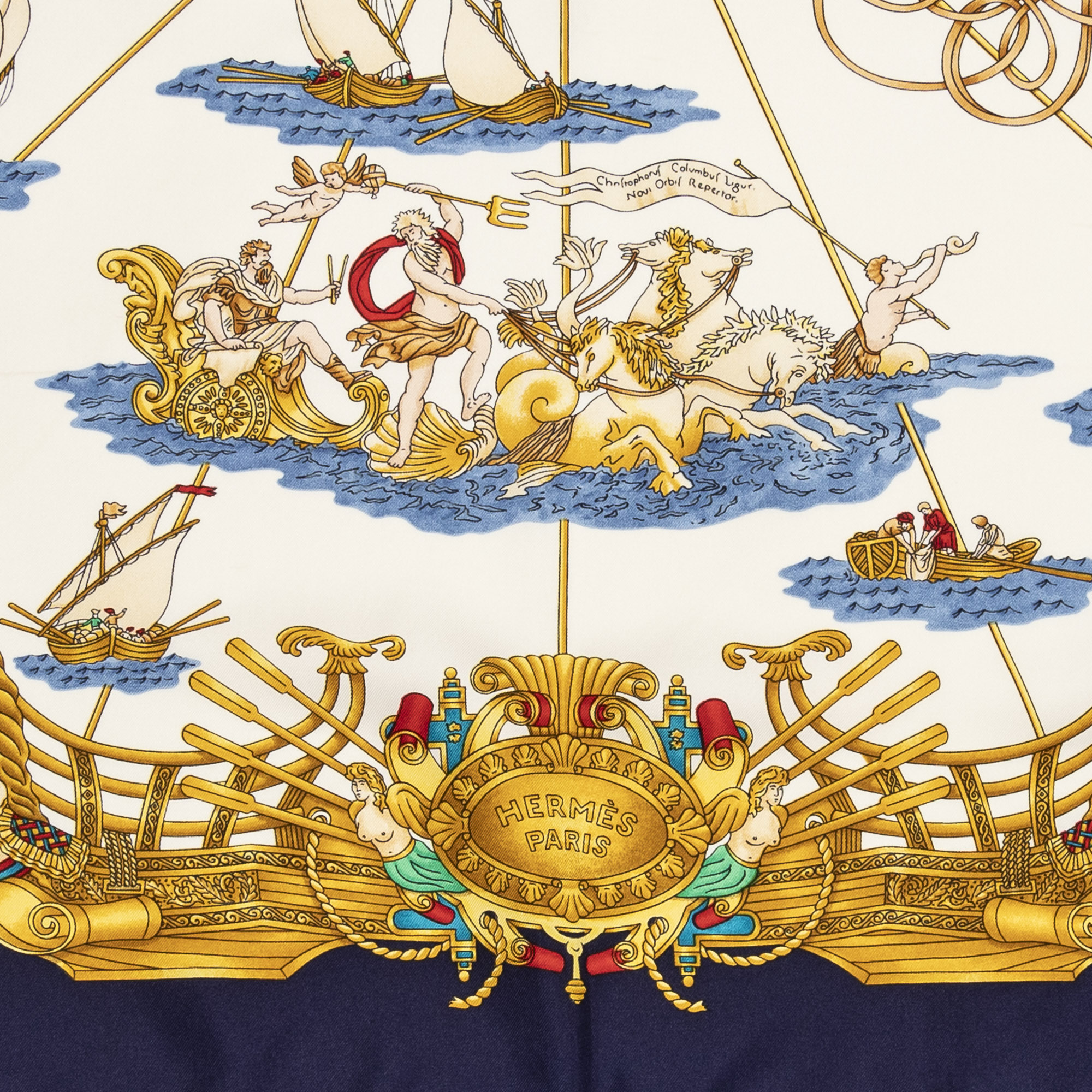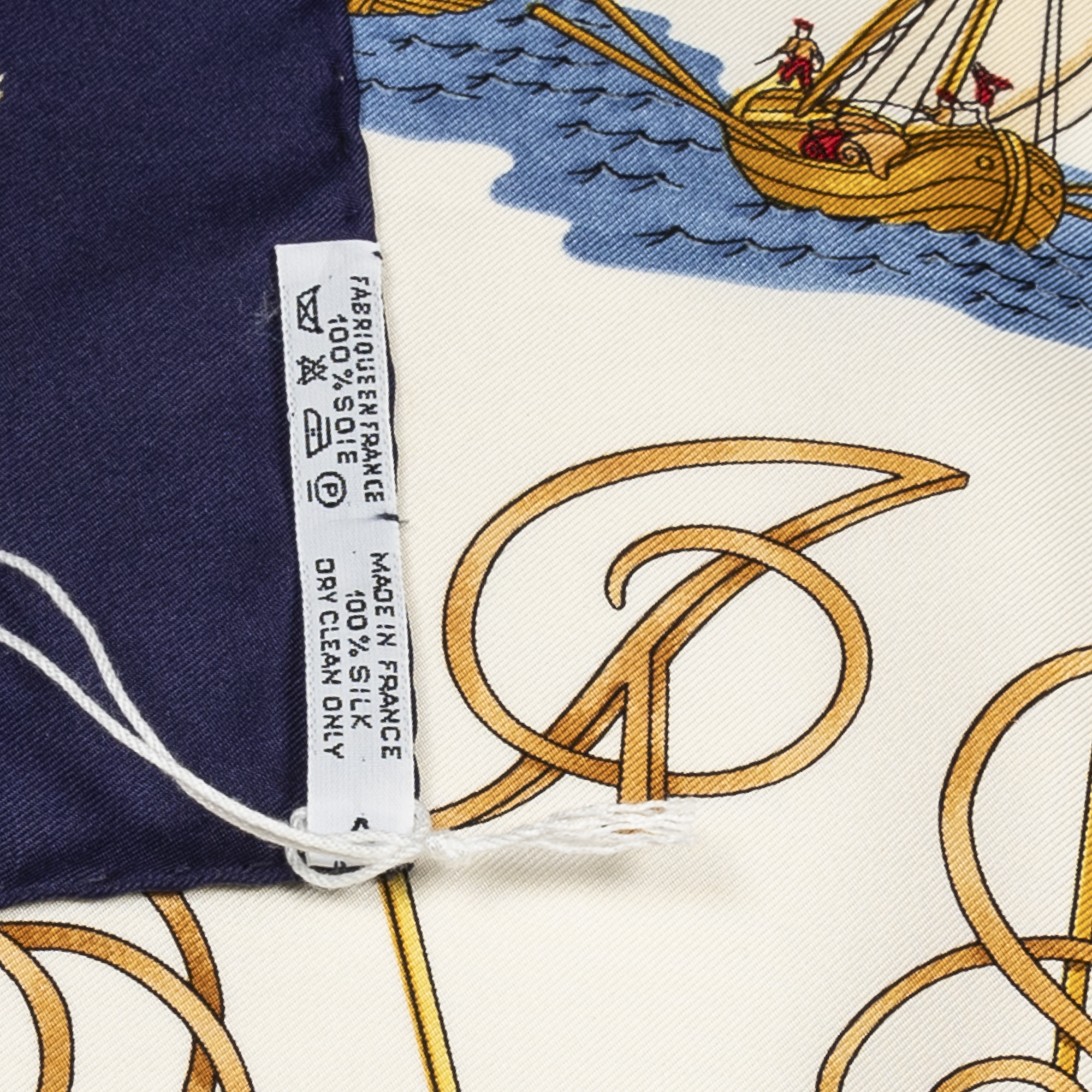 Hermès Scarf Scarf in Navy/Ivory/Gold 100% Twill Silk and None hardware. The product is in Perfect Condition (AA).