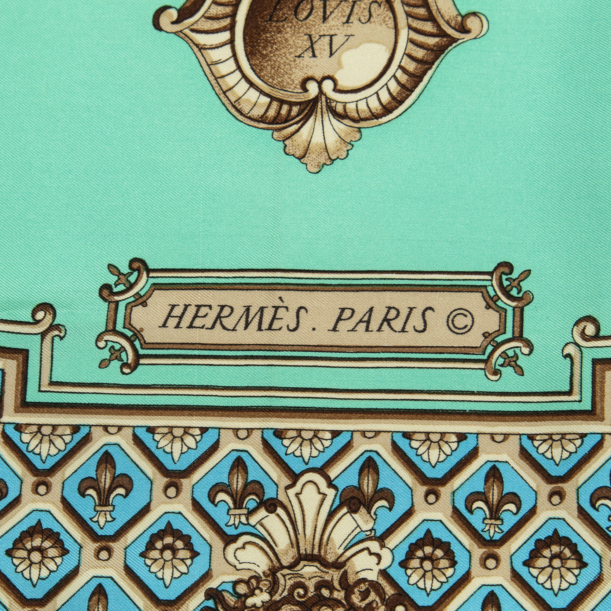 Hermès Scarf Scarf in Green/Brown/Blue 100% Twill Silk and hardware. The product is in Excellent Condition (A).