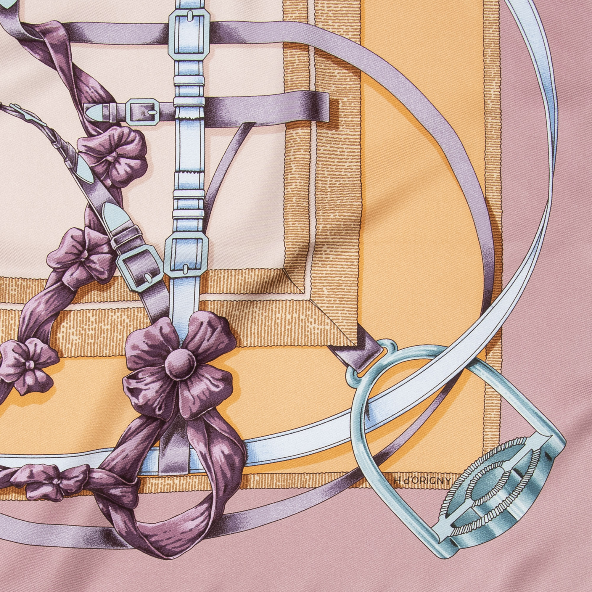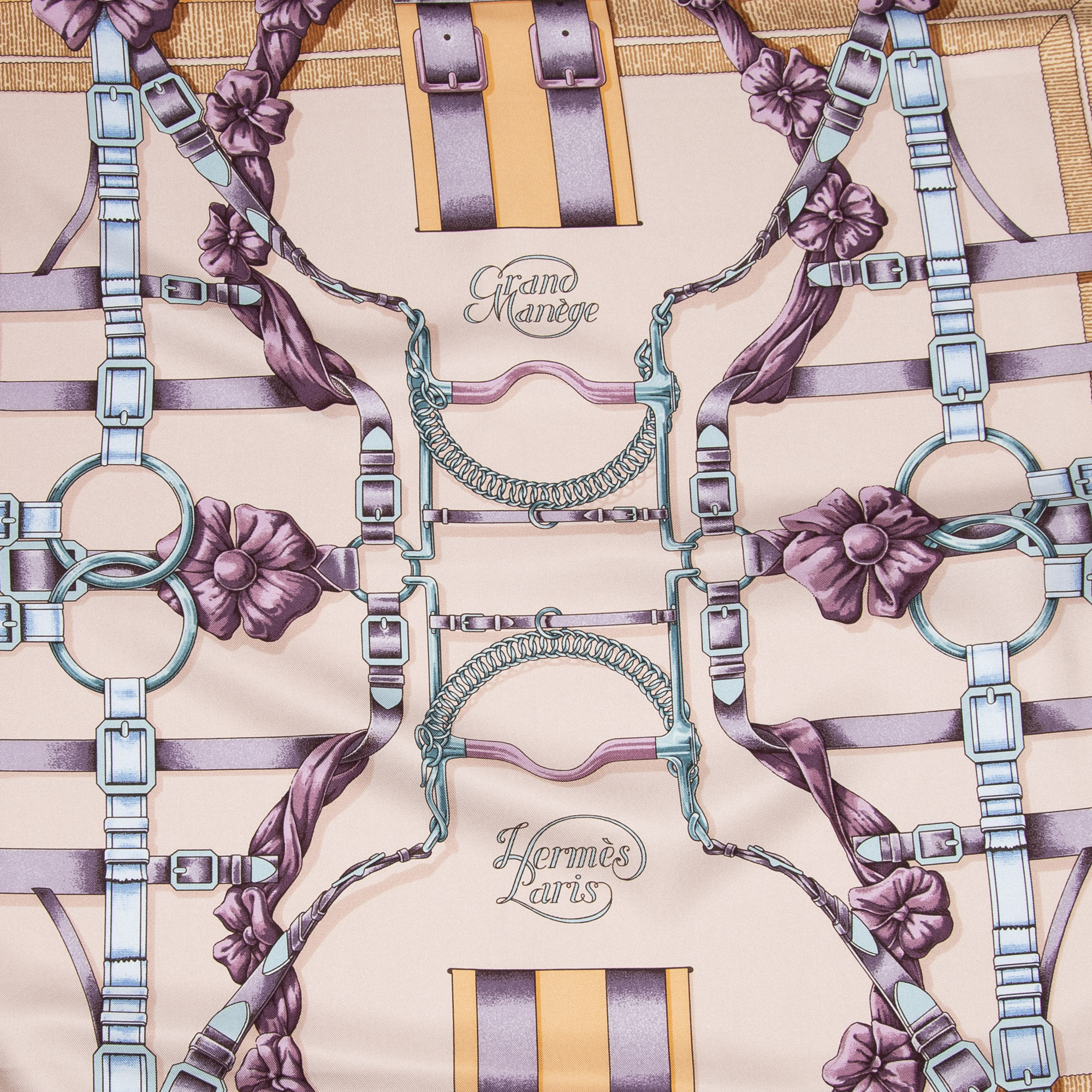 Hermès Scarf Scarf in Lilac/Orange/Light Blue 100% Twill Silk and hardware. The product is in Perfect Condition (AA).