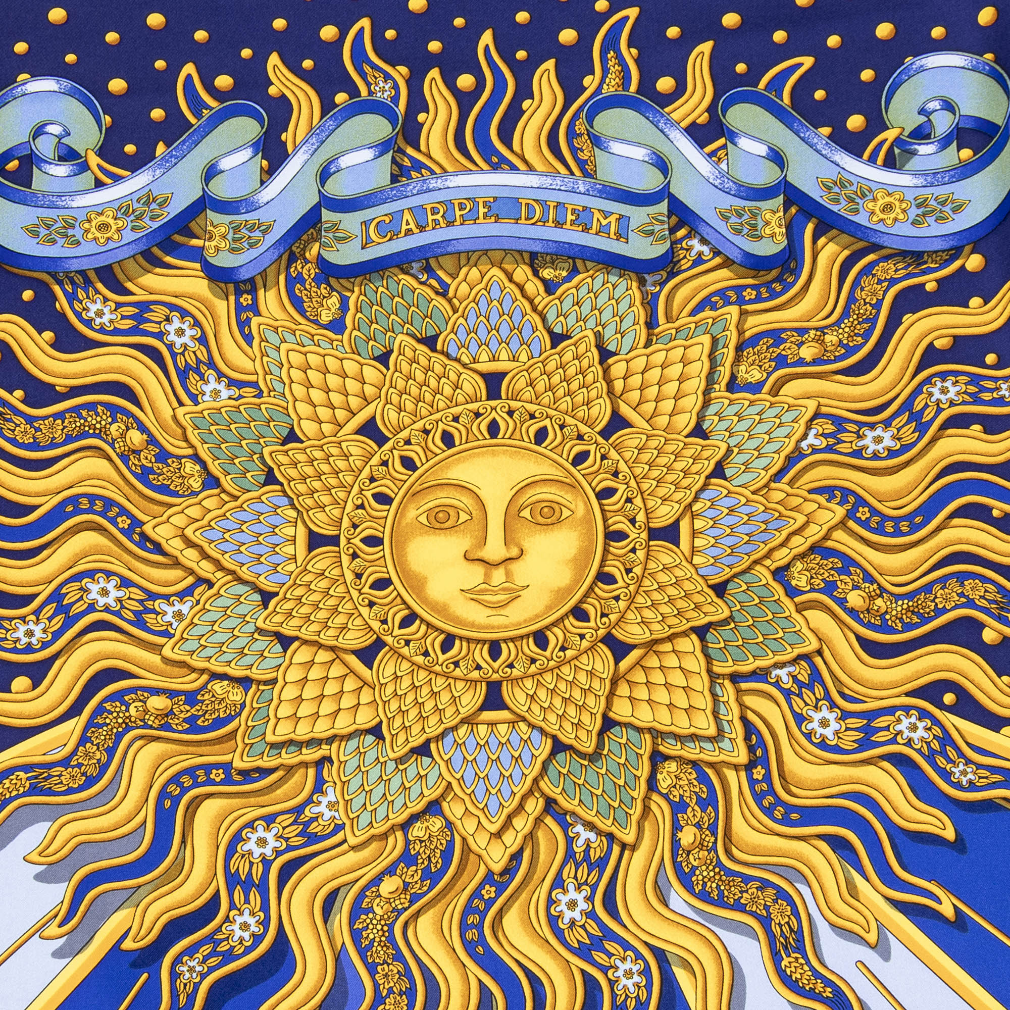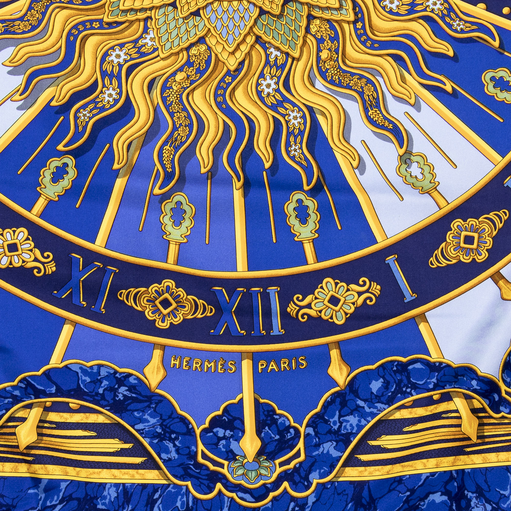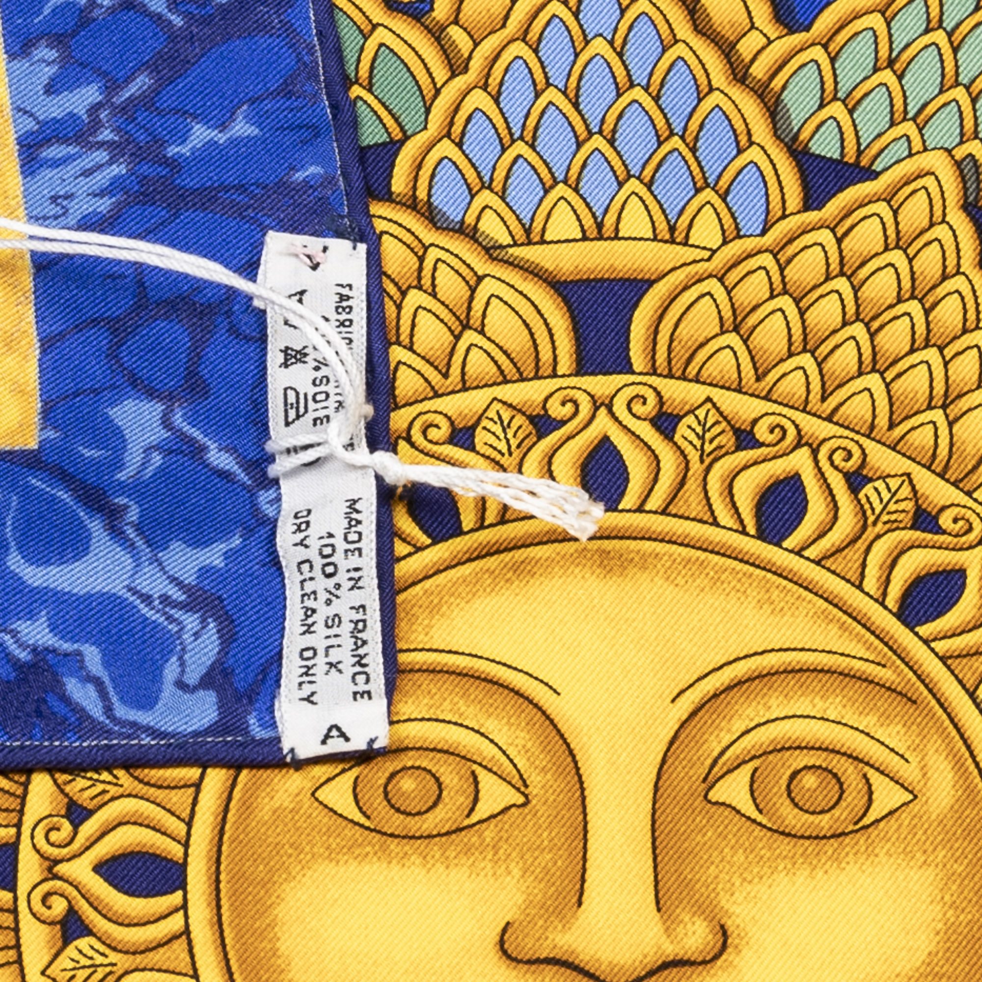 Hermès Scarf Scarf in Blue/Gold/Green 100% Twill Silk and None hardware. The product is in Excellent Condition (A).