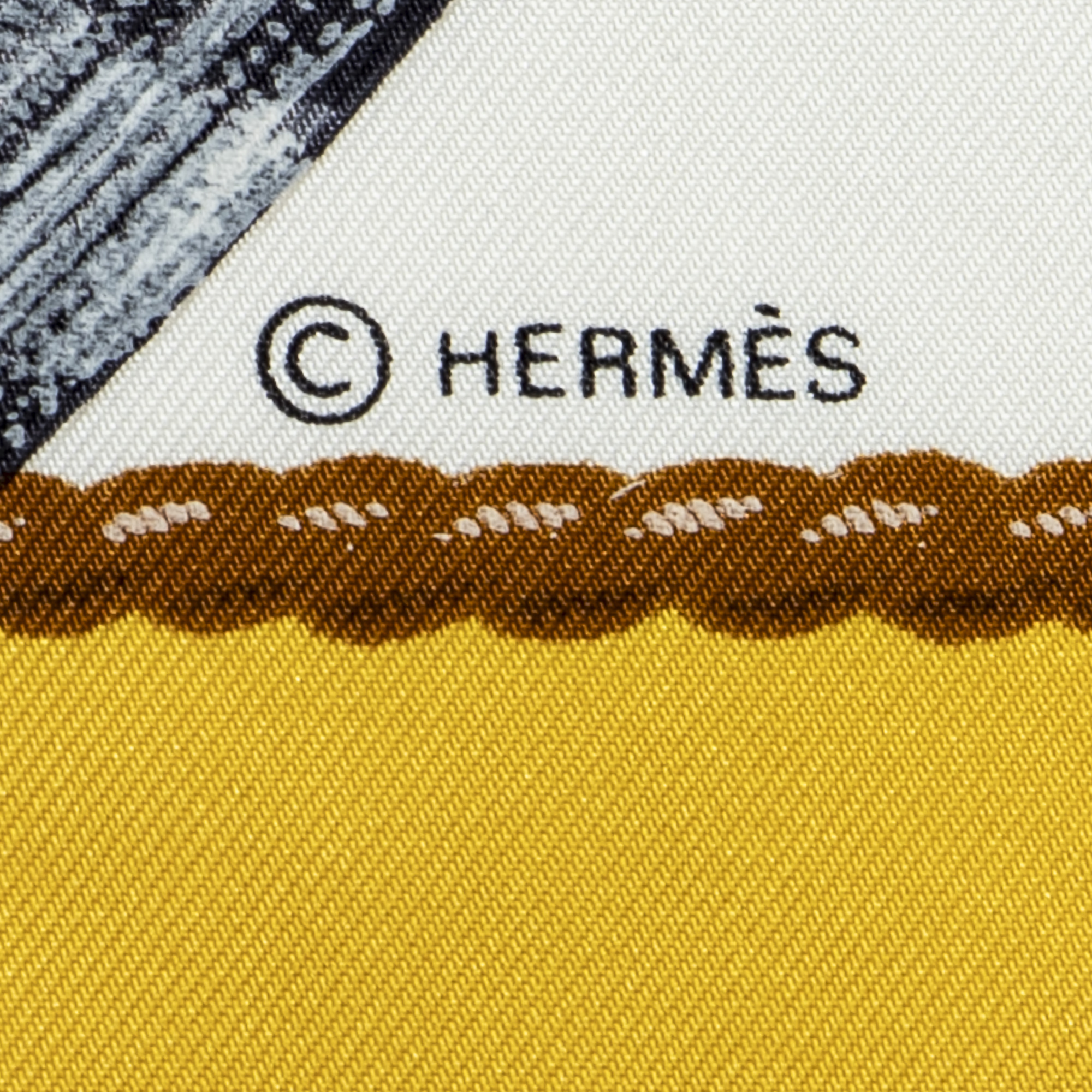 Hermès Scarf Scarf in Yellow/White/Navy 100% Twill Silk and None hardware. The product is in Perfect Condition (AA).