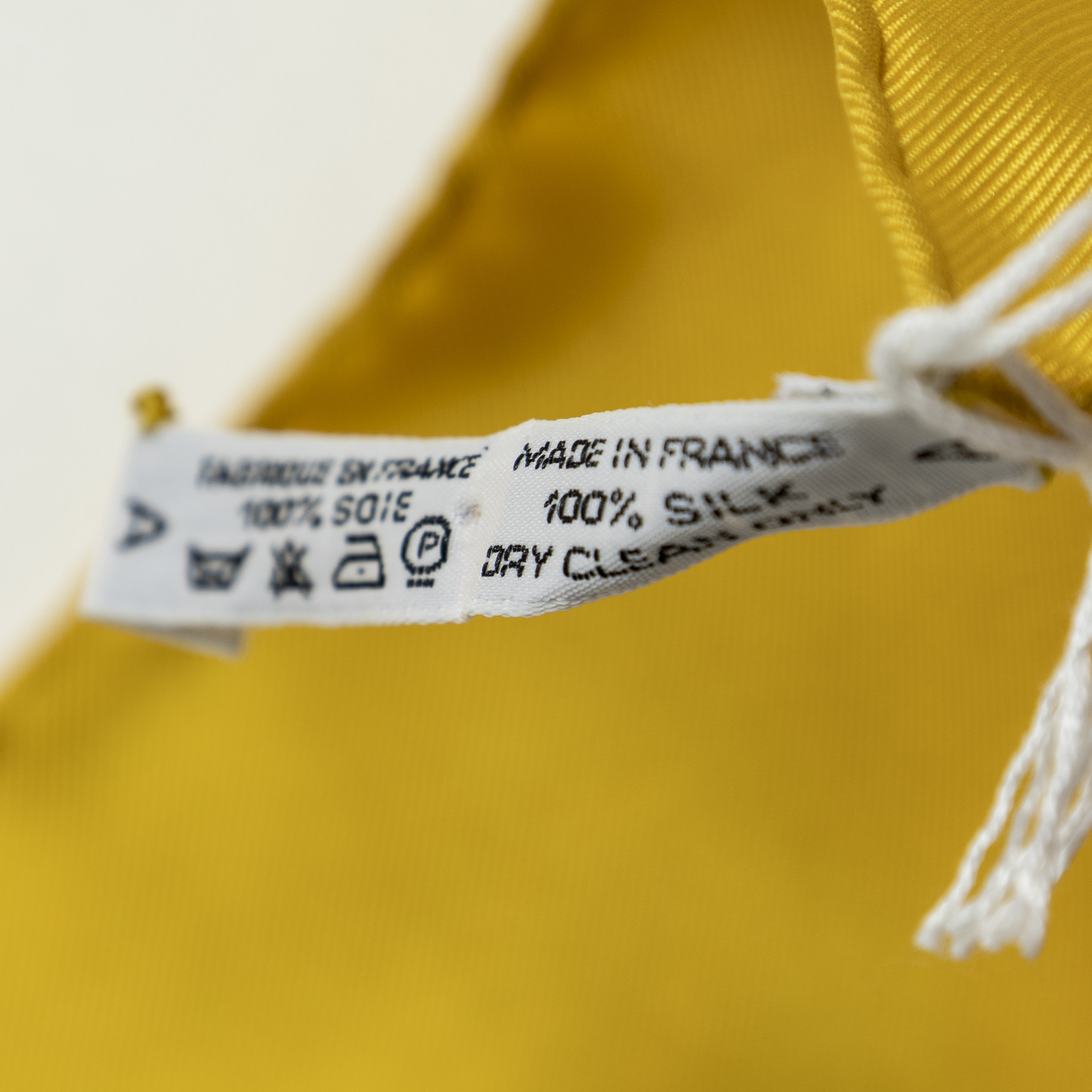 Description : Hermès Scarf Scarf in Yellow/White/Navy 100% Twill Silk and None hardware. The product is in Perfect Condition (AA). Dimensions: 90 cm Size: None SKU: ABC6969 Serial number: Samourai by Zoé Pauwels Accessories Included: None Delivery: We have a 5 to 7 business days delivery policy, hassle-free and duties/tariffs included! BrandCo Paris finds rare and top condition items at great deals, they are worth your patience! Shop with confidence - All BrandCo Paris items are carefully selected and authenticated by our team of experts. All the items come with an authenticity certificate and packaging delivered by BrandCo Paris. Item Condition Grading Table N (Like New) AA (Perfect Condition) A (Excellent Condition) AB (Very Good Condition) B (Good/Fair)