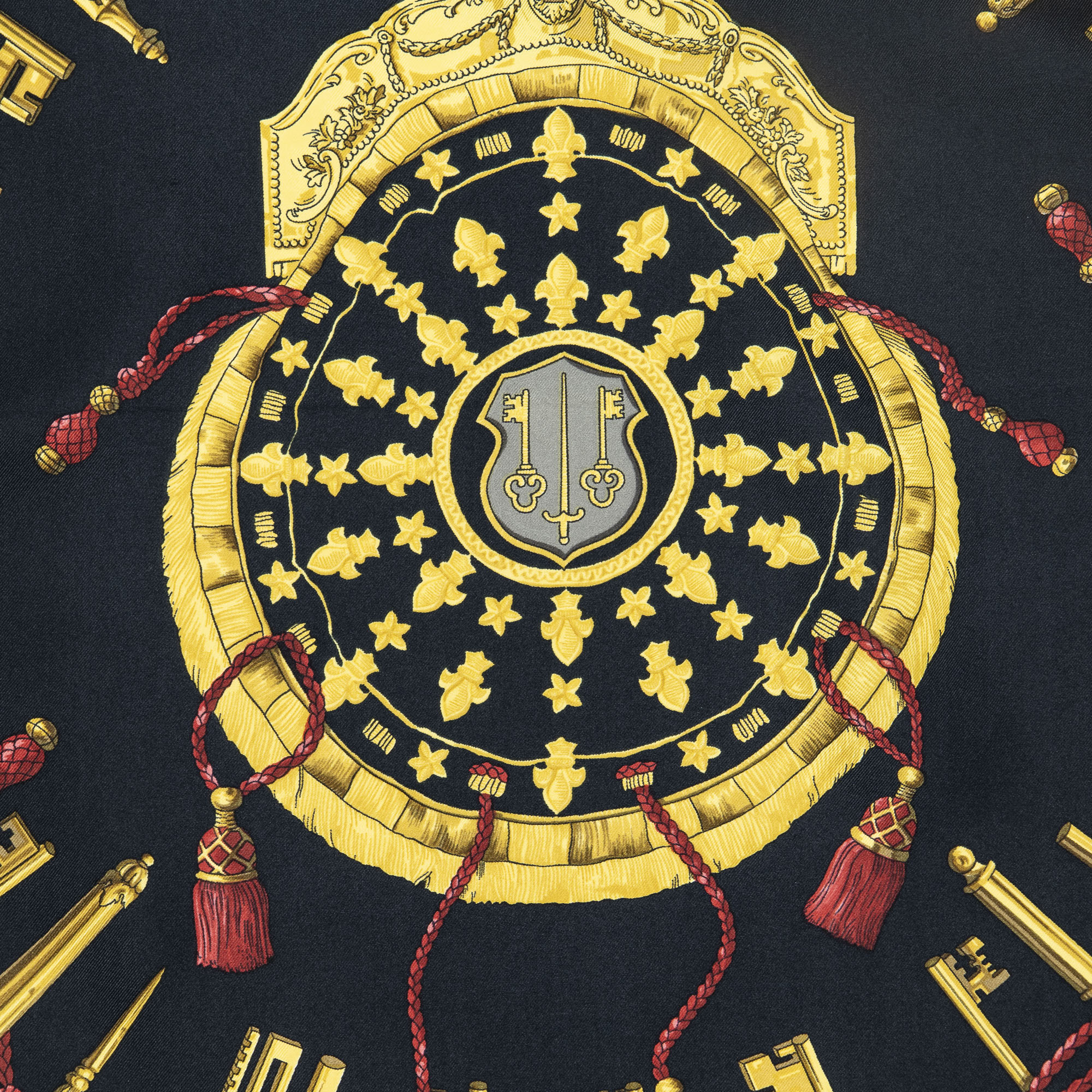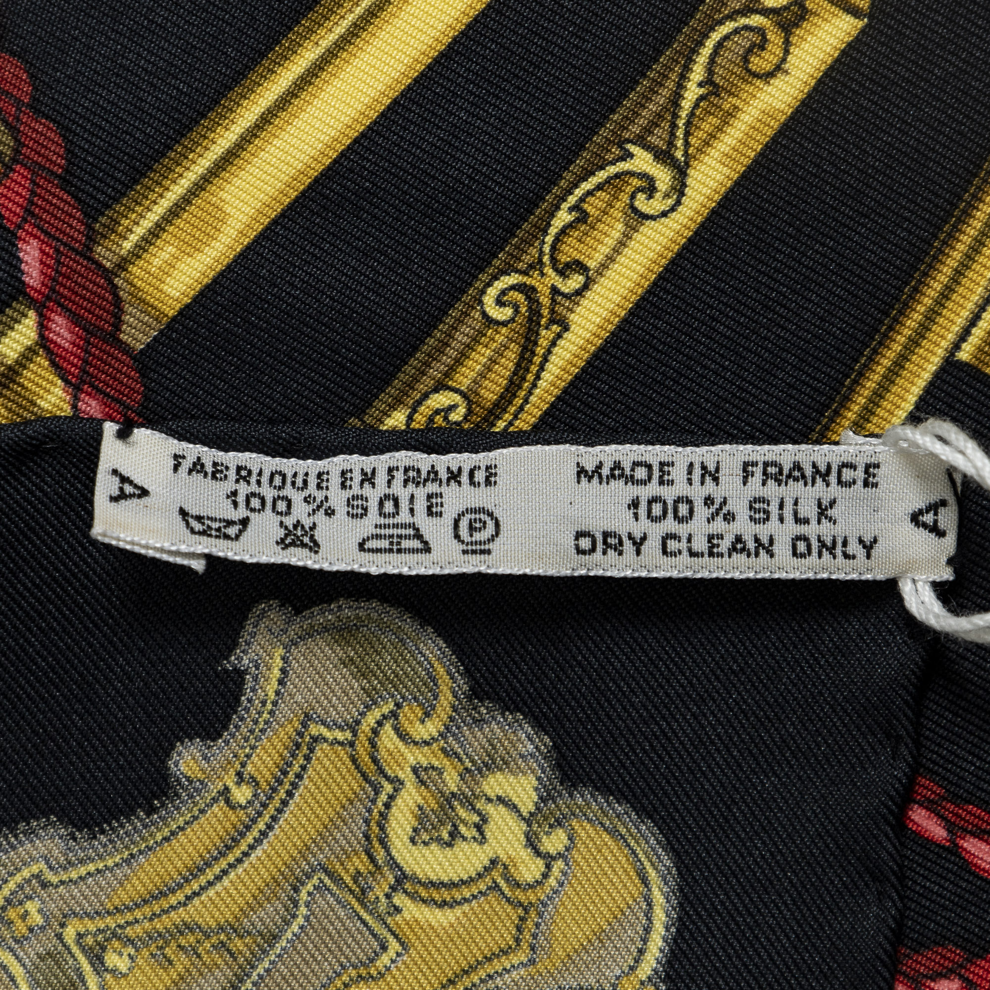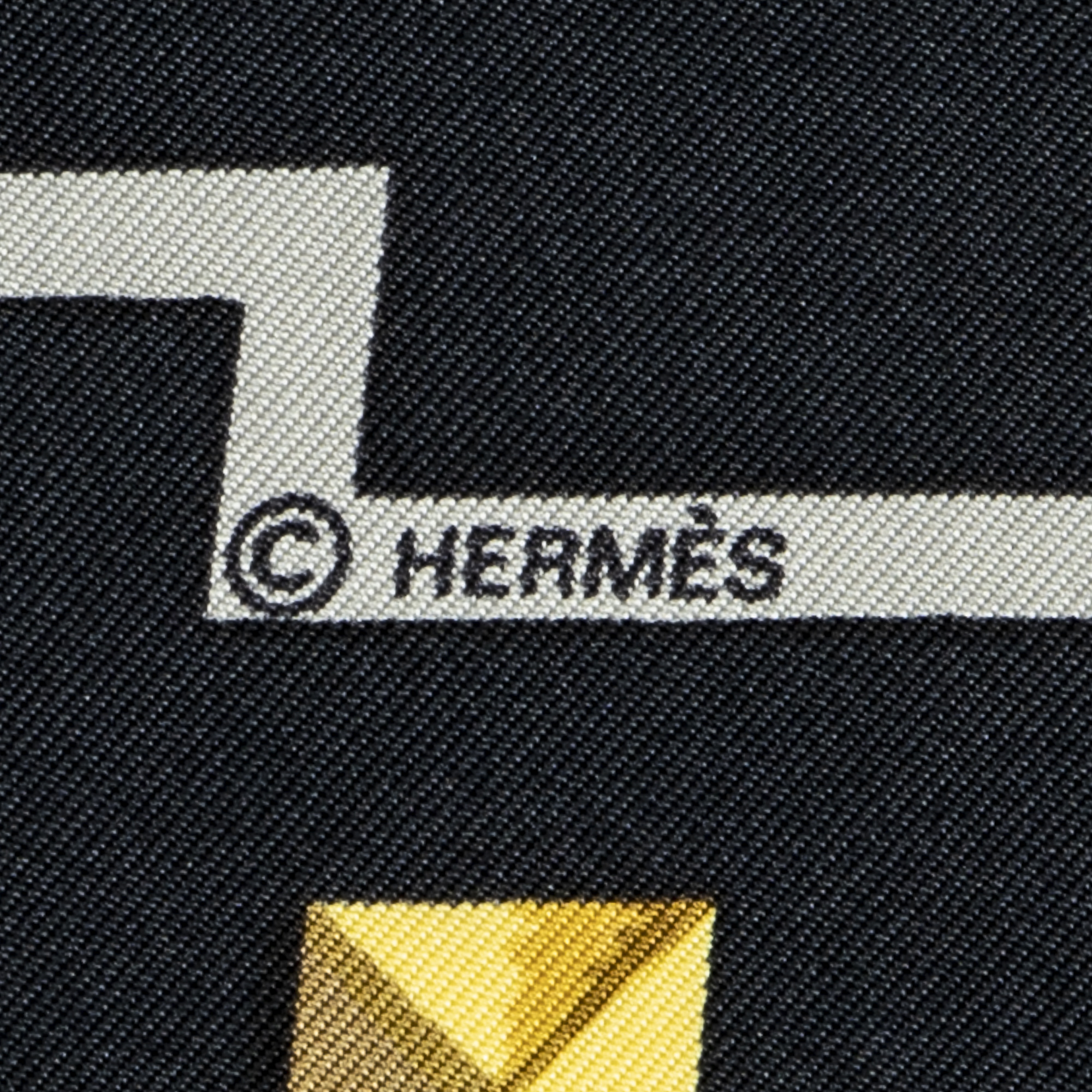 Hermès Scarf Scarf in Black/Gold/Red 100% Twill Silk and None hardware. The product is in Excellent Condition (A).
