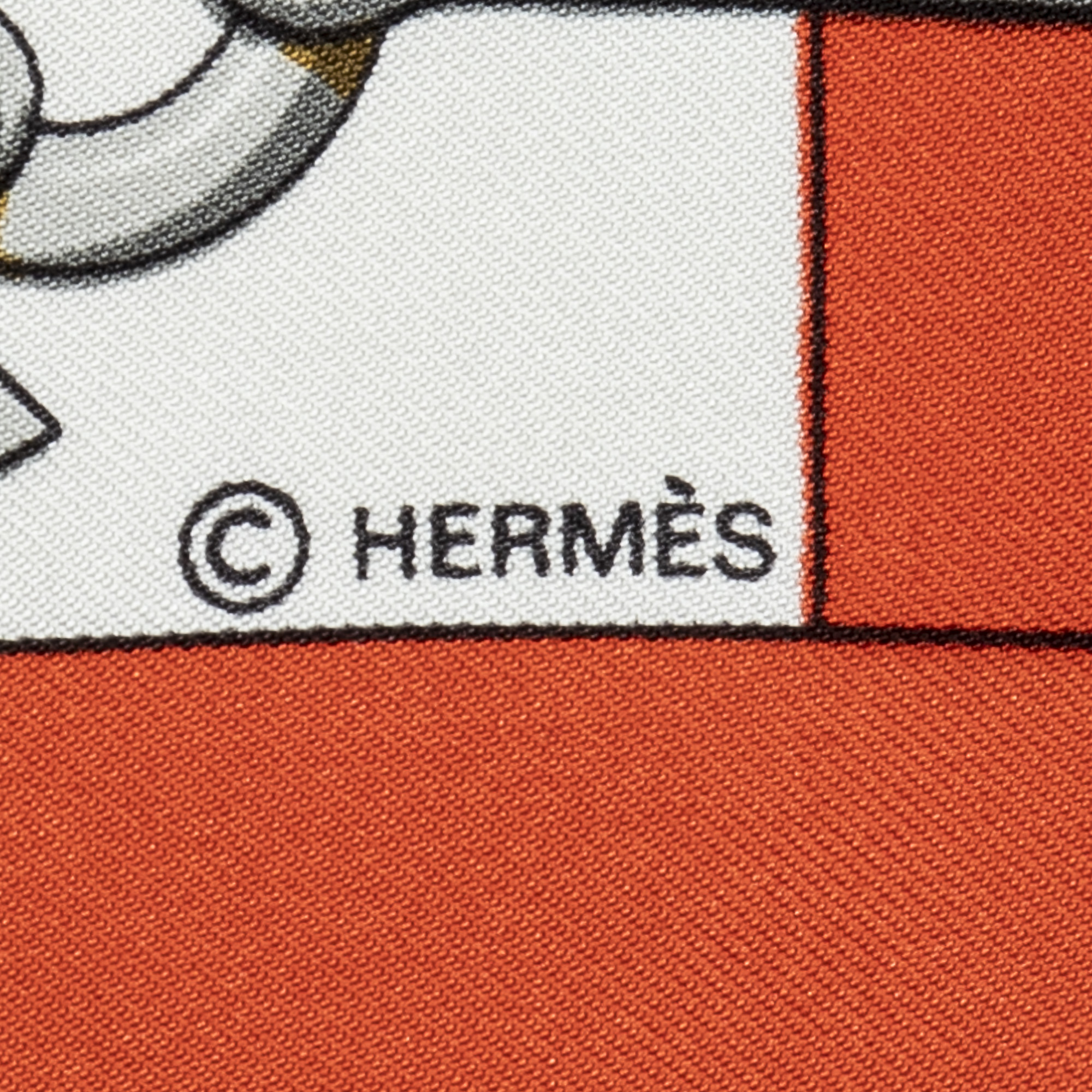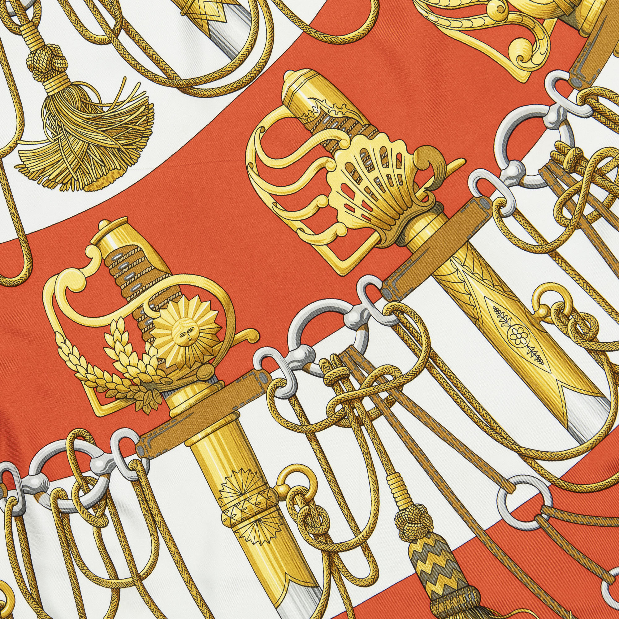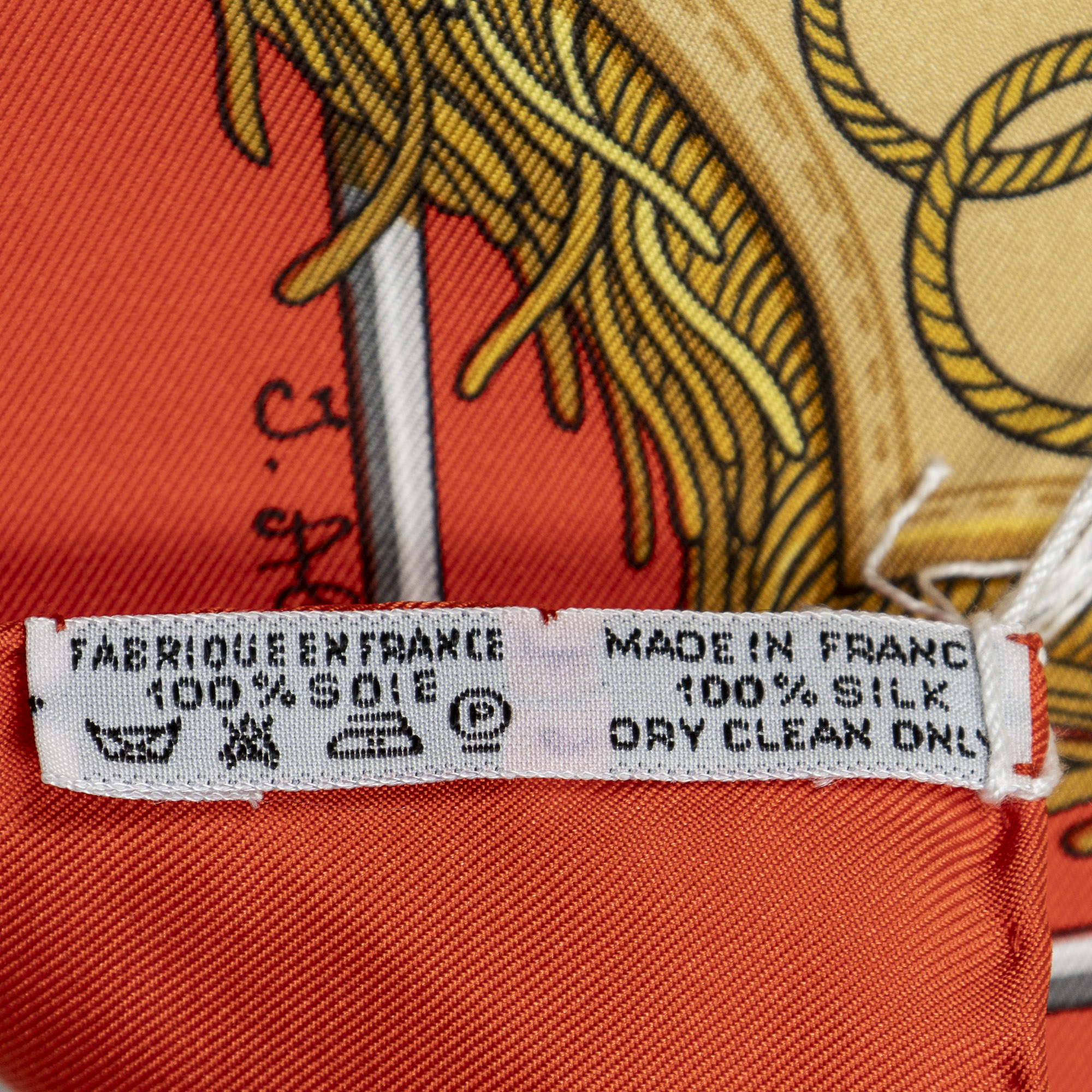 Hermès Scarf Scarf in Red/White/Gold 100% Twill Silk and None hardware. The product is in Excellent Condition (A).
