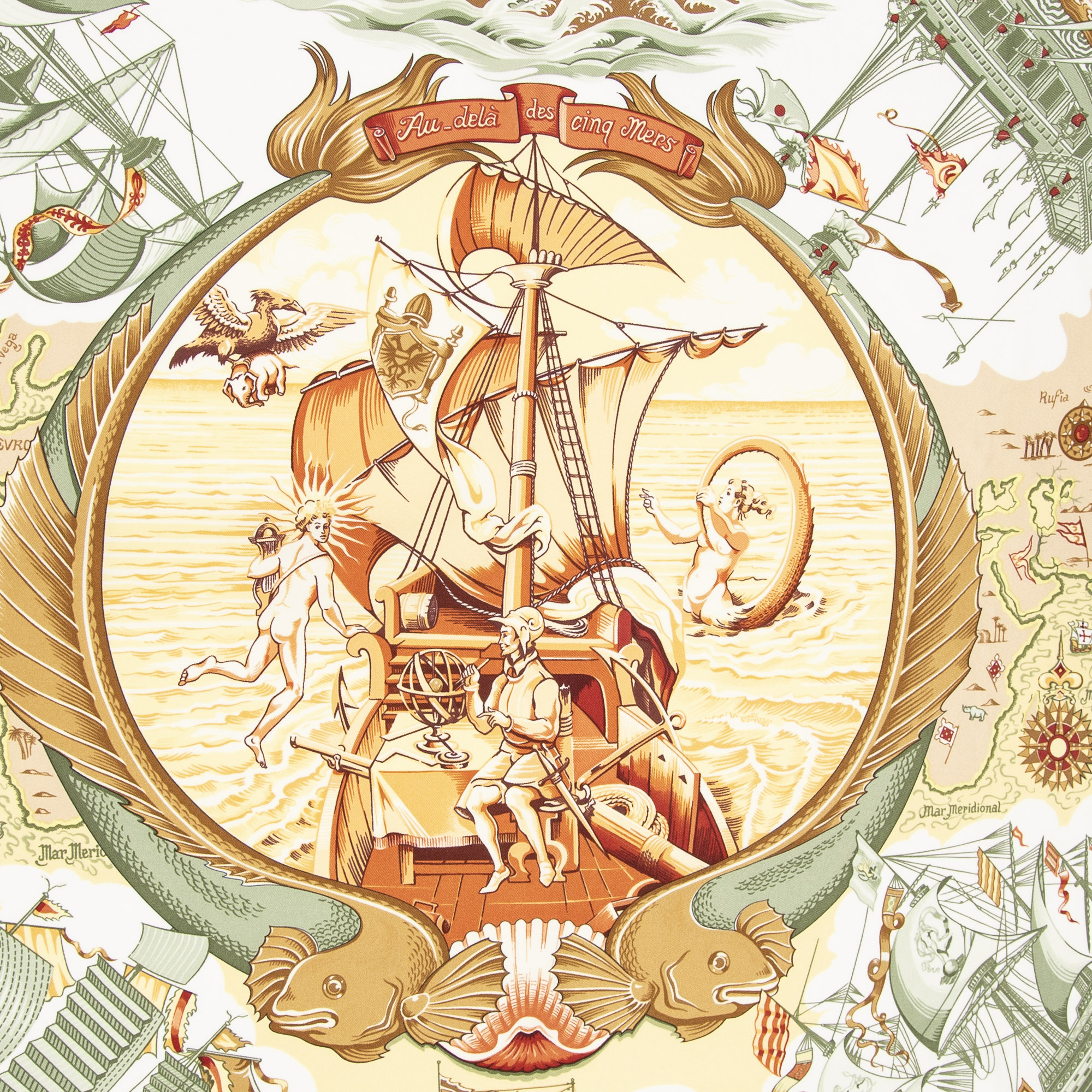 Hermès Scarf Scarf in Orange/Green/White 100% Twill Silk and None hardware. The product is in Perfect Condition (AA).
