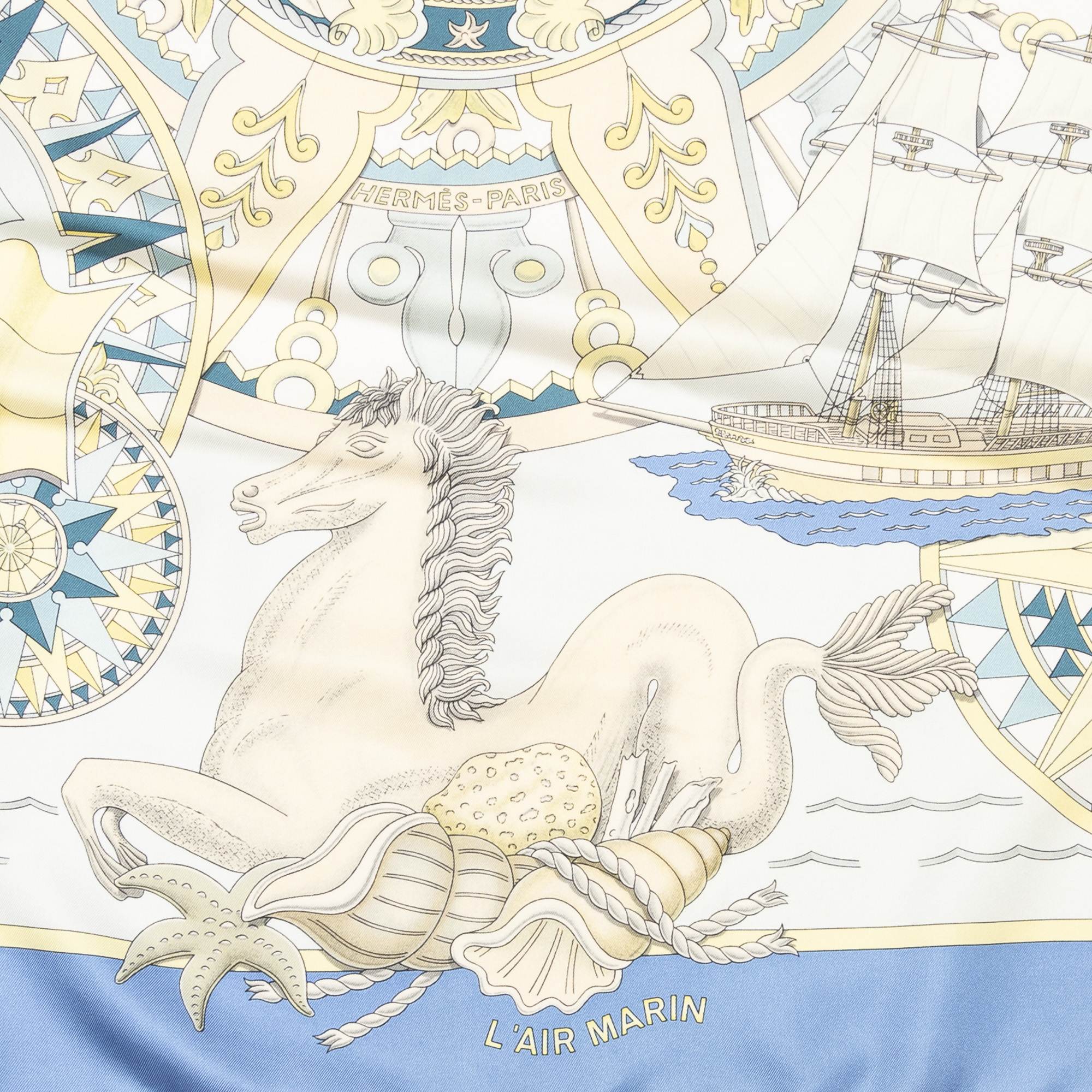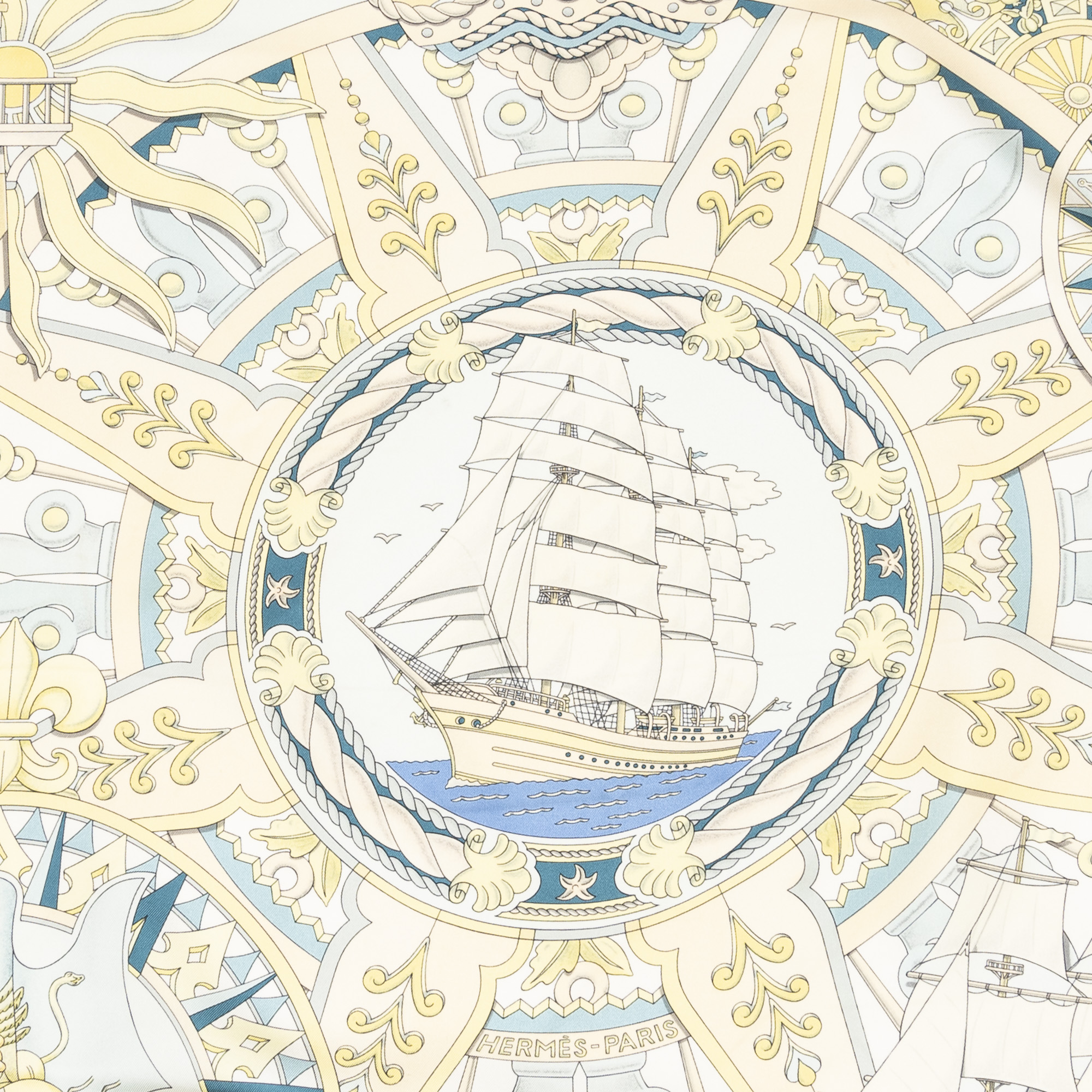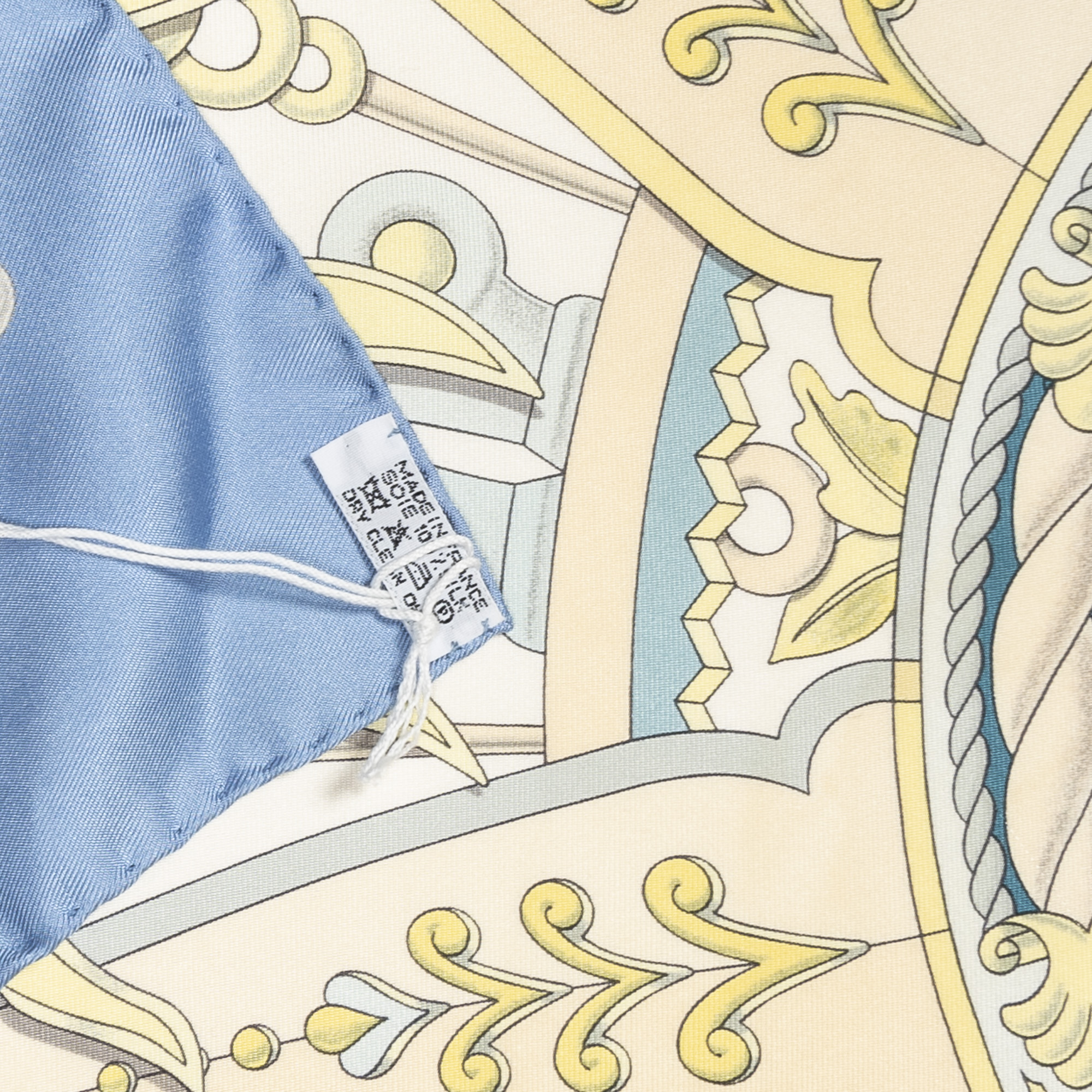 Hermès Scarf Scarf in Blue/Beige/Yellow 100% Twill Silk and None hardware. The product is in Excellent Condition (A).