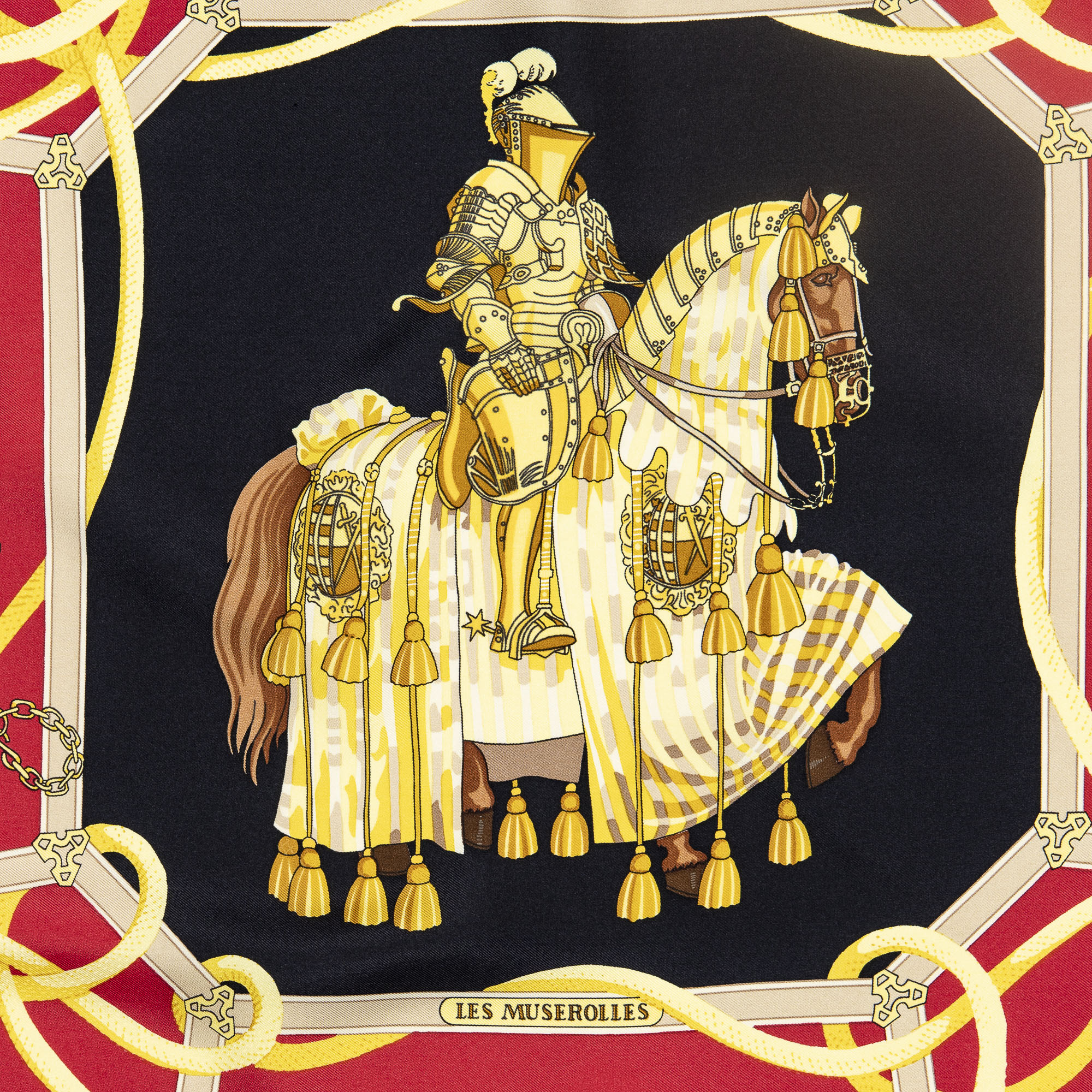 Hermès Scarf Scarf in Red/Black/Gold 100% Twill Silk and None hardware. The product is in Perfect Condition (AA).