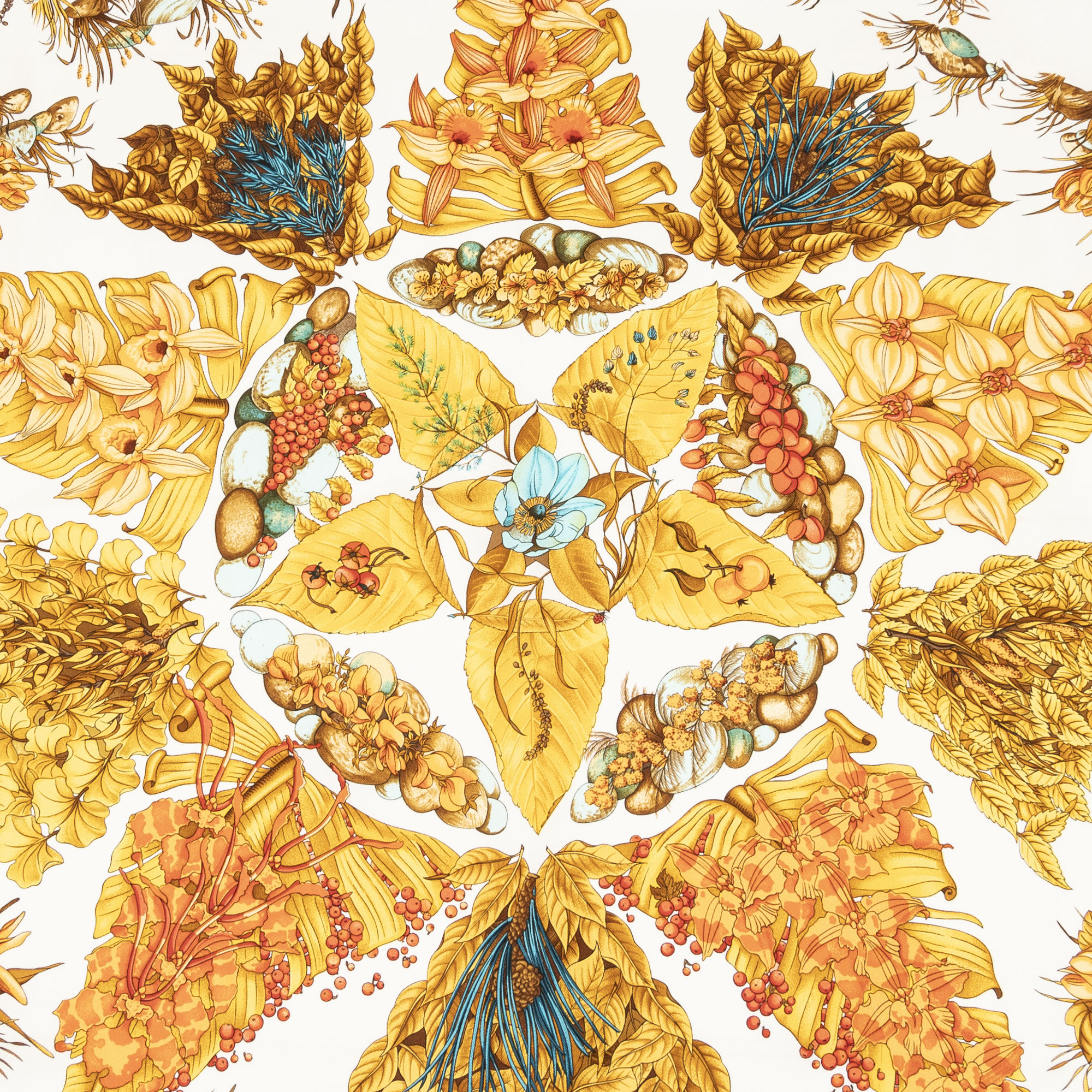 Hermès Scarf Scarf in Yellow/White/Light Blue 100% Twill Silk and None hardware. The product is in Perfect Condition (AA).