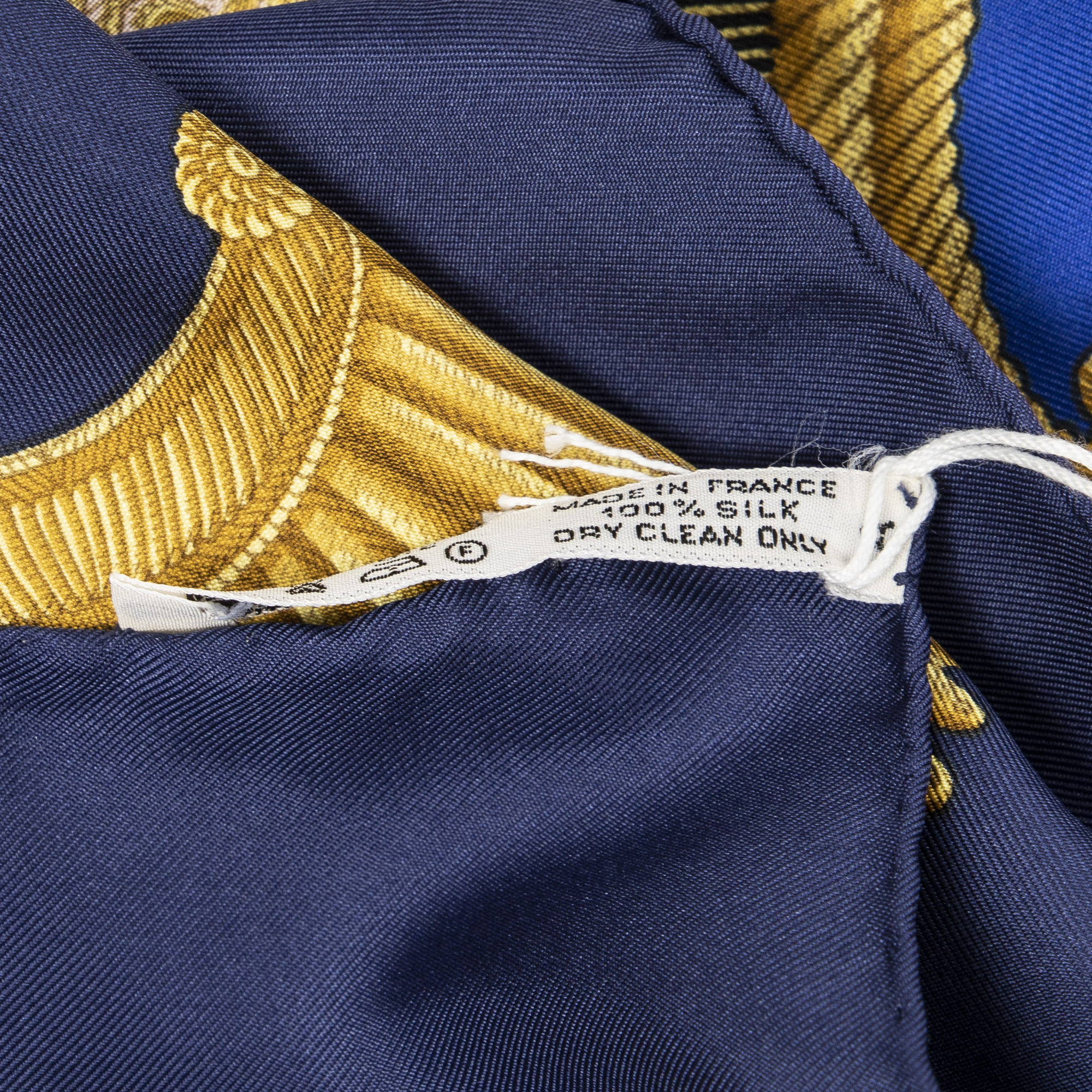 Hermès Scarf Scarf in Navy/Blue/Gold 100% Twill Silk and None hardware. The product is in Excellent Condition (A).
