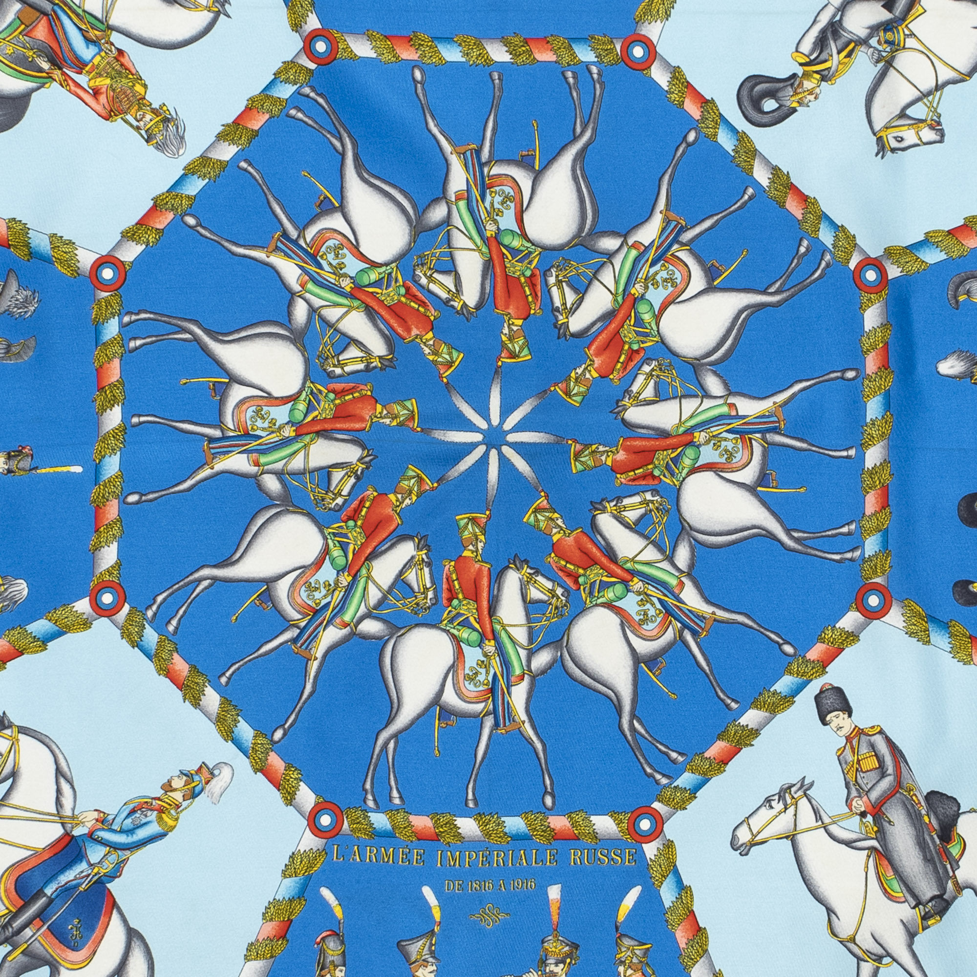 Description : Hermès Scarf Scarf in Blue/Red/Gold 100% Twill Silk and None hardware. The product is in Perfect Condition (AA). Dimensions: 90 cm Size: None SKU: ABC8477 Serial number: L'Armee Imperiale Russe de 1816 a 1916 by Michele Duchene Accessories Included: None Delivery: We have a 5 to 7 business days delivery policy, hassle-free and duties/tariffs included! BrandCo Paris finds rare and top condition items at great deals, they are worth your patience! Shop with confidence - All BrandCo Paris items are carefully selected and authenticated by our team of experts. All the items come with an authenticity certificate and packaging delivered by BrandCo Paris. Item Condition Grading Table N (Like New) AA (Perfect Condition) A (Excellent Condition) AB (Very Good Condition) B (Good/Fair)