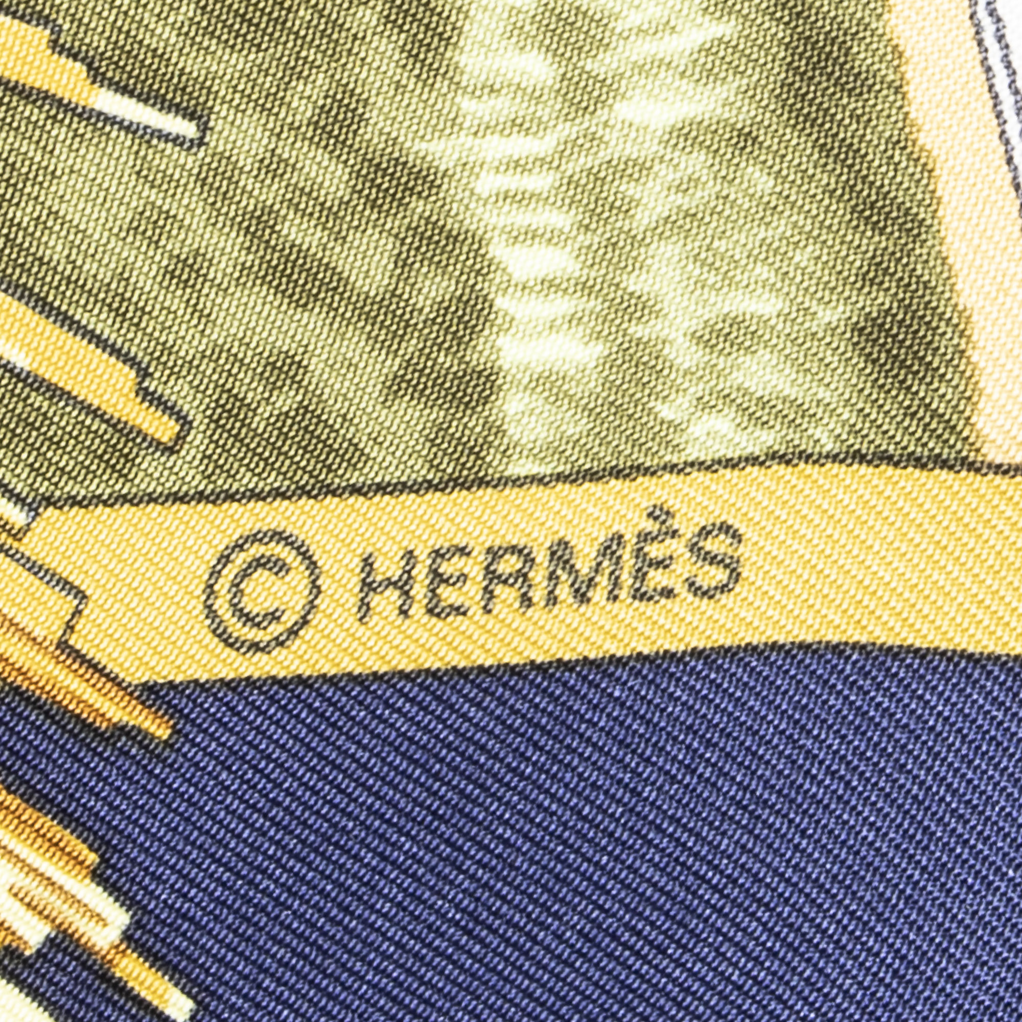 Hermès Scarf Scarf in Navy/Ivory/Gold 100% Twill Silk and None hardware. The product is in Perfect Condition (AA).